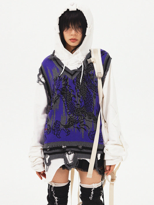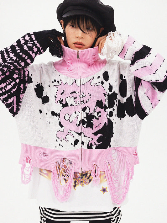 Dragon Deisgn Knit Zipper Cardigan NA6645
