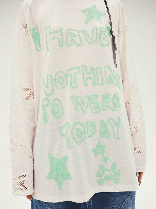 Letter Print Star Mesh Long Sleeve T-shirt NA6651