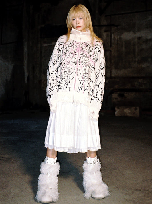 Graffiti Design High-Neck Zipper Cardigan NA6630