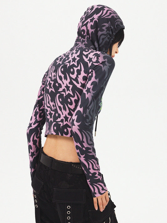 Graffiti Design Cropped Zipper Hoodie NA6640