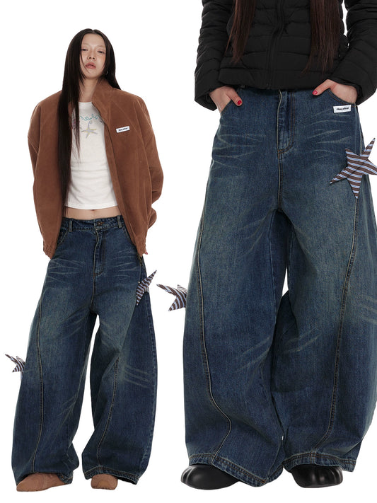 Star Patch Washed Wide-Leg Denim Jeans NA7103