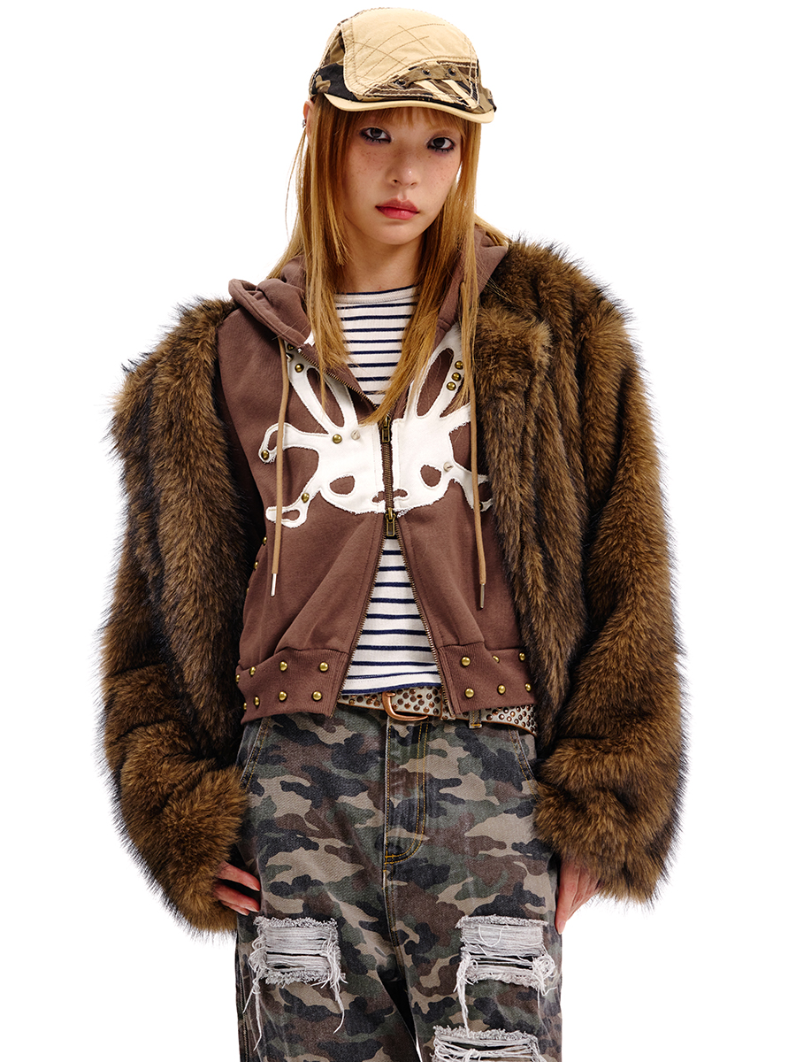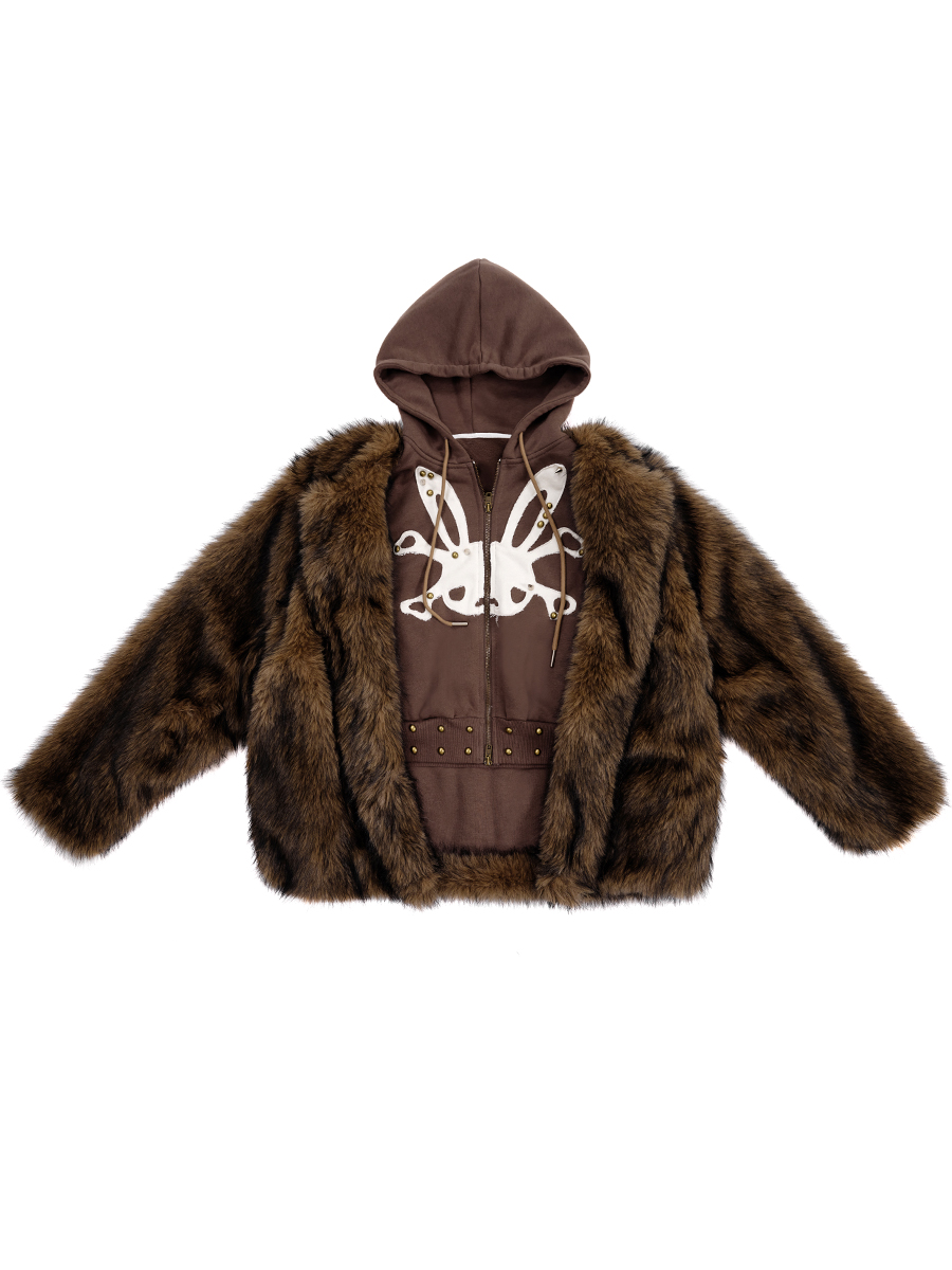 Rabbit Skull Fake Layered Fake Fur Jacket NA6699