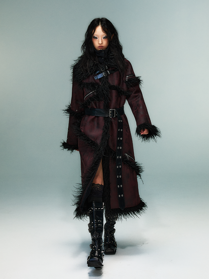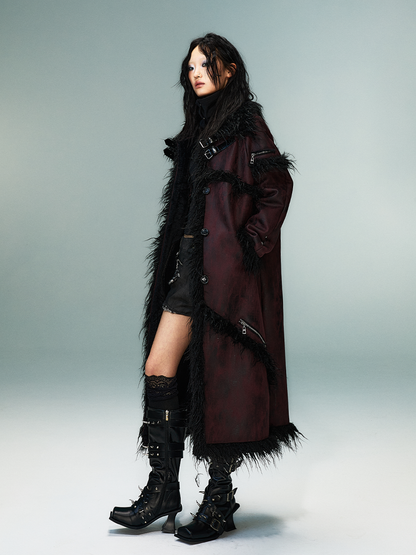 Punk Suede Fake Fur Long Shearling Coat NA8143