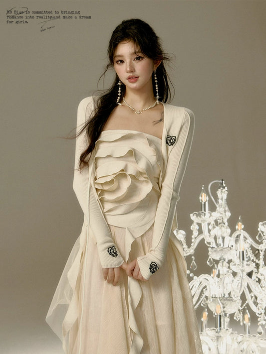 Irregular Hem Lace Camisole Dress & Shawl Setup NA7504