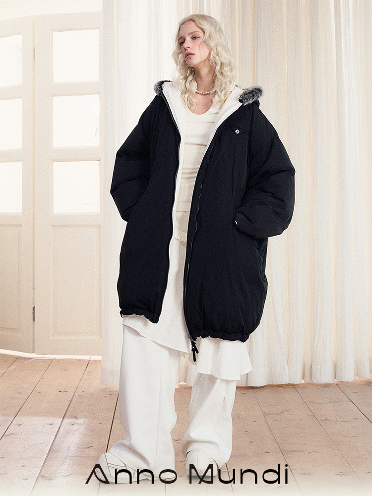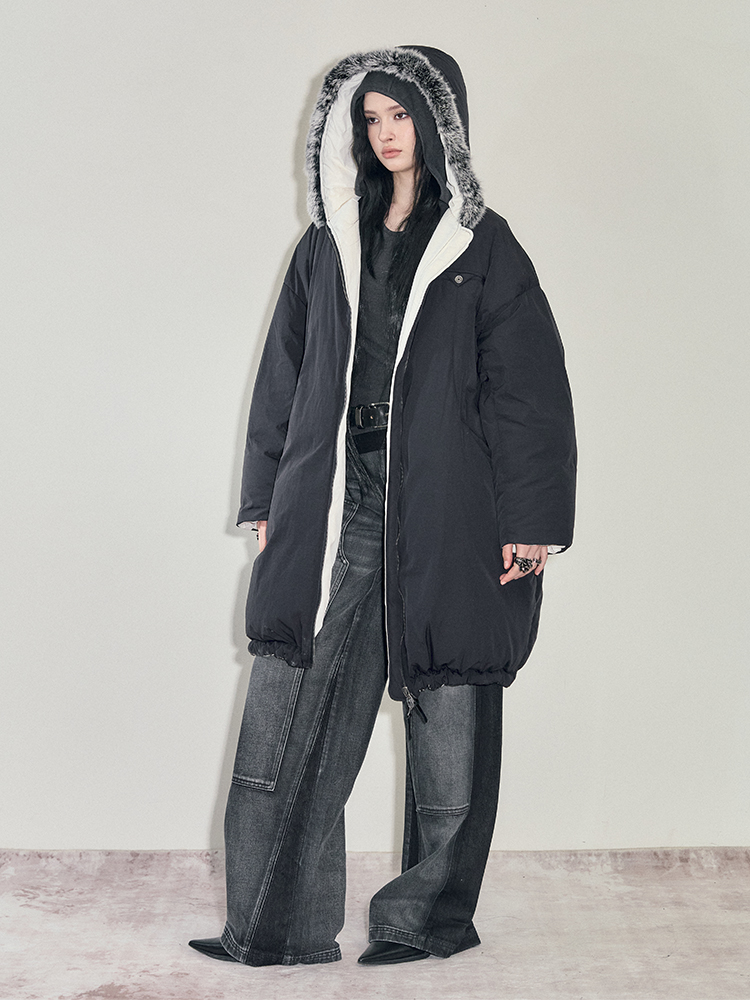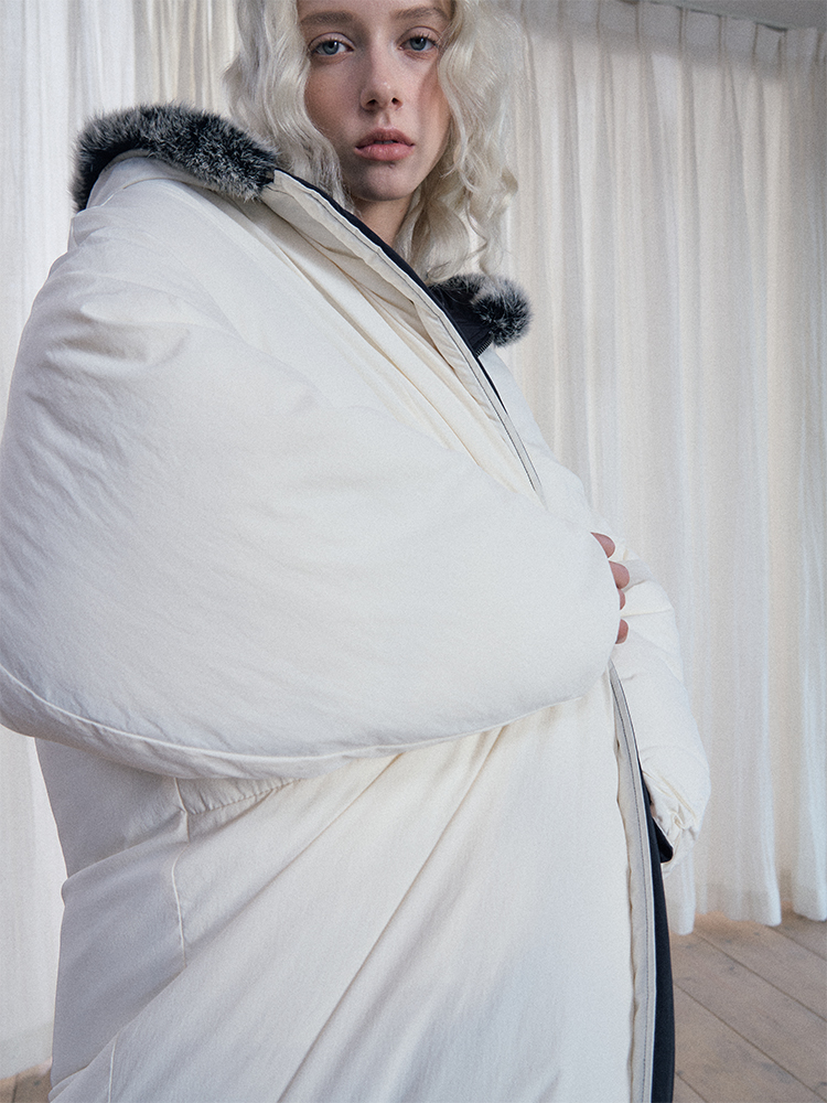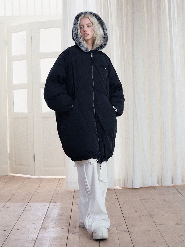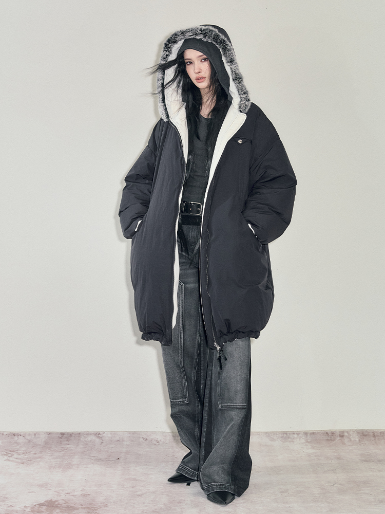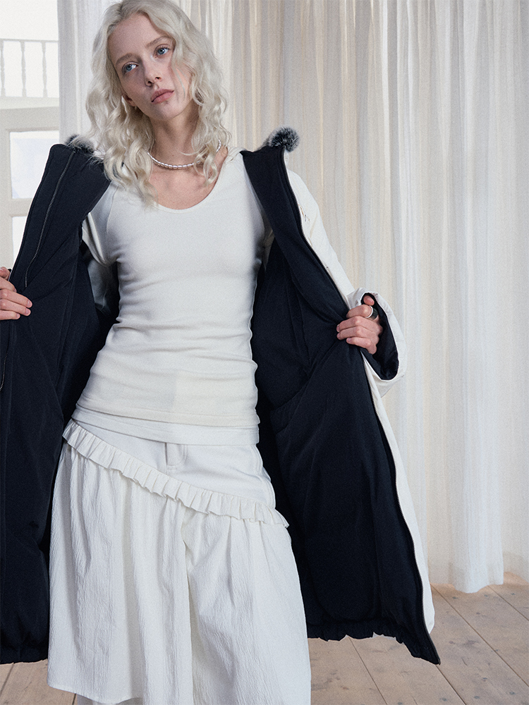 Reversible Fake Fur Hooded Puffer White Duck Down Jacket NA7869