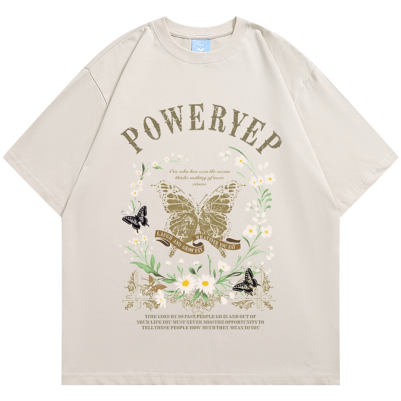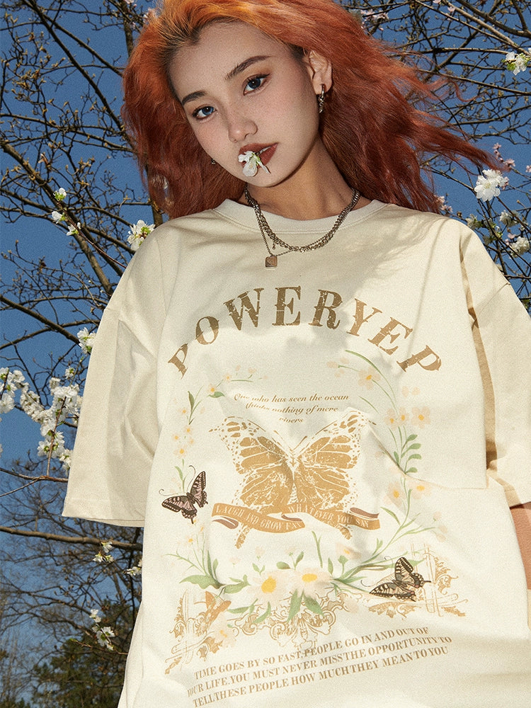 Butterfly Print Oversize Pure Cotton Short Sleeve T-Shirt NA2653