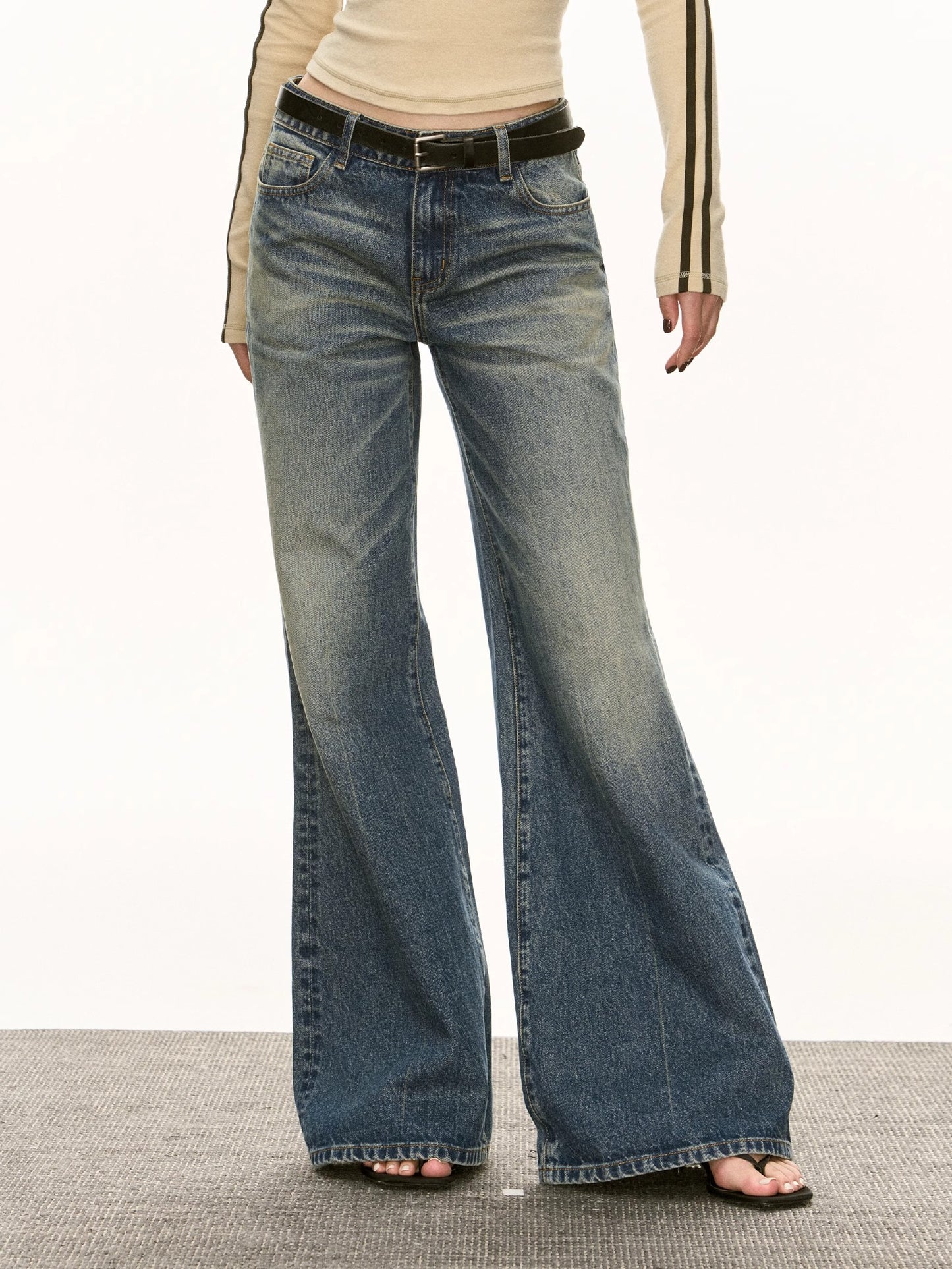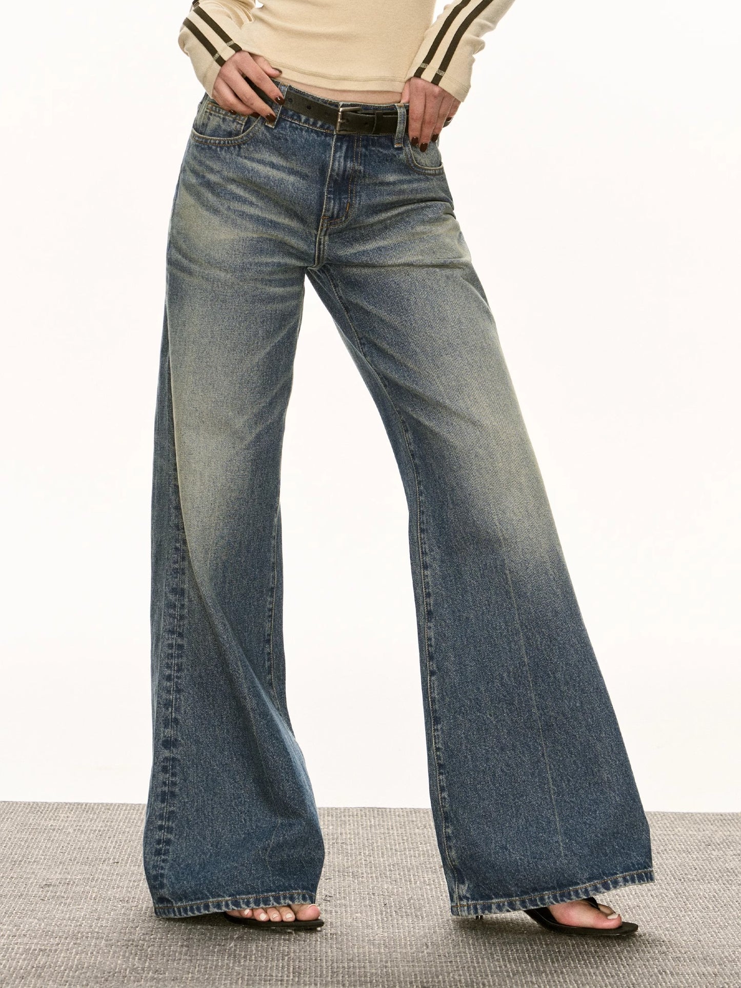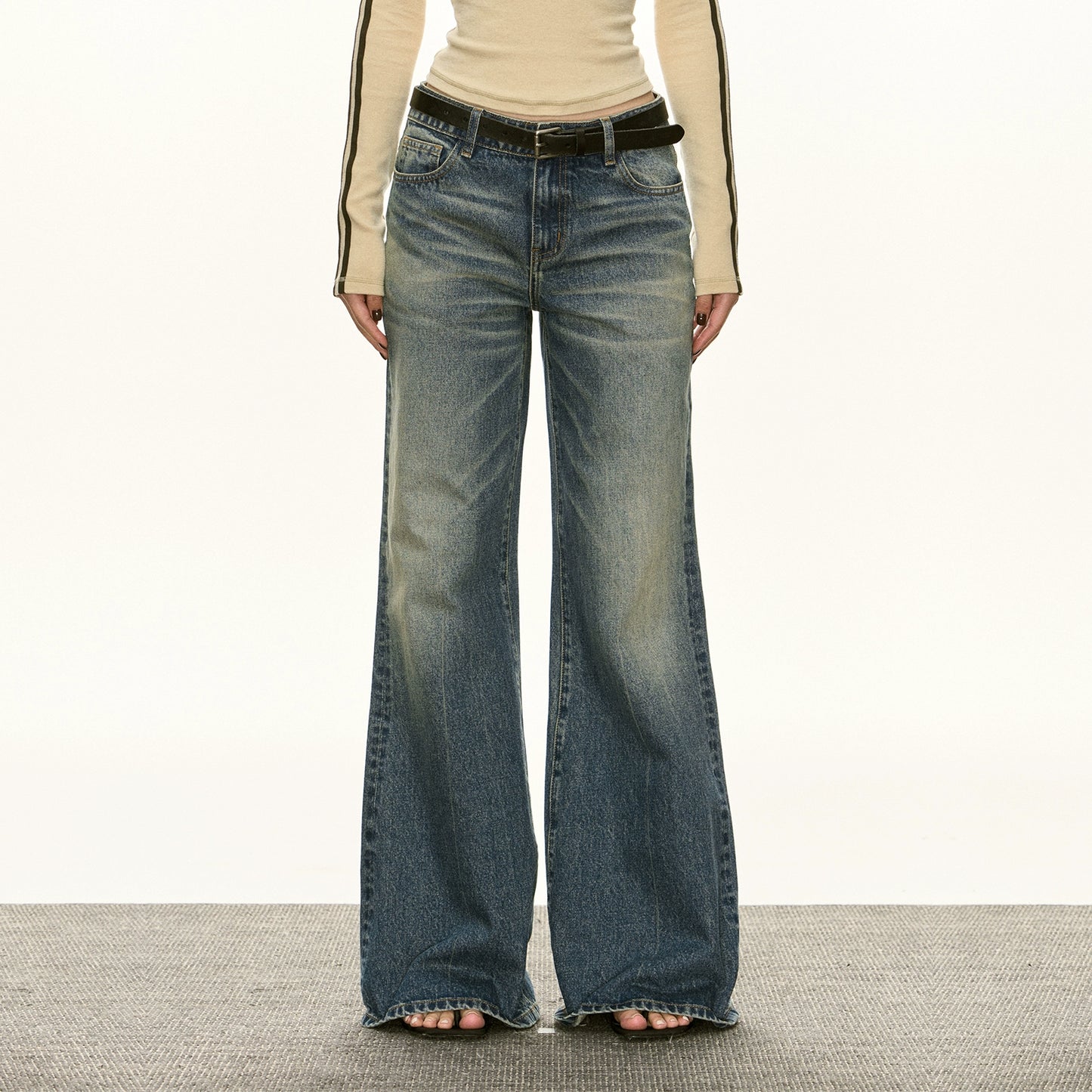 Washed Wide Leg Straight Long Denim Jeans NA5291