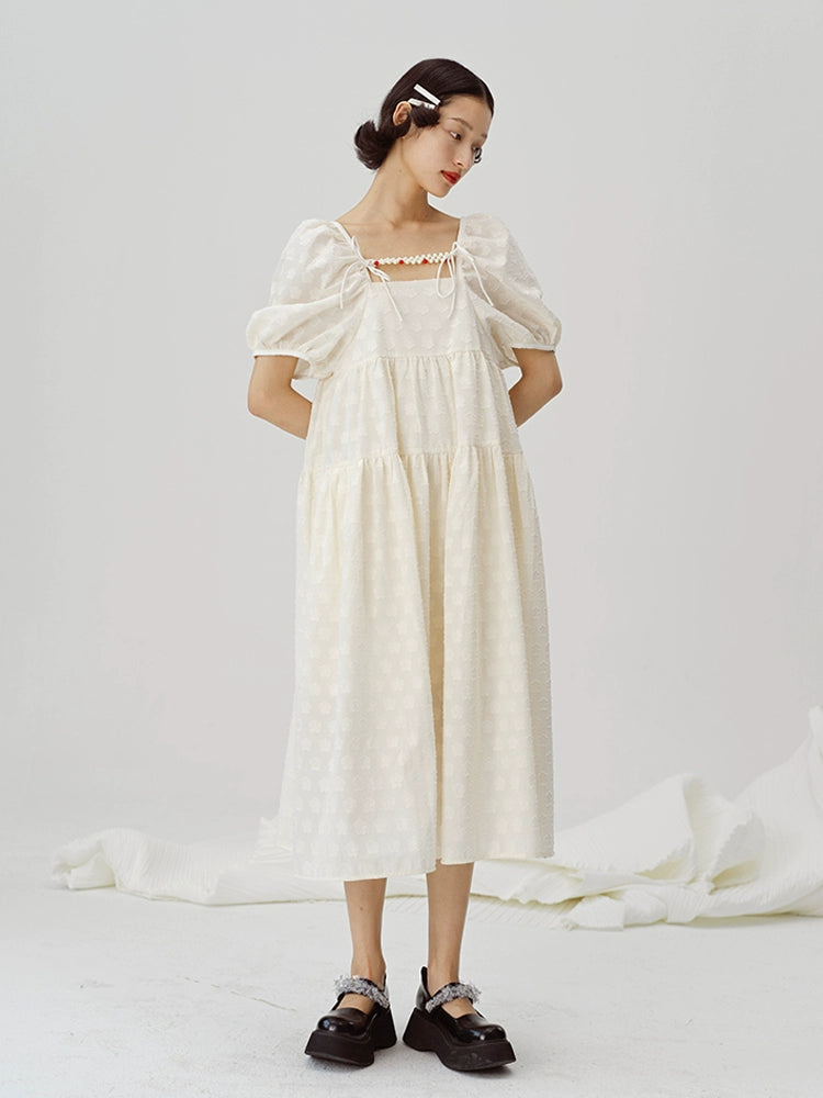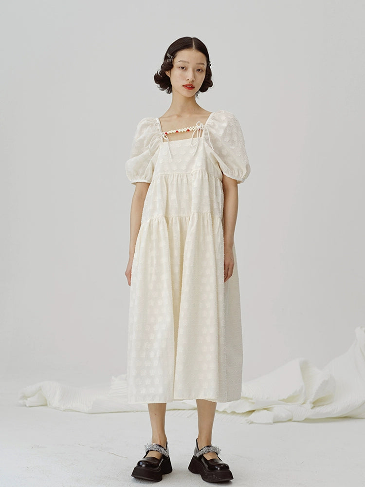 Bubble Sleeve Square Neck Long Dress NA5439