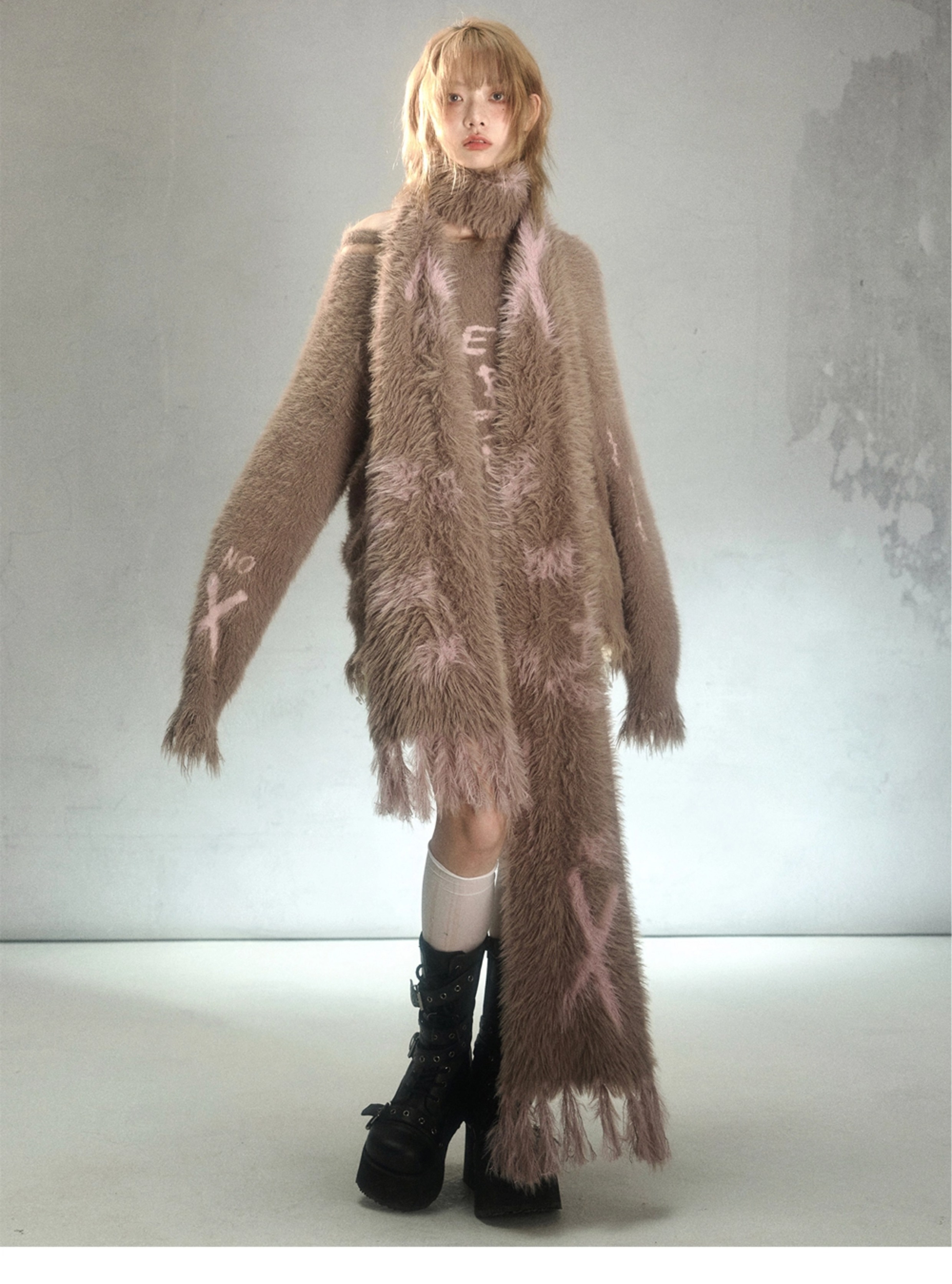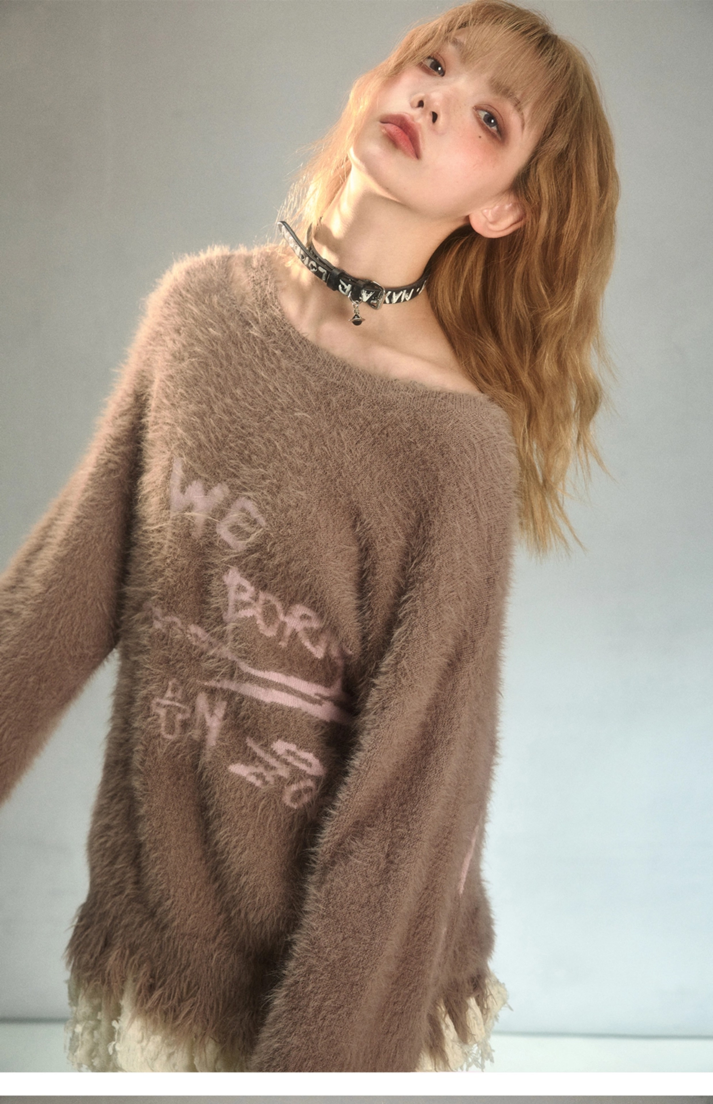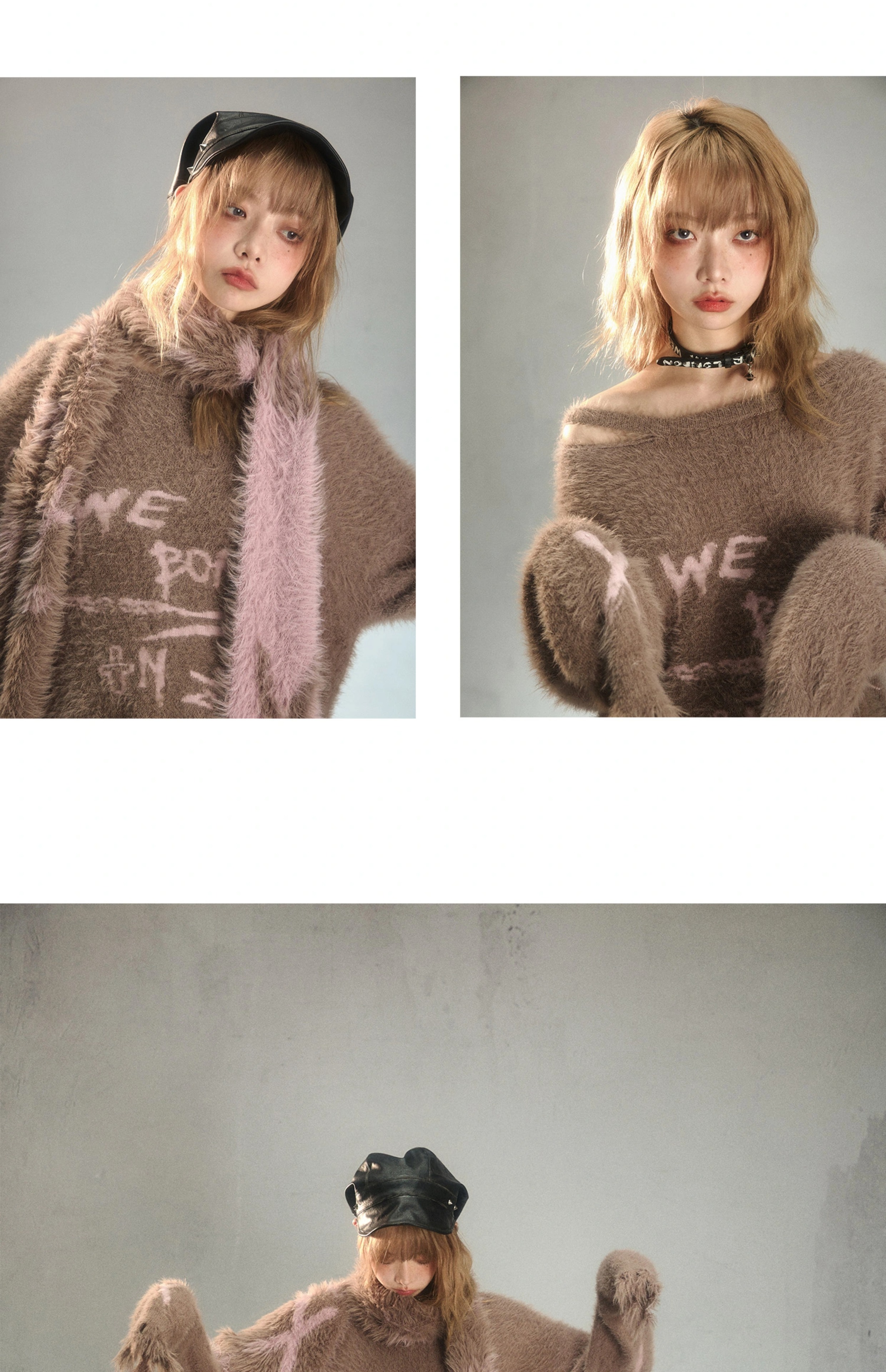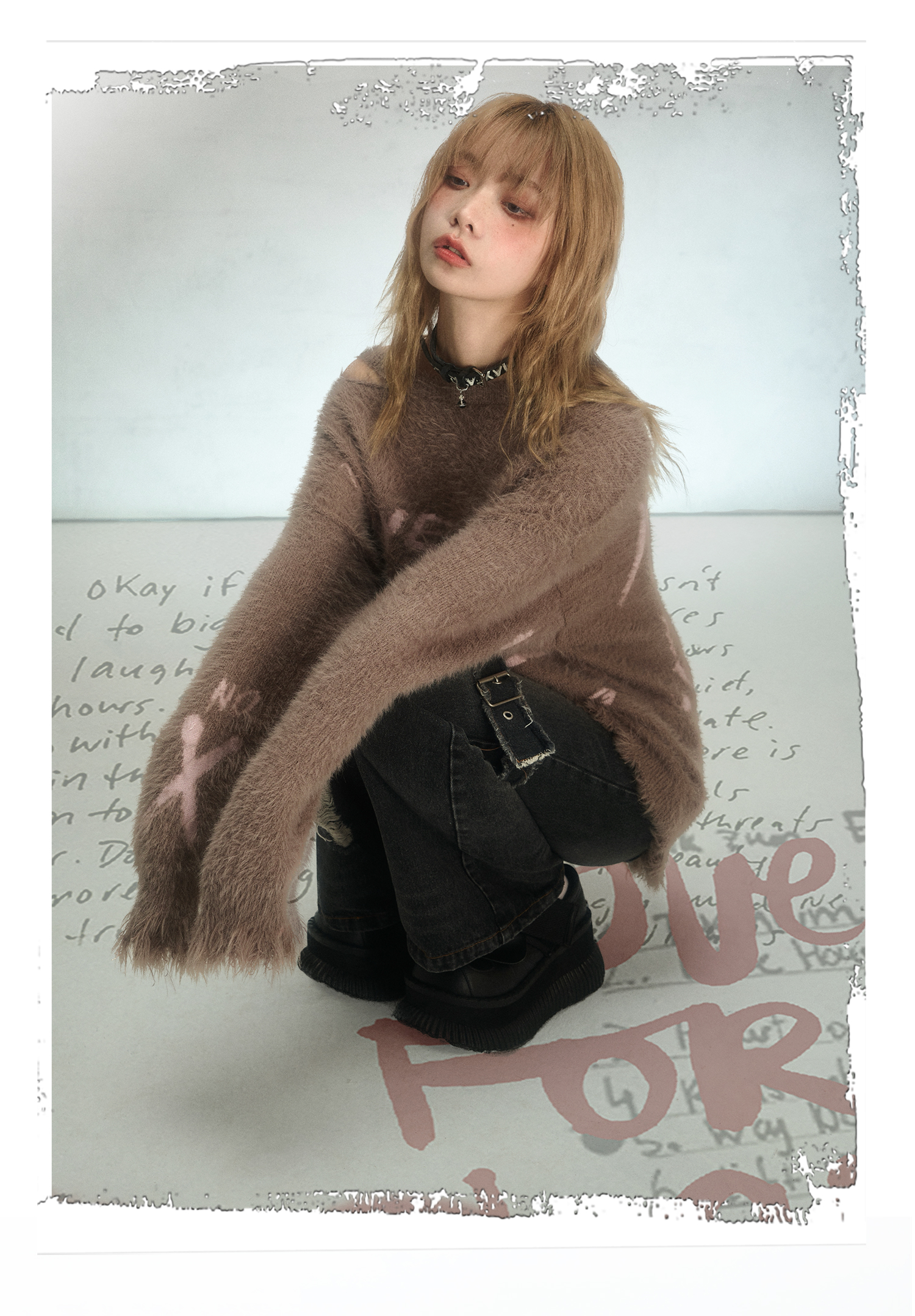 Graffiti Jacquard Oversize Pullover Knit Sweater NA6964