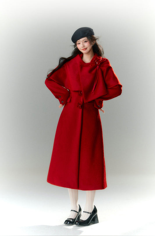 Shoulder Pad Leopard Print Patchwork Wool Coat NA8125