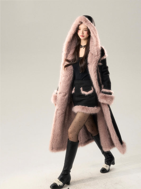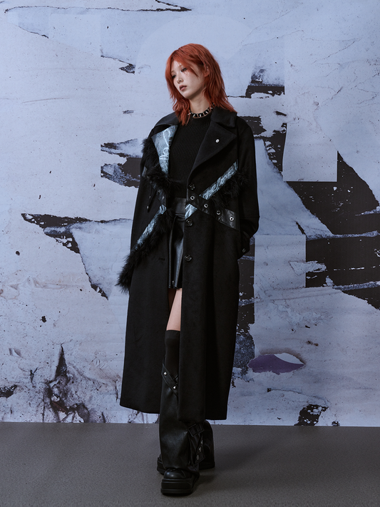 Punk Suede Fake Fur Long Shearling Coat NA8143