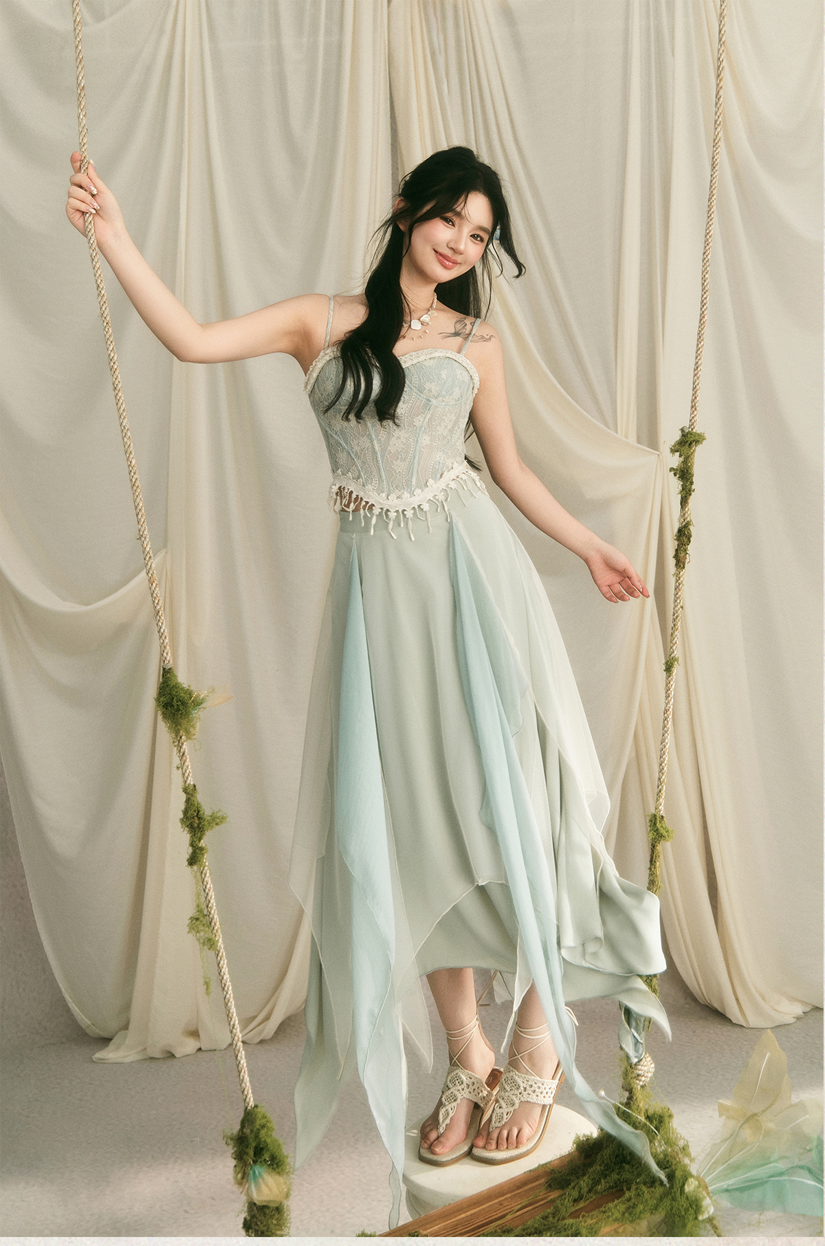 Lace Floral Tube Top & Layered Skirt Setup NA7531