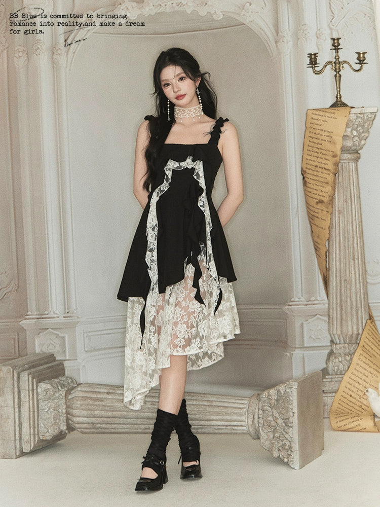 Rose Asymmetrical Hem Lace Slip Dress NA7542