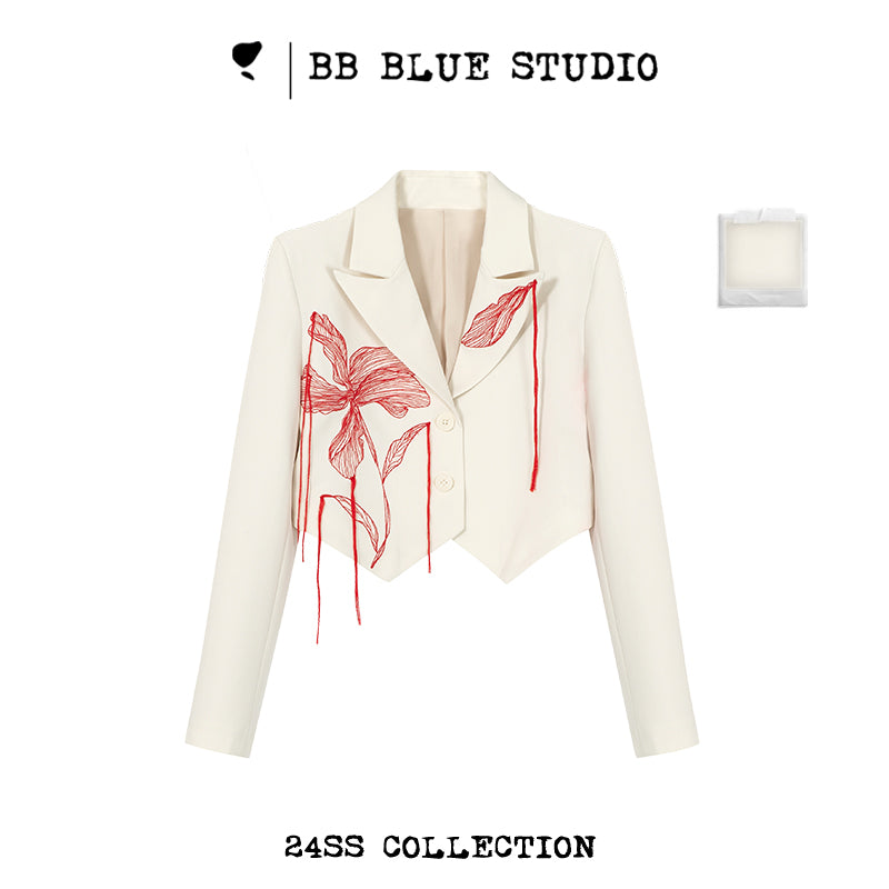 Shoulder-Pad Embroidery Short Tailored Jacket NA7579