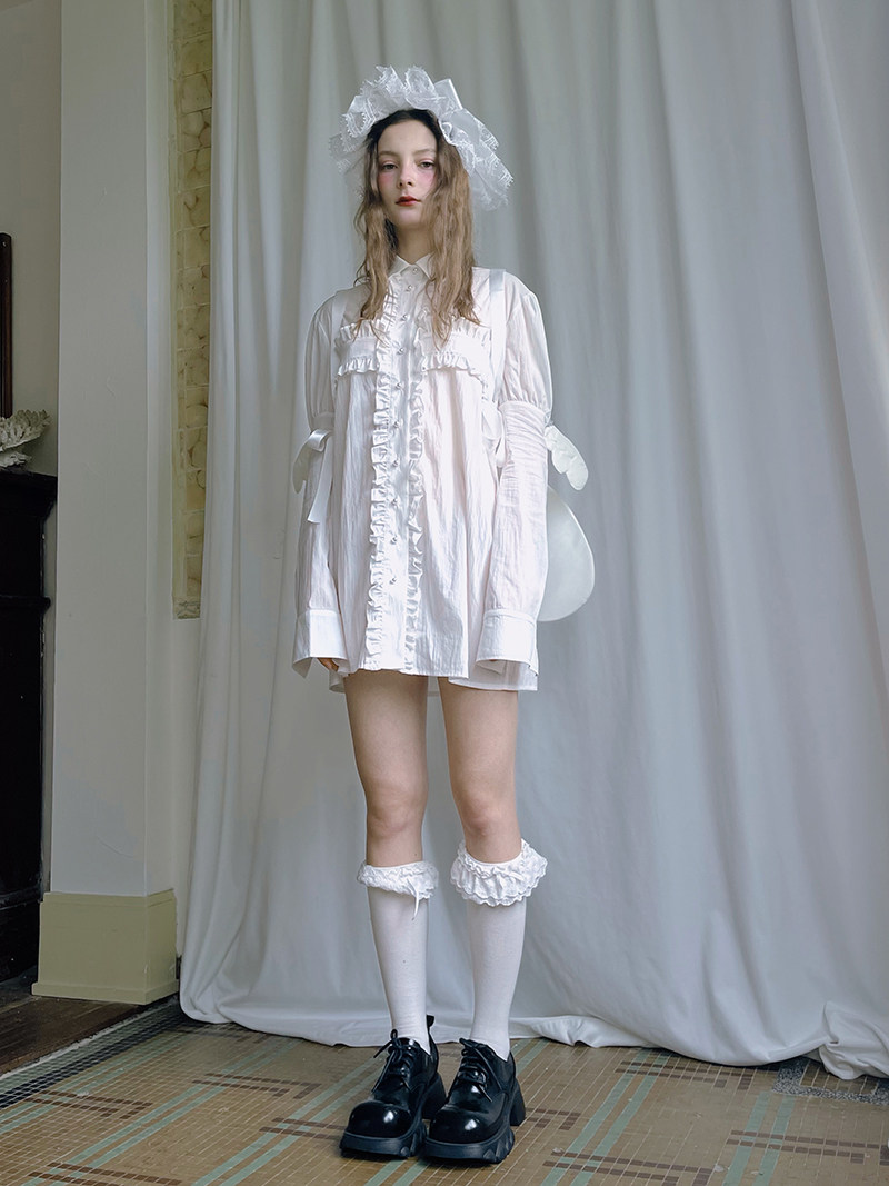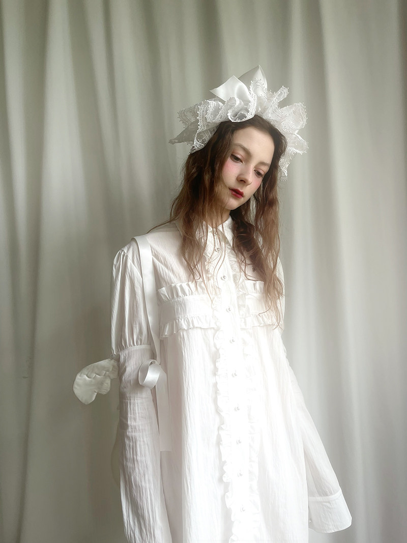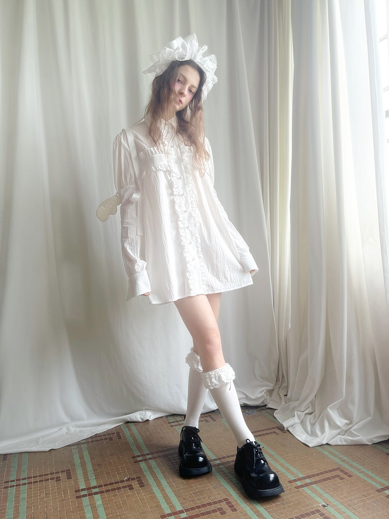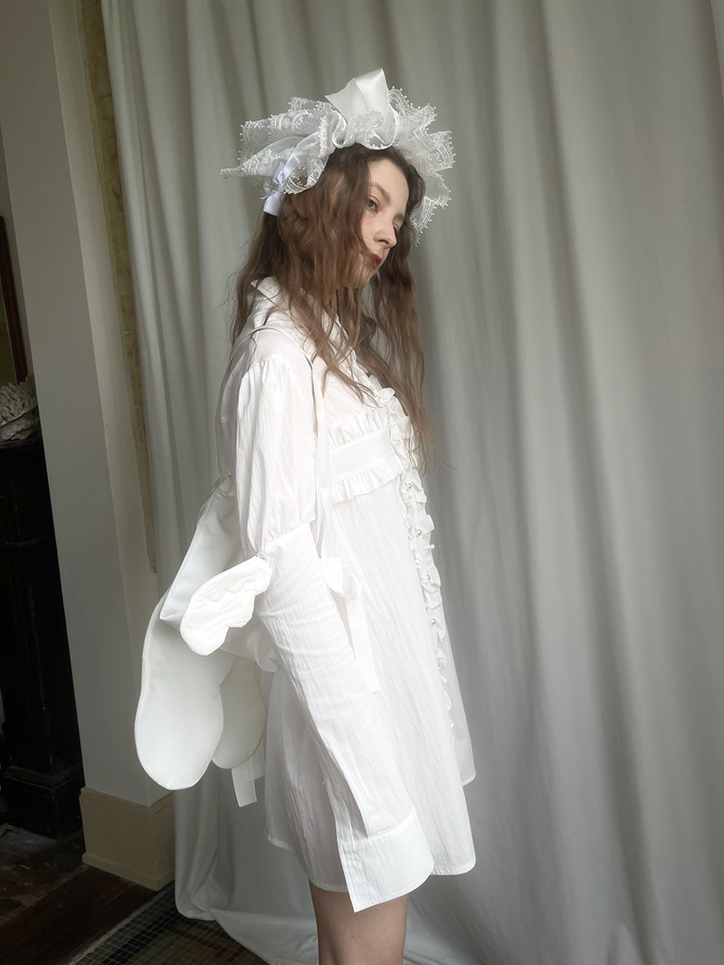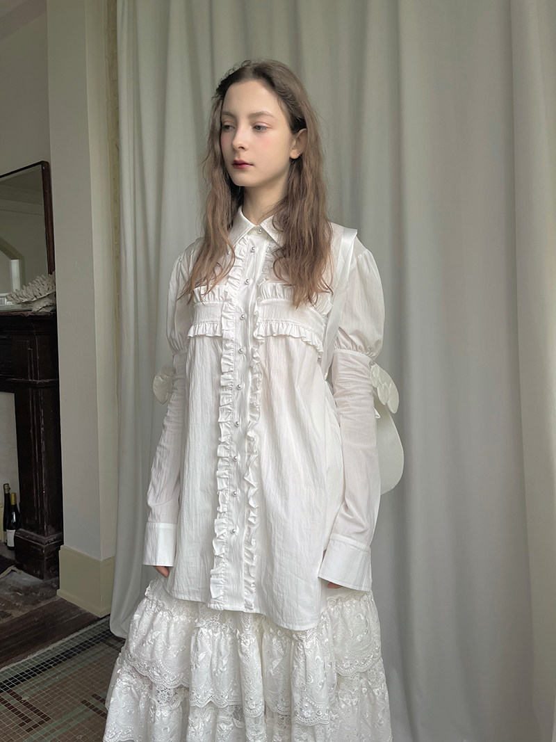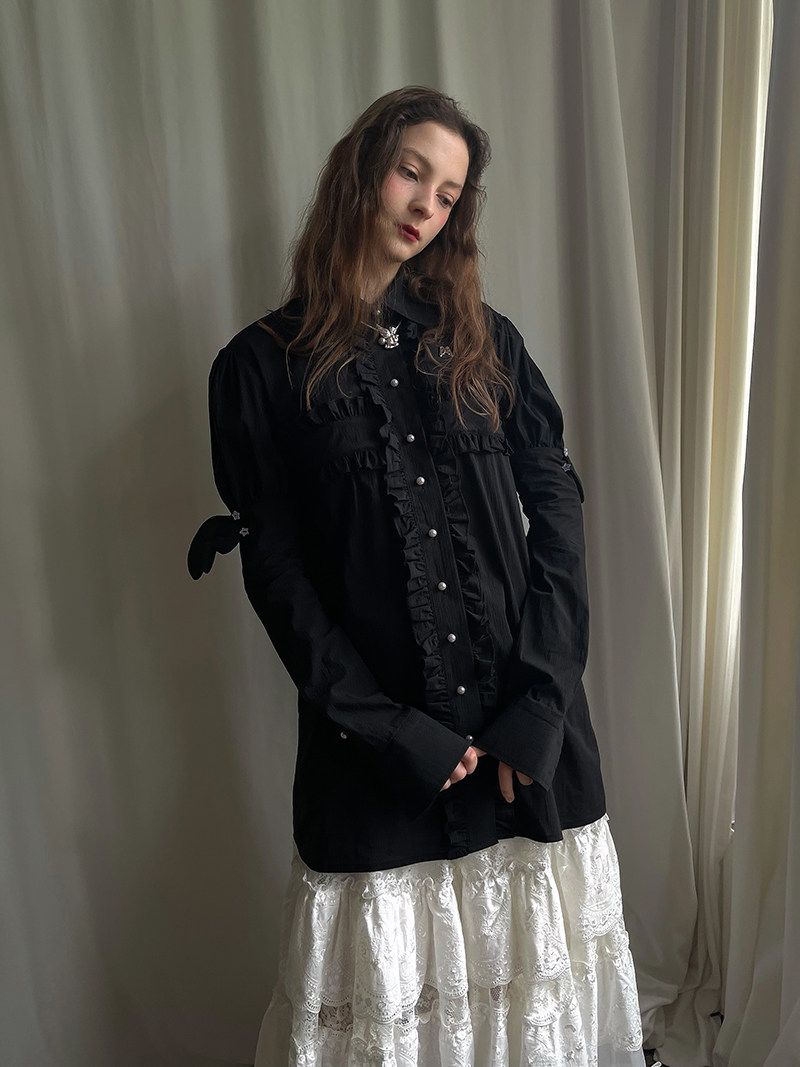 Detachable Wings Cross Ruffle Long Sleeve Shirt NA8258