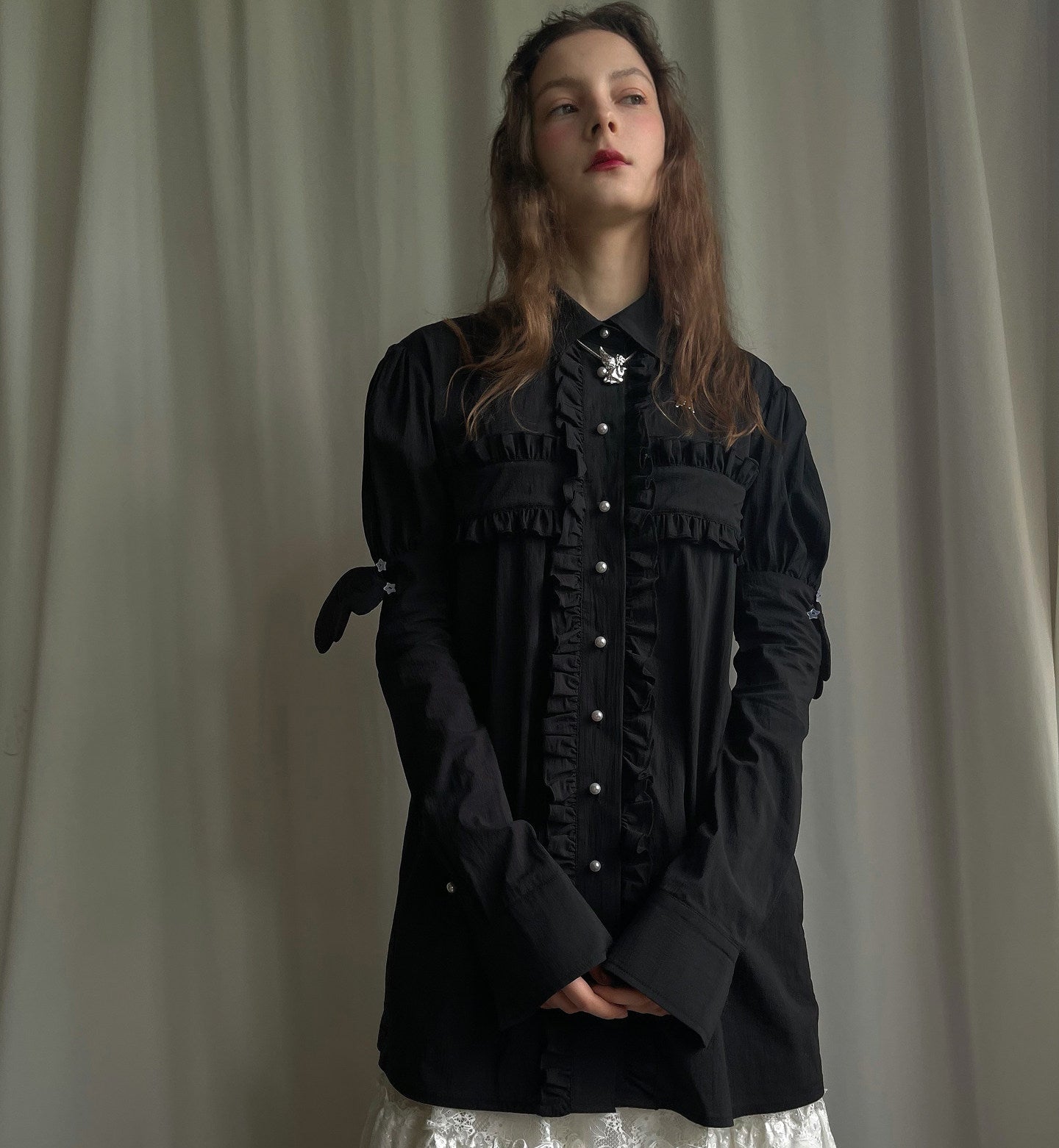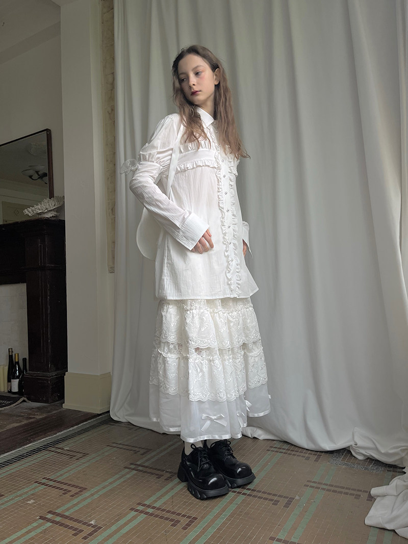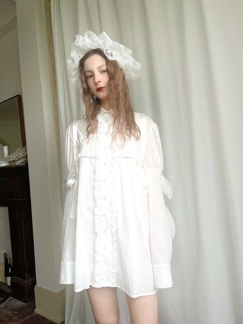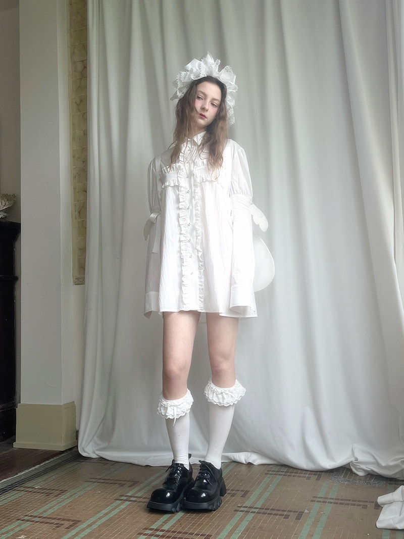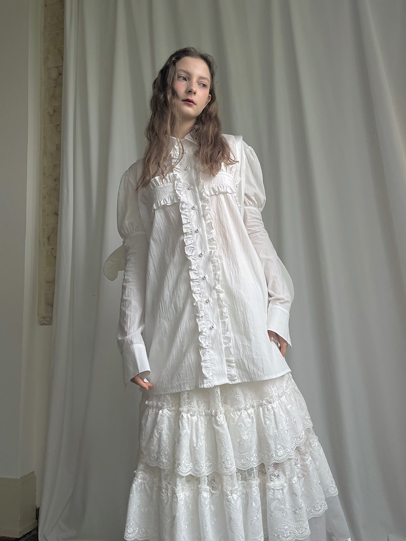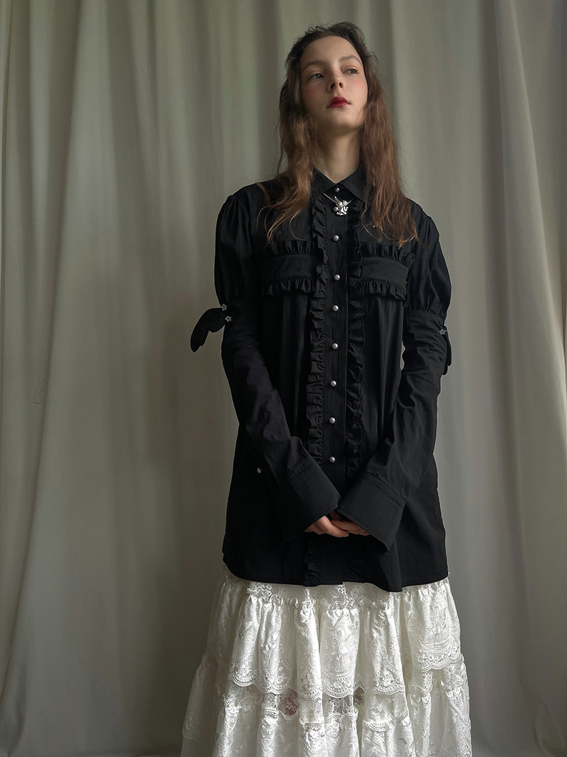 Detachable Wings Cross Ruffle Long Sleeve Shirt NA8258