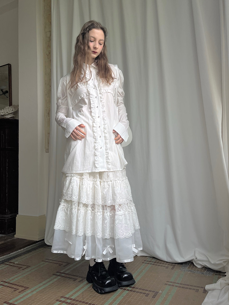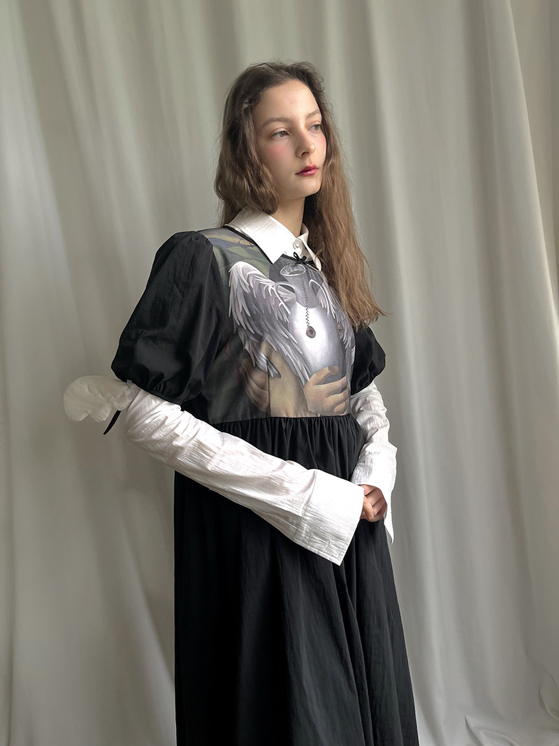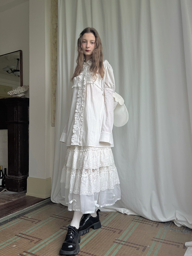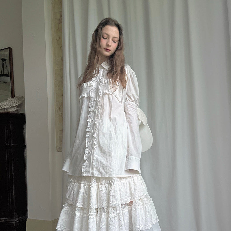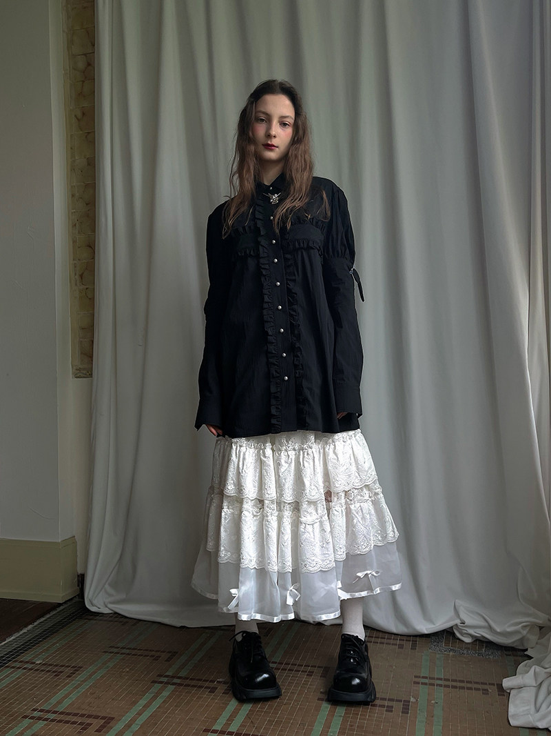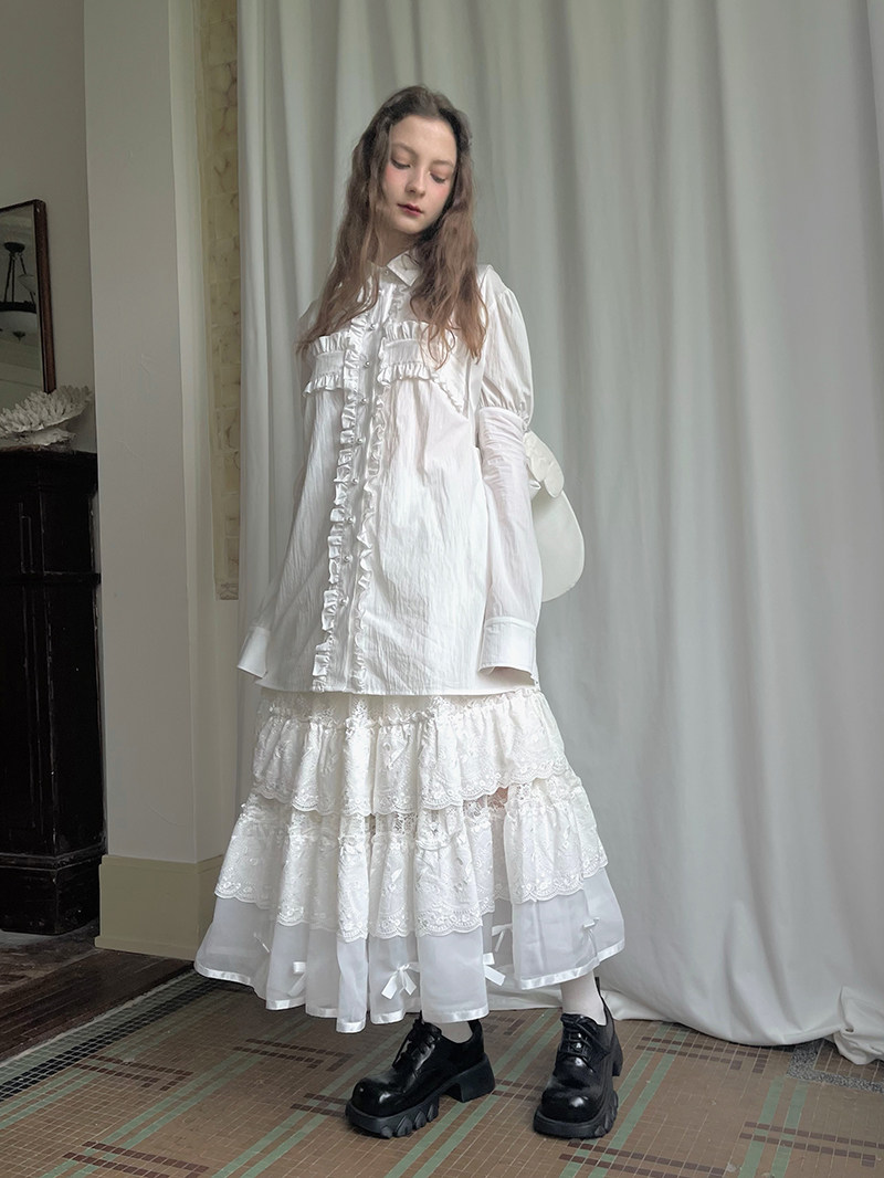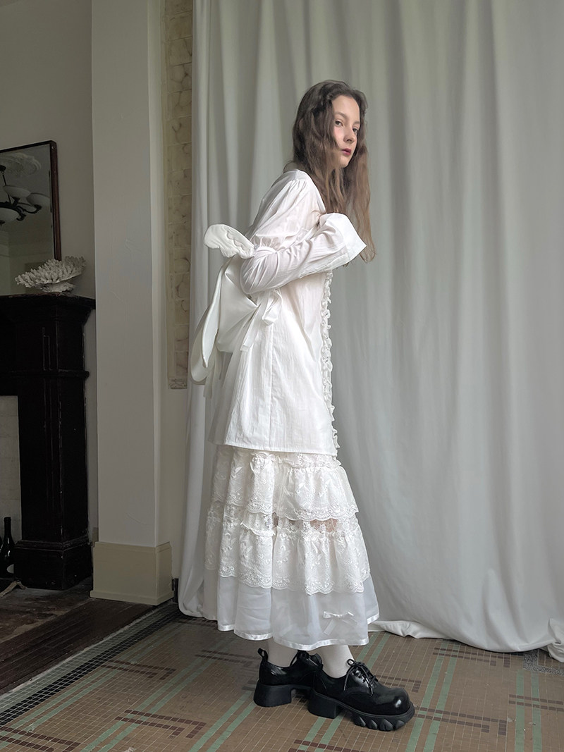 Detachable Wings Cross Ruffle Long Sleeve Shirt NA8258