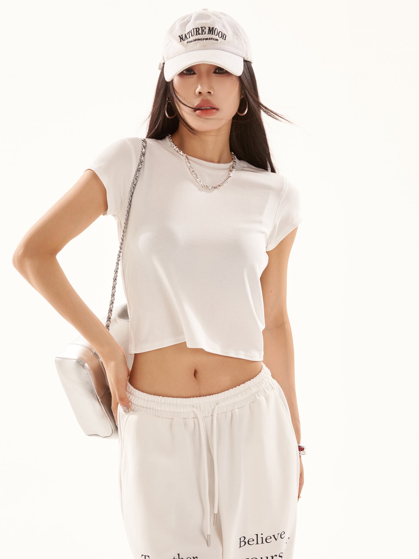 Cropped Round Neck Short Sleeve T-shirt NA3713