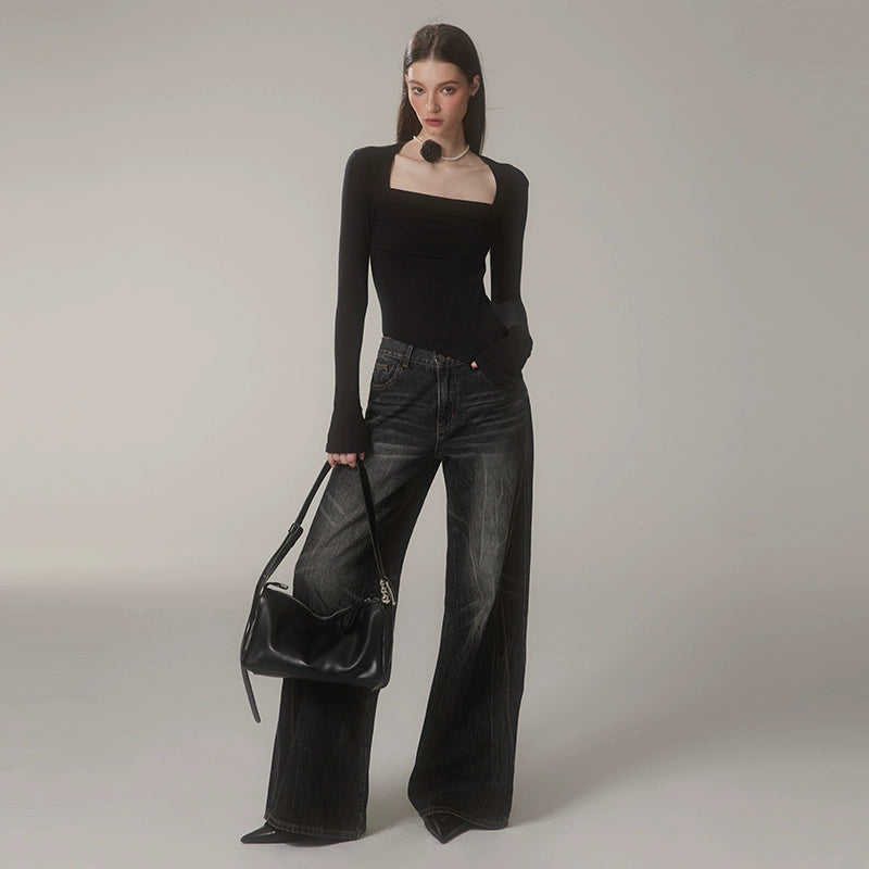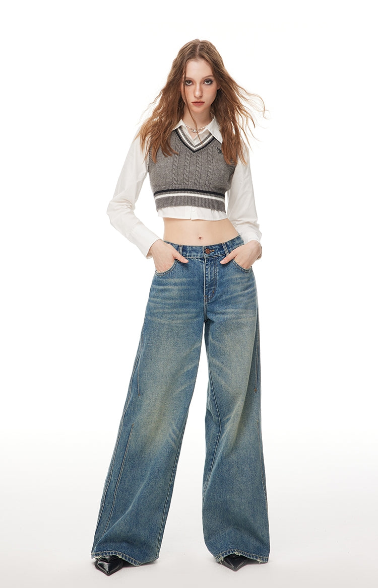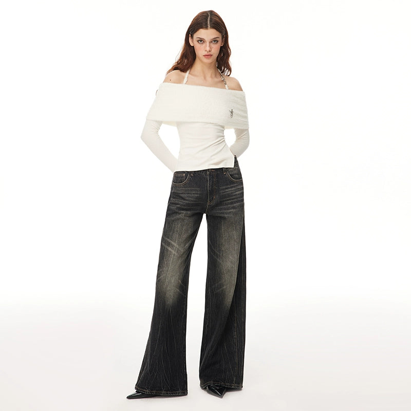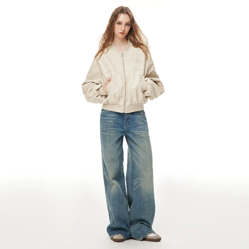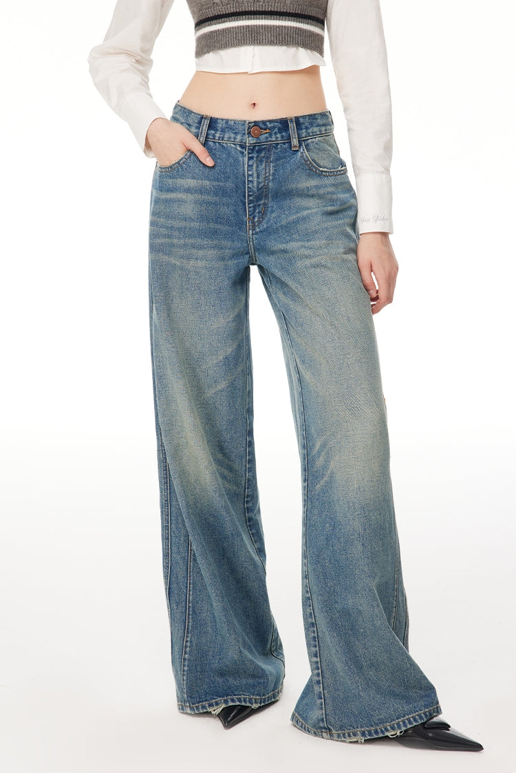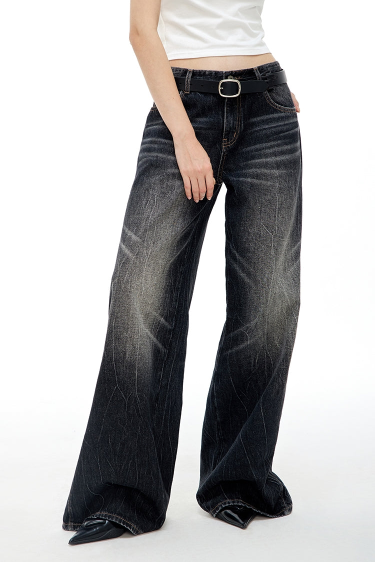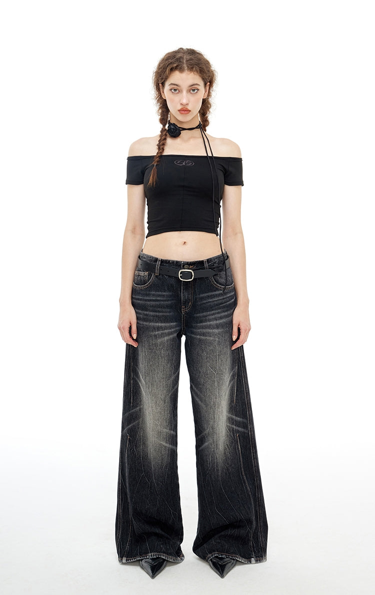 Washed Wide-Leg Buggy Denim Jeans NA4074