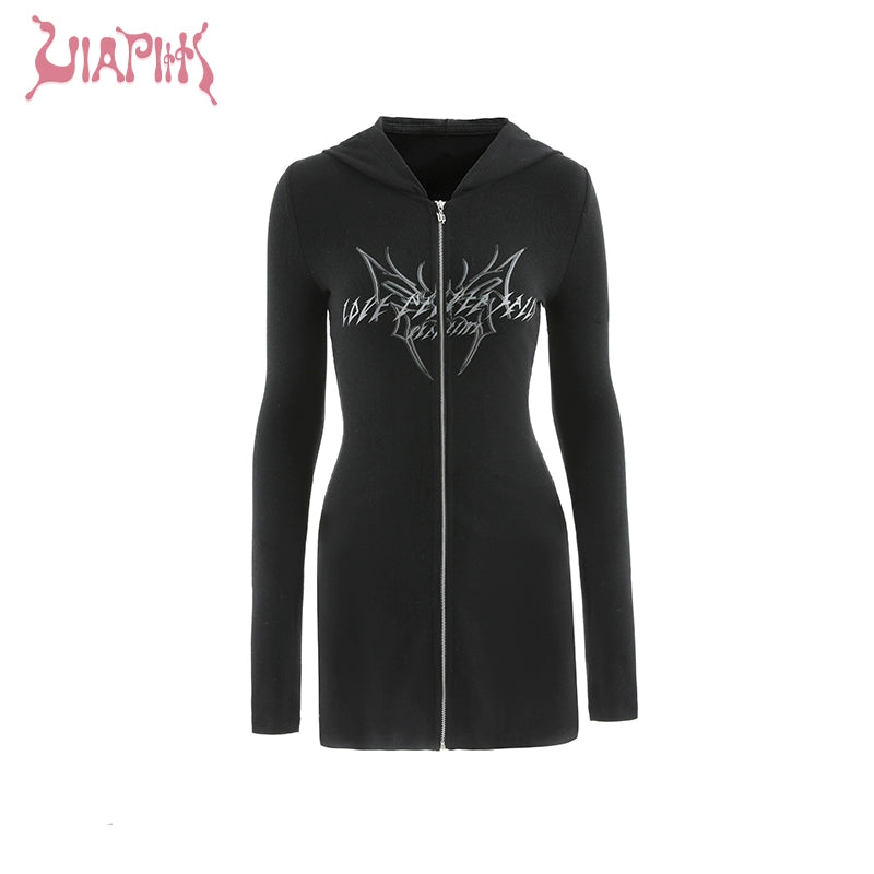 Graffiti Print Hooded Long Sleeve Dress NA4829