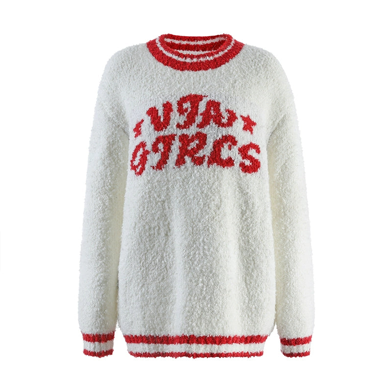 Contrast Letter Round Neck Knit Sweater NA4958