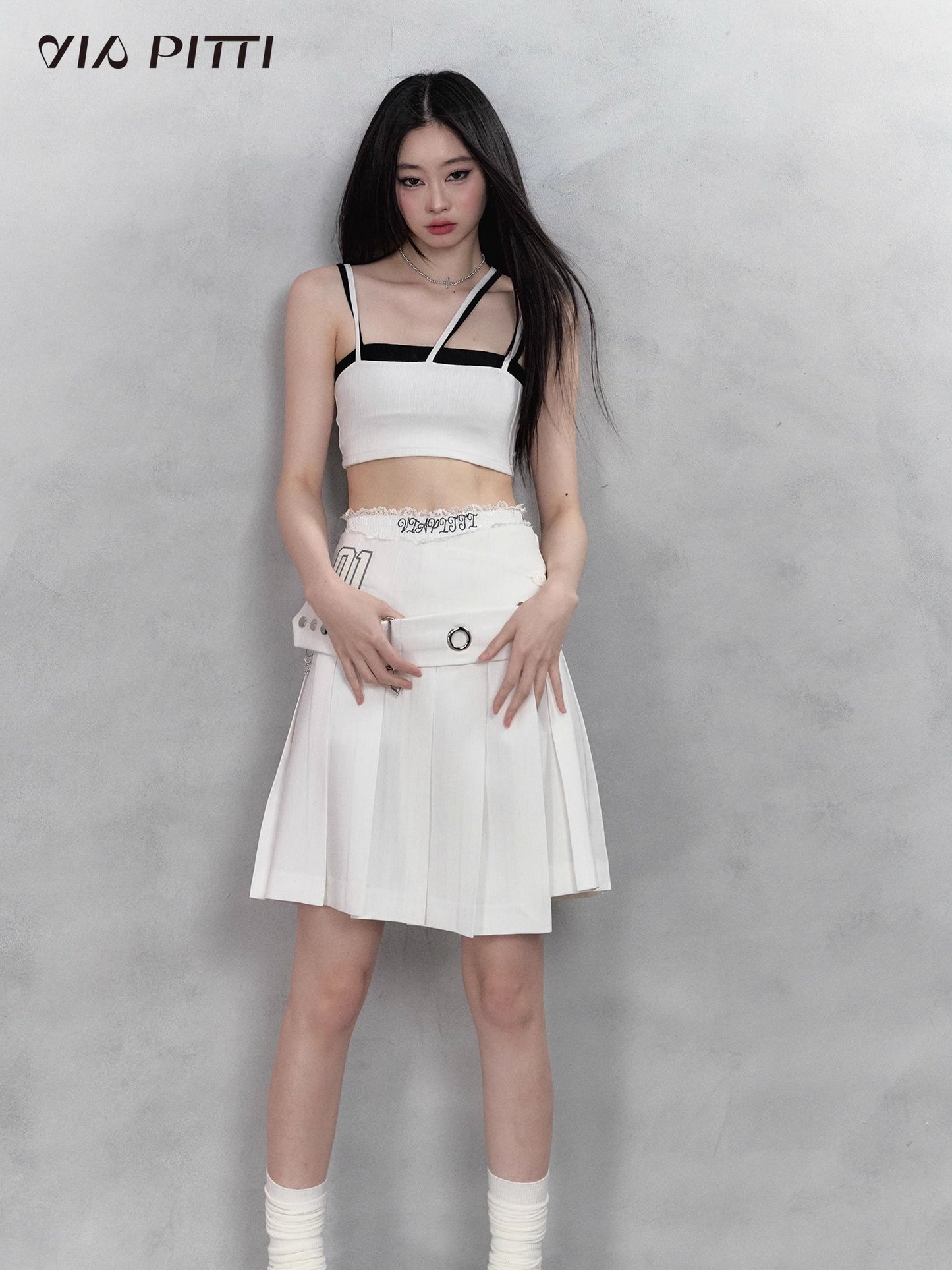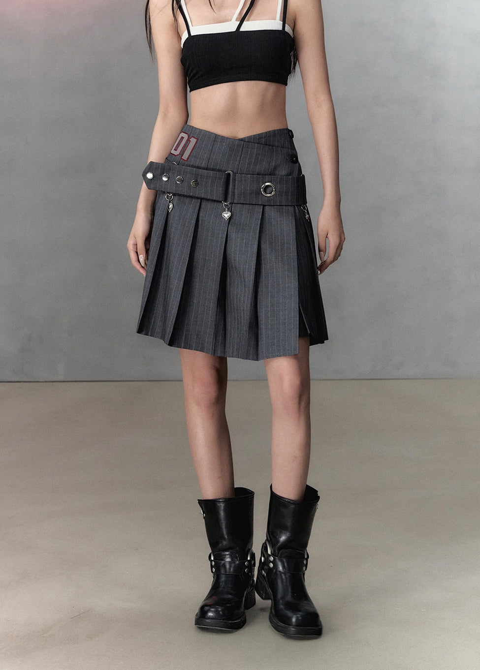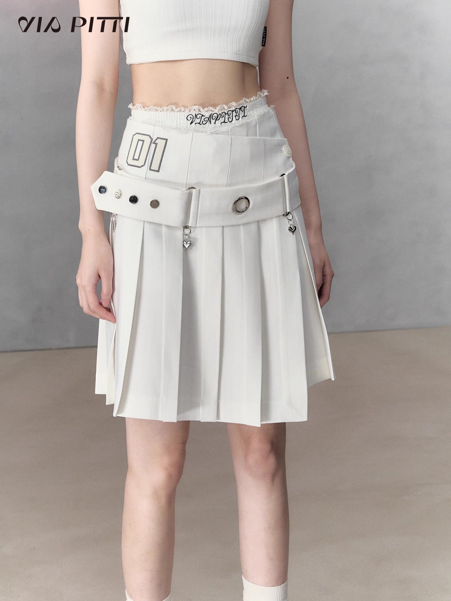 Pleated A-Line Skirt & Belt NA4979