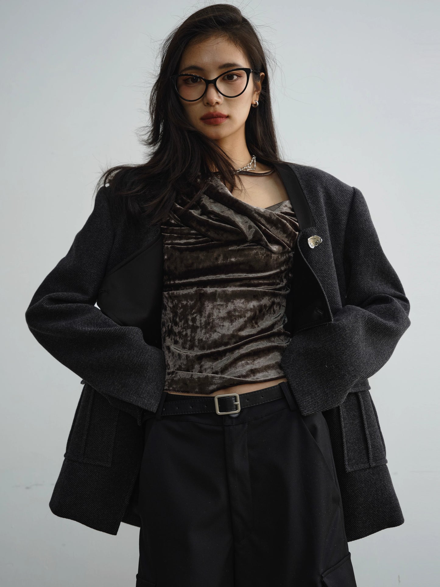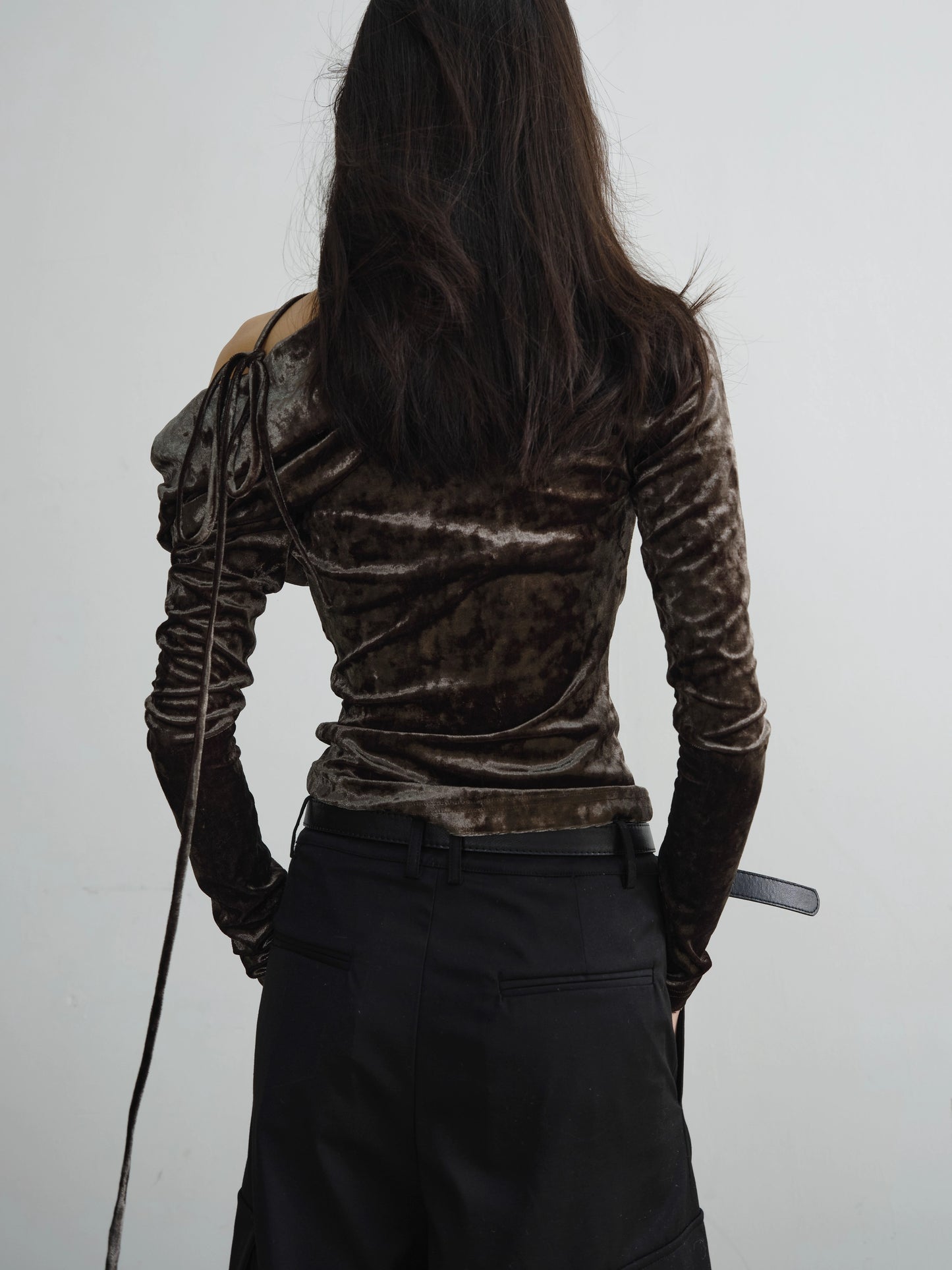 Off Shoulder Velvet Glossy Long Sleeve Blouse NA5172