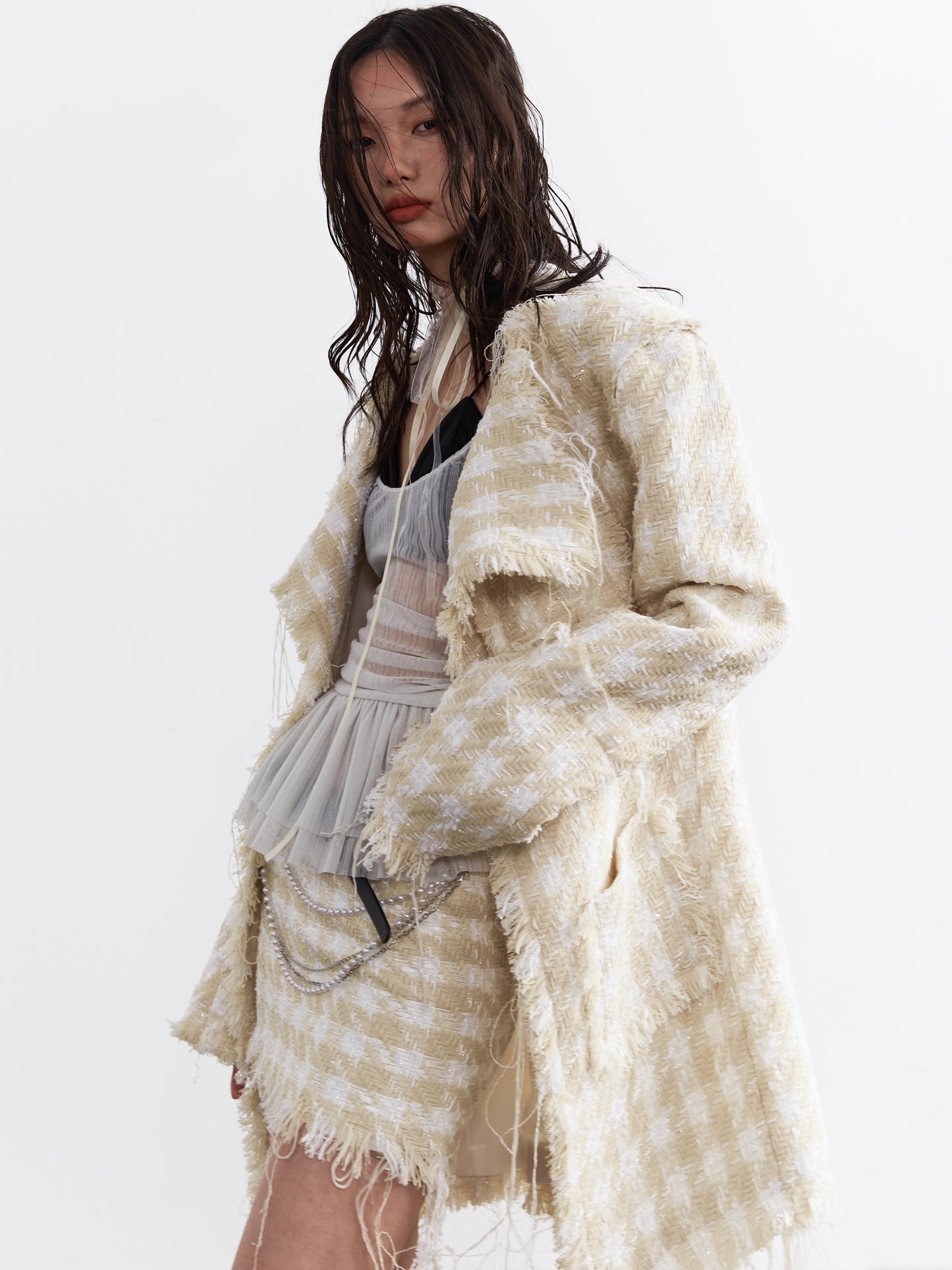 Hairy Edge Plaid Pattern Short Skirt NA5213