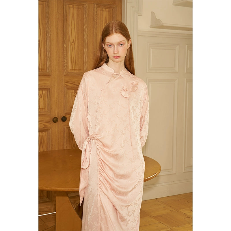 Three-dimensional Flower Diagonal Placket Long Sleeve Dress NA5305