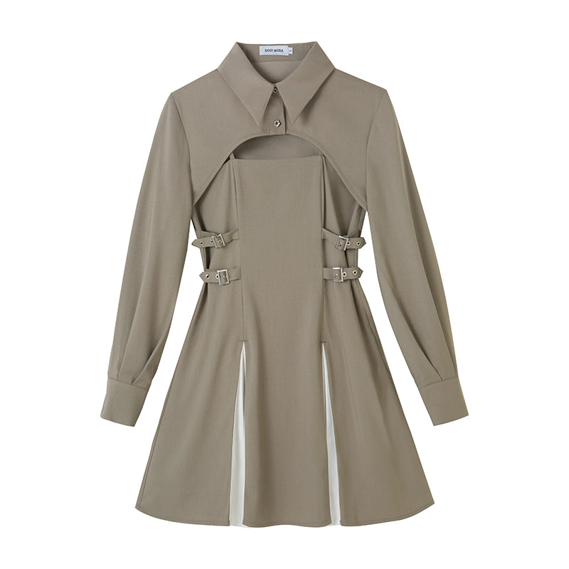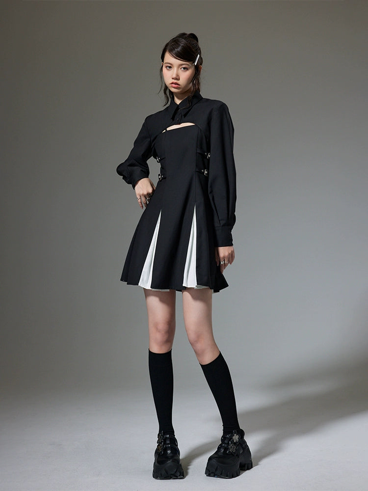Short Length Long Sleeve Shirt & Pleated Camisole Dress Setup NA5357