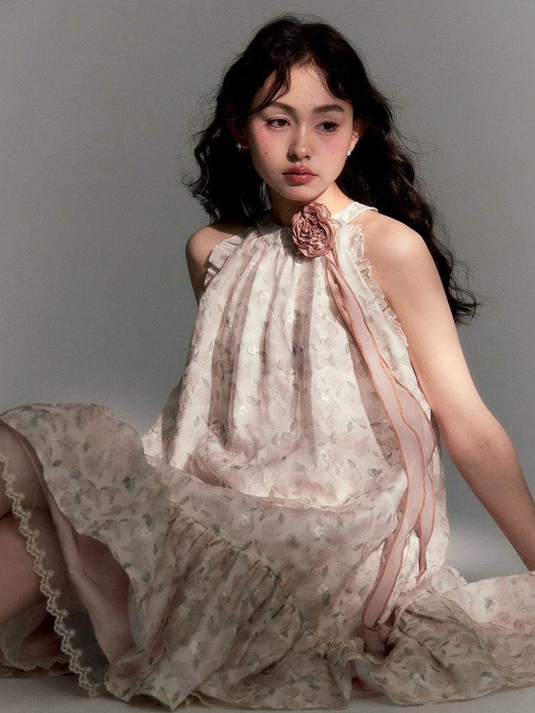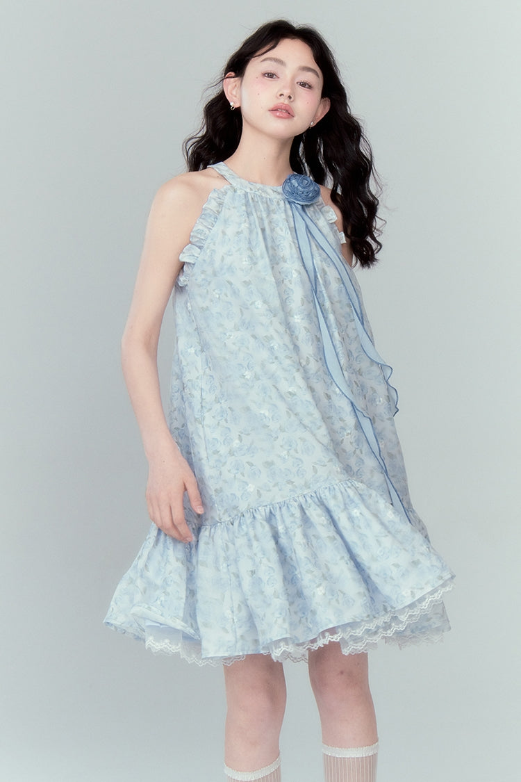 Print Embroidery Style Hanging Neck Flower Dress NA5360