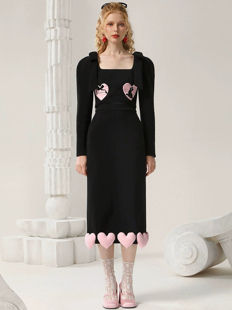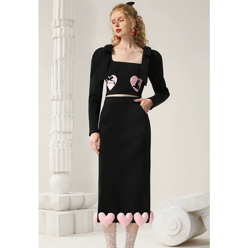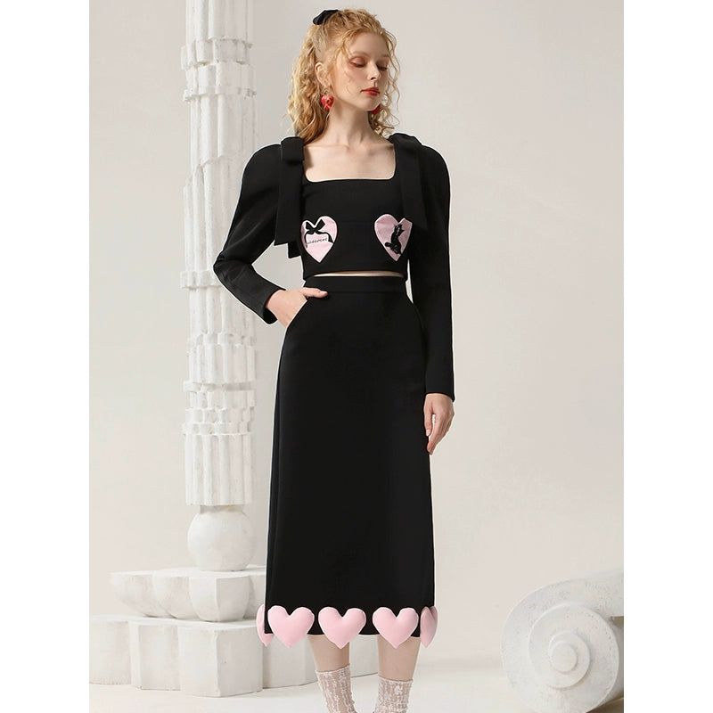 Heart-shaped Design Contrasting Color Shirt & Skirt Setup NA5501