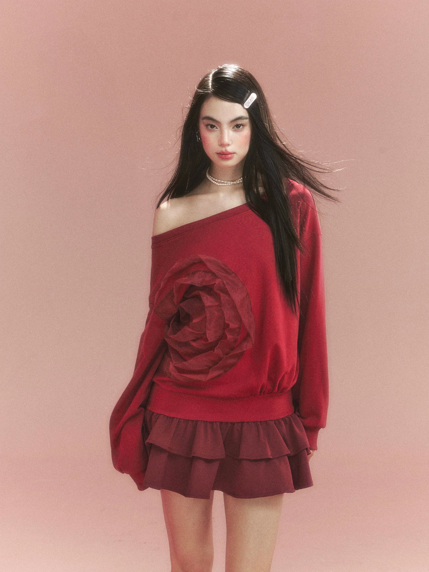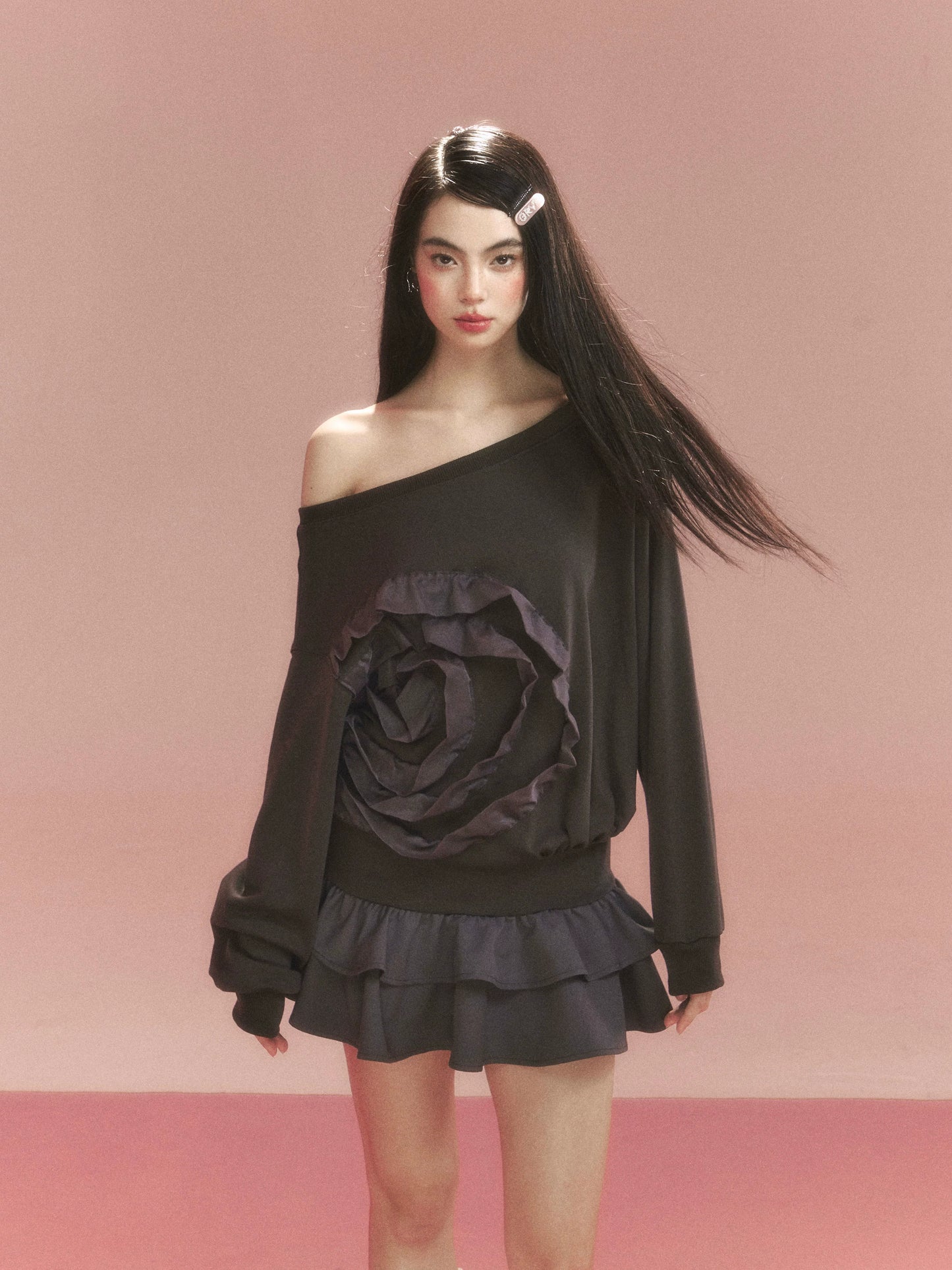 Flower Ruffle Sweatshirt Mix Dress NA5811
