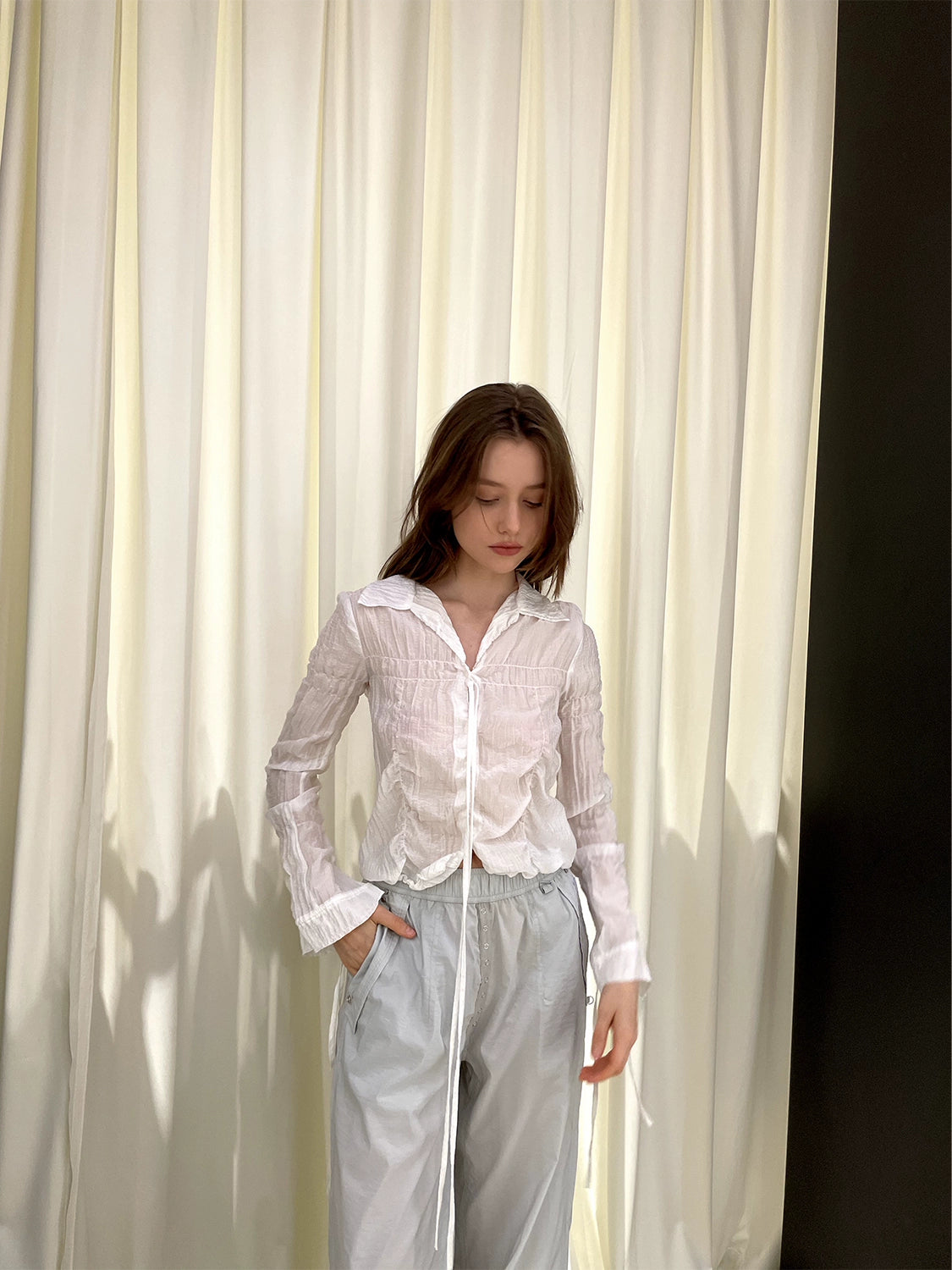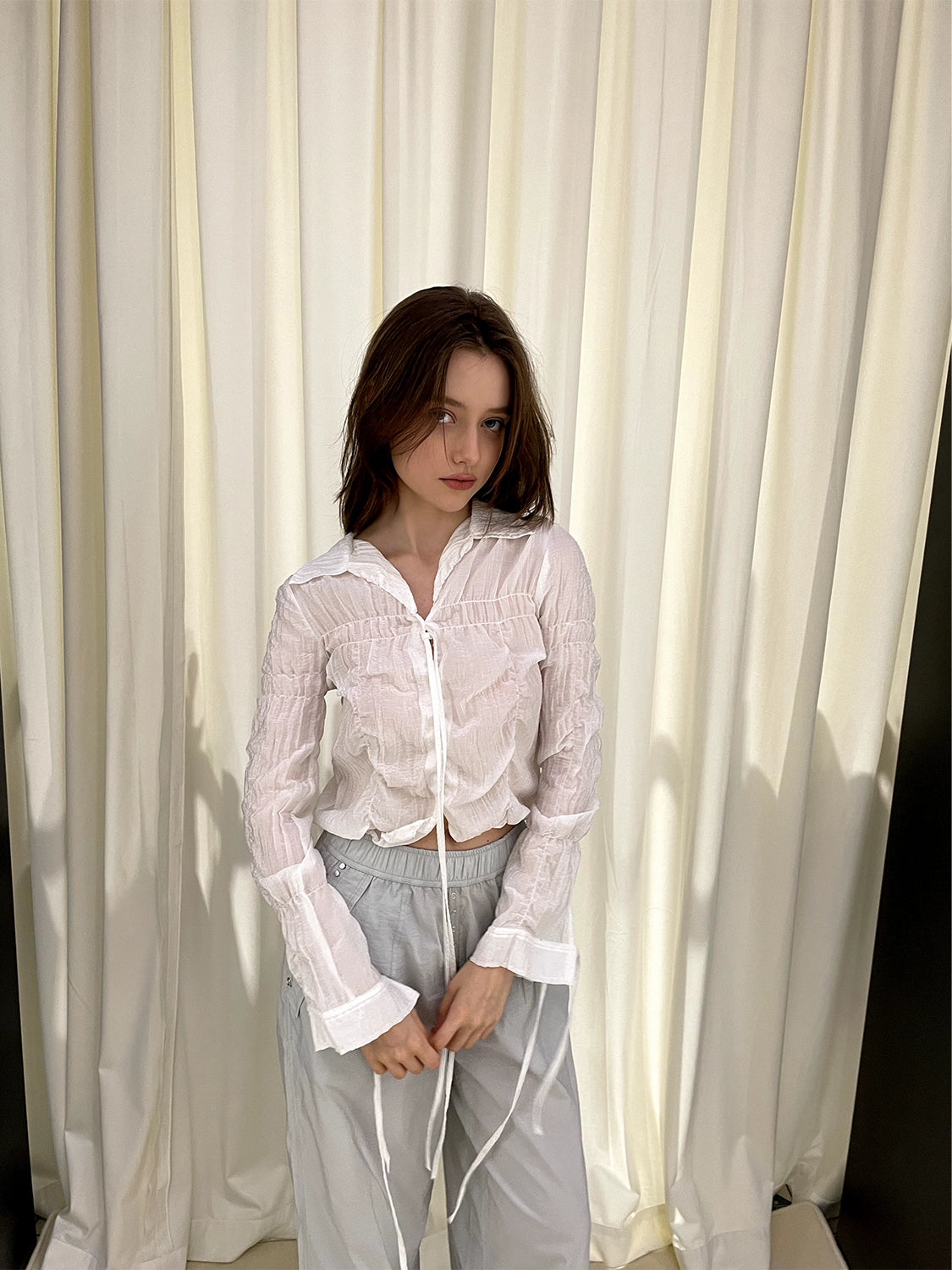 Strap Design Bubble Long Sleeve Shirt NA5953