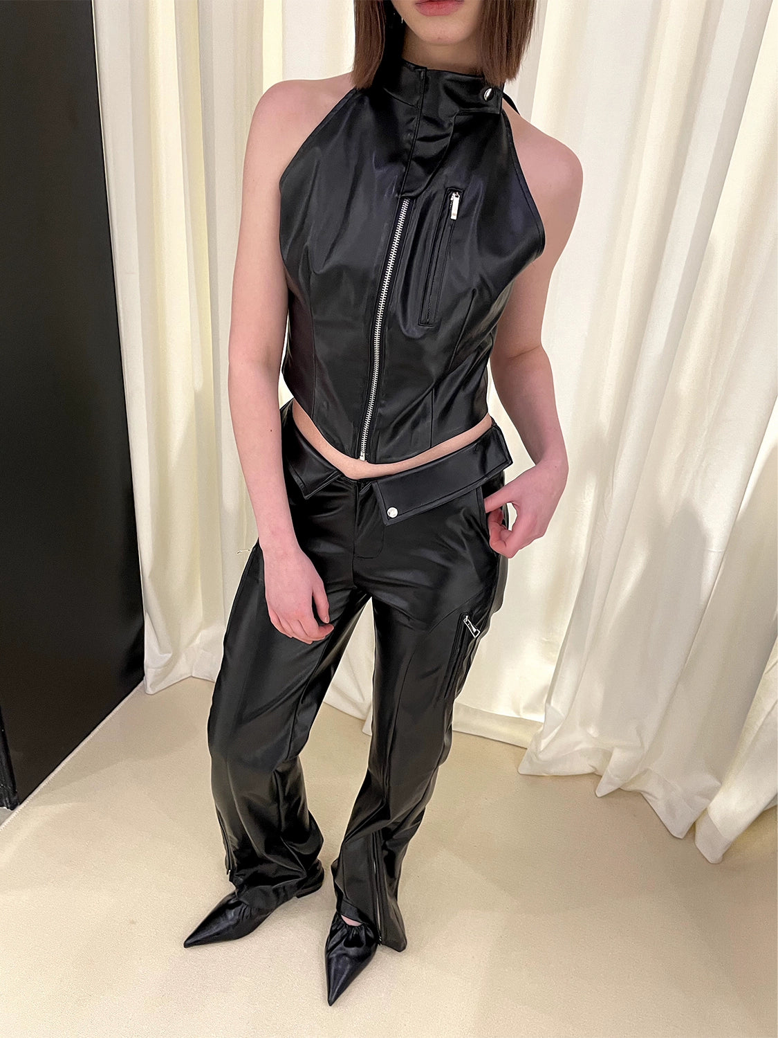 Stand Neck Zipper PU Leather Vest NA5970