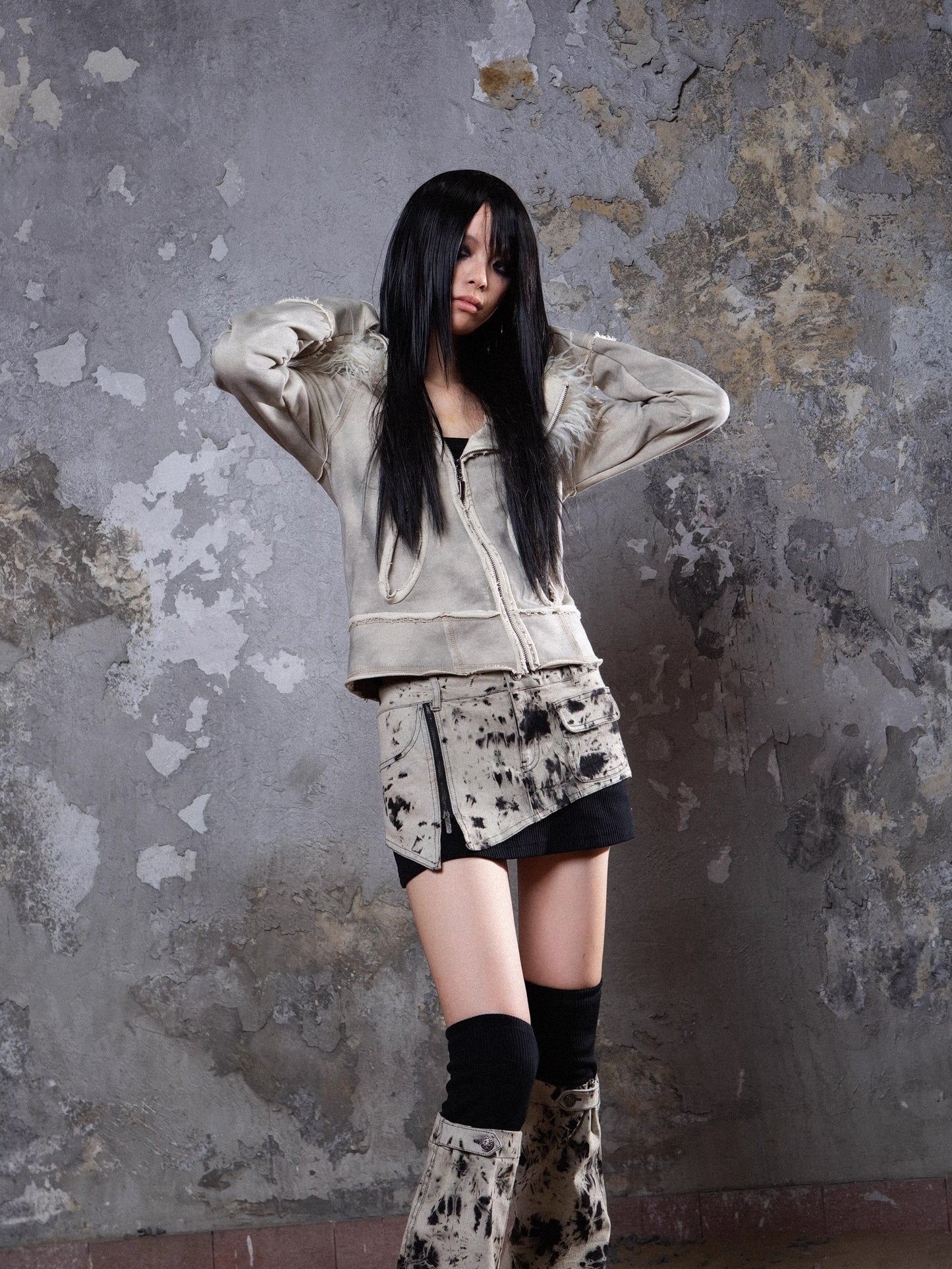 Tie Dye Low Waist Denim Short Skirt & Cowboy Leg Cover NA6175
