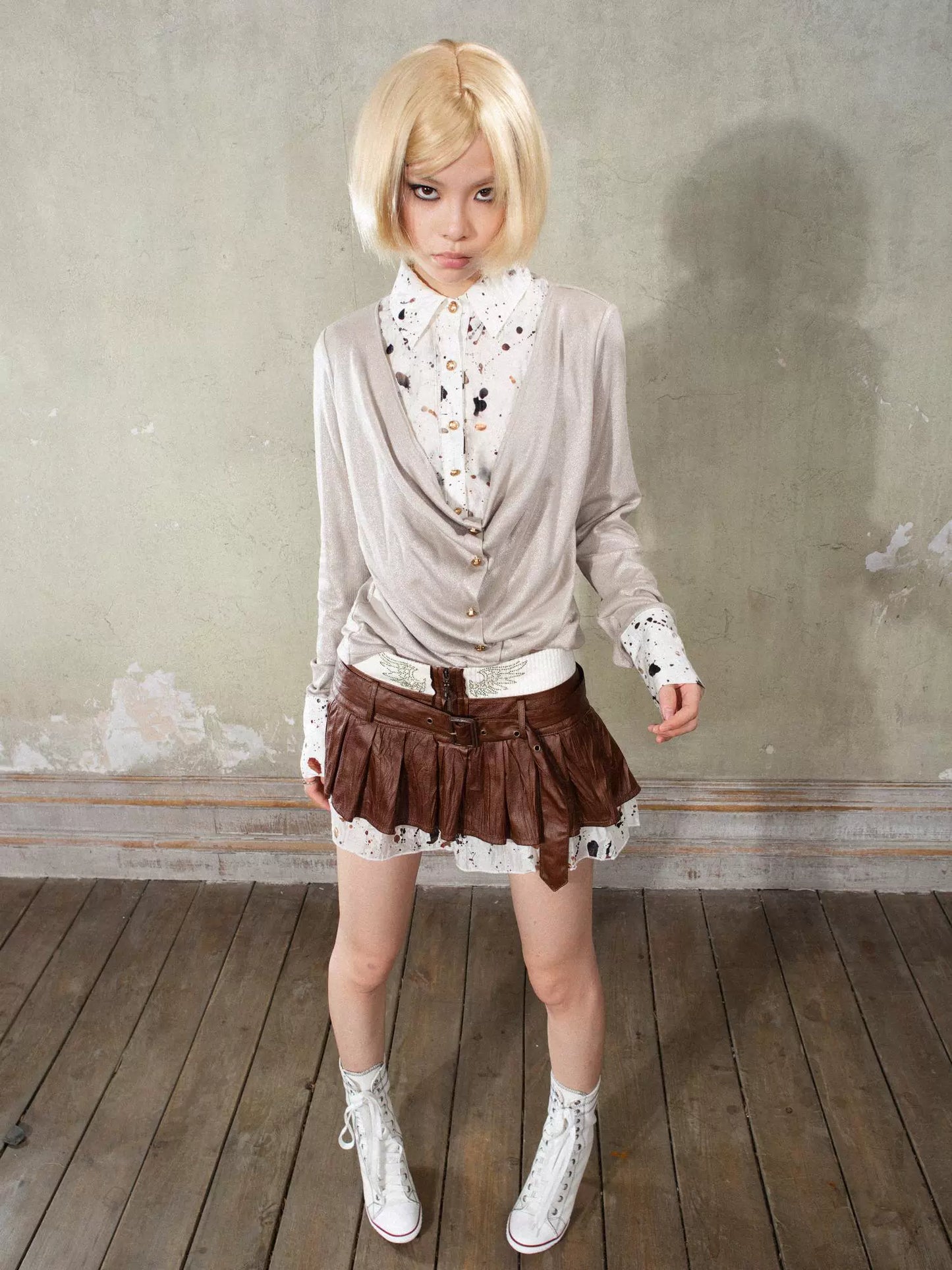 V-Neck Fake Layered Patchwork Long Sleeve Shirt NA6183