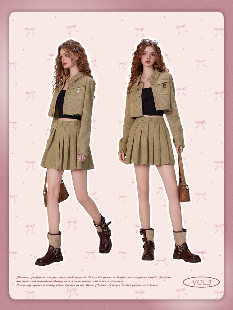 Pleats Short Skirt & Short Jacket Setup NA6848