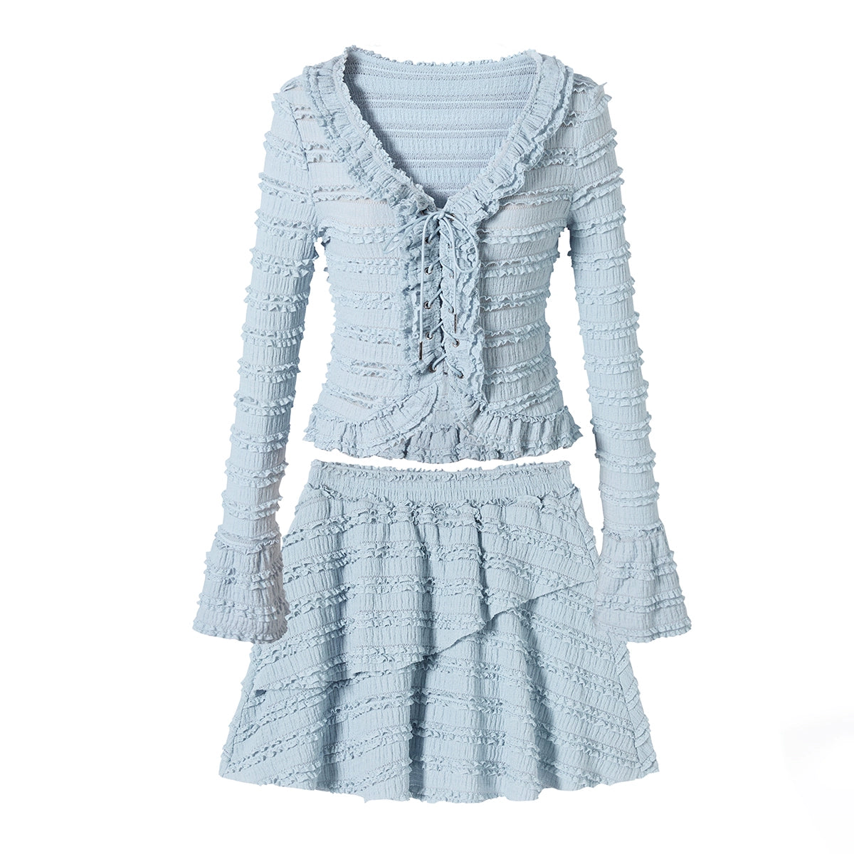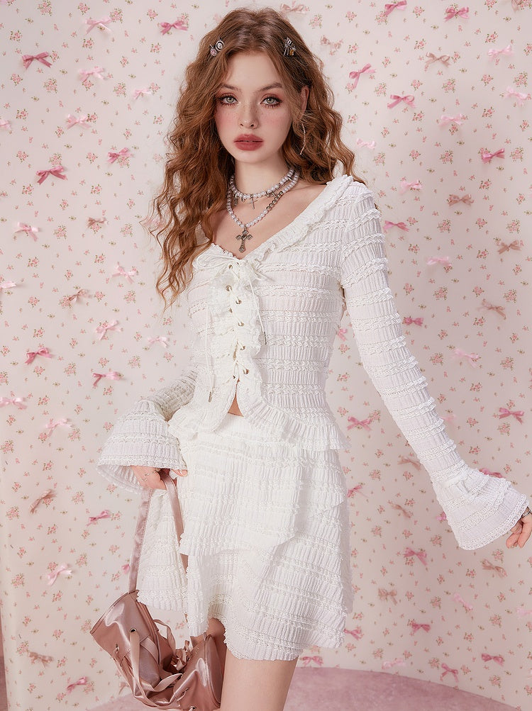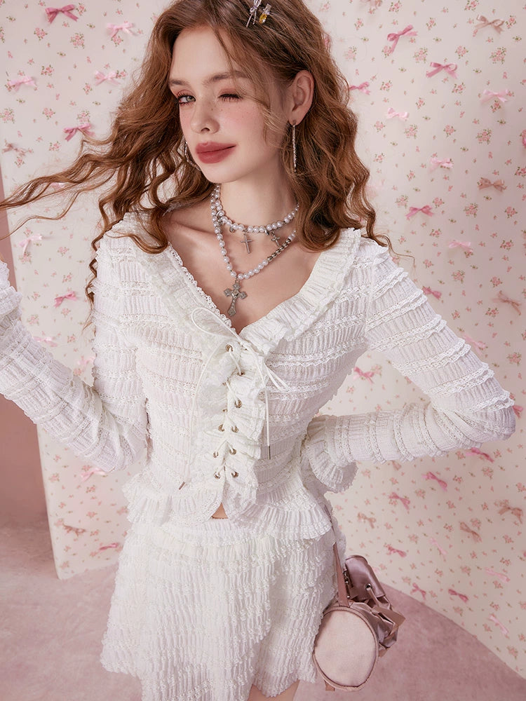 Ruffle Long Sleeve Top & Short Skirt Setup NA6849