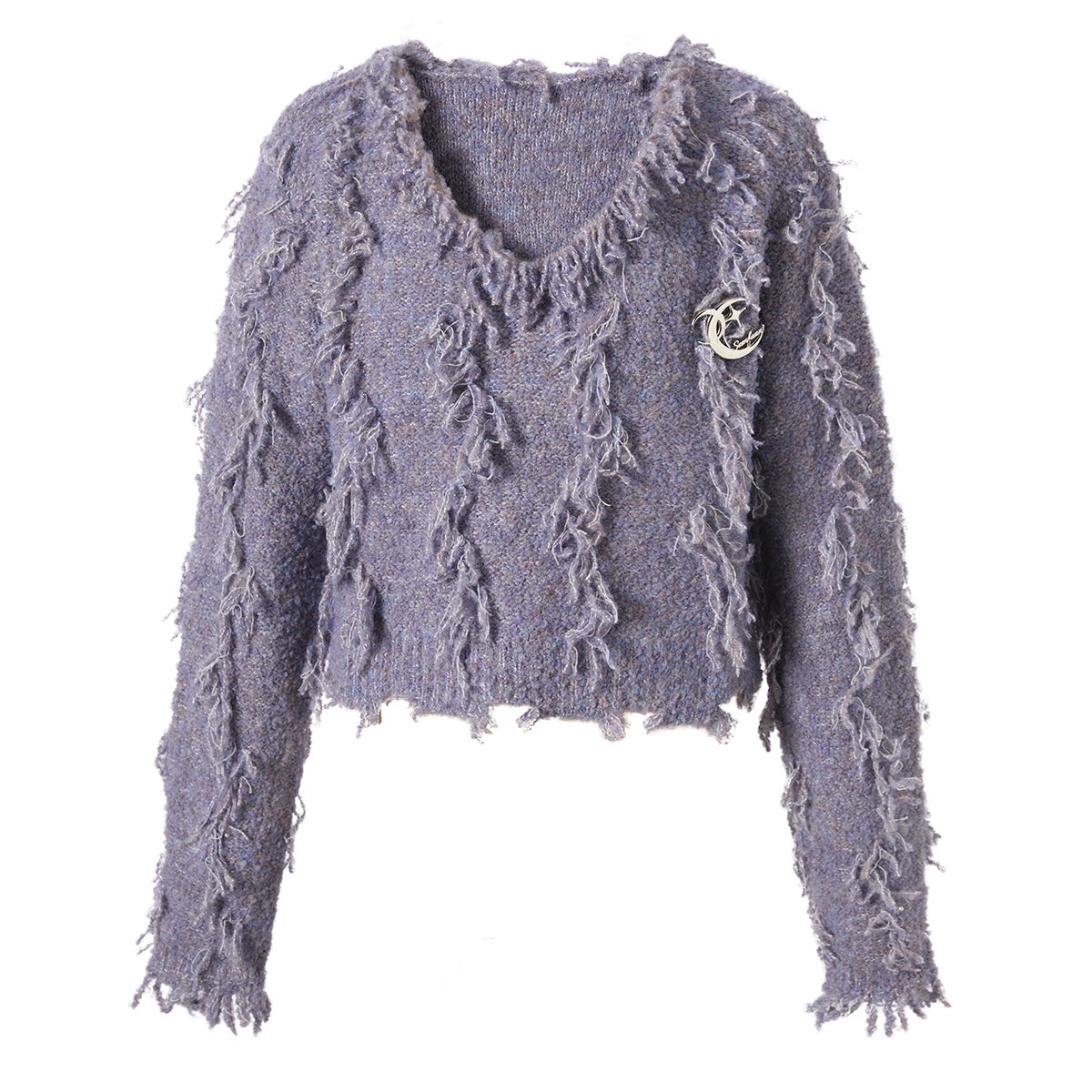 V-Neck Fringe Hem Oversize Knit Sweater NA6872