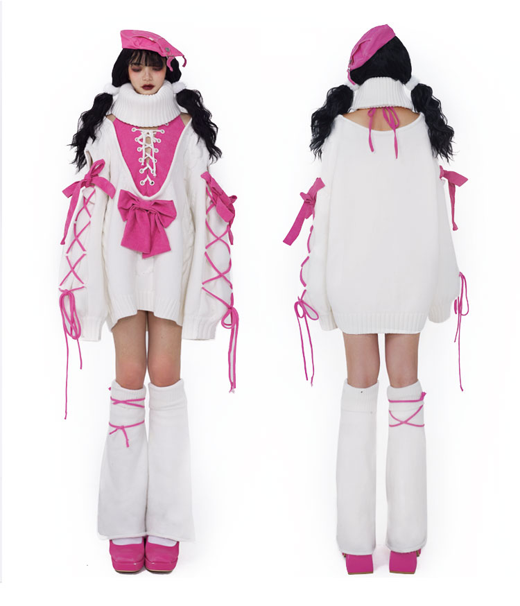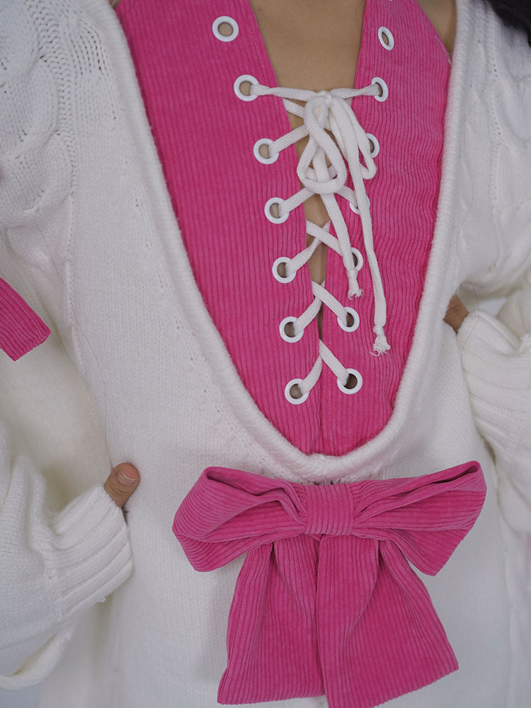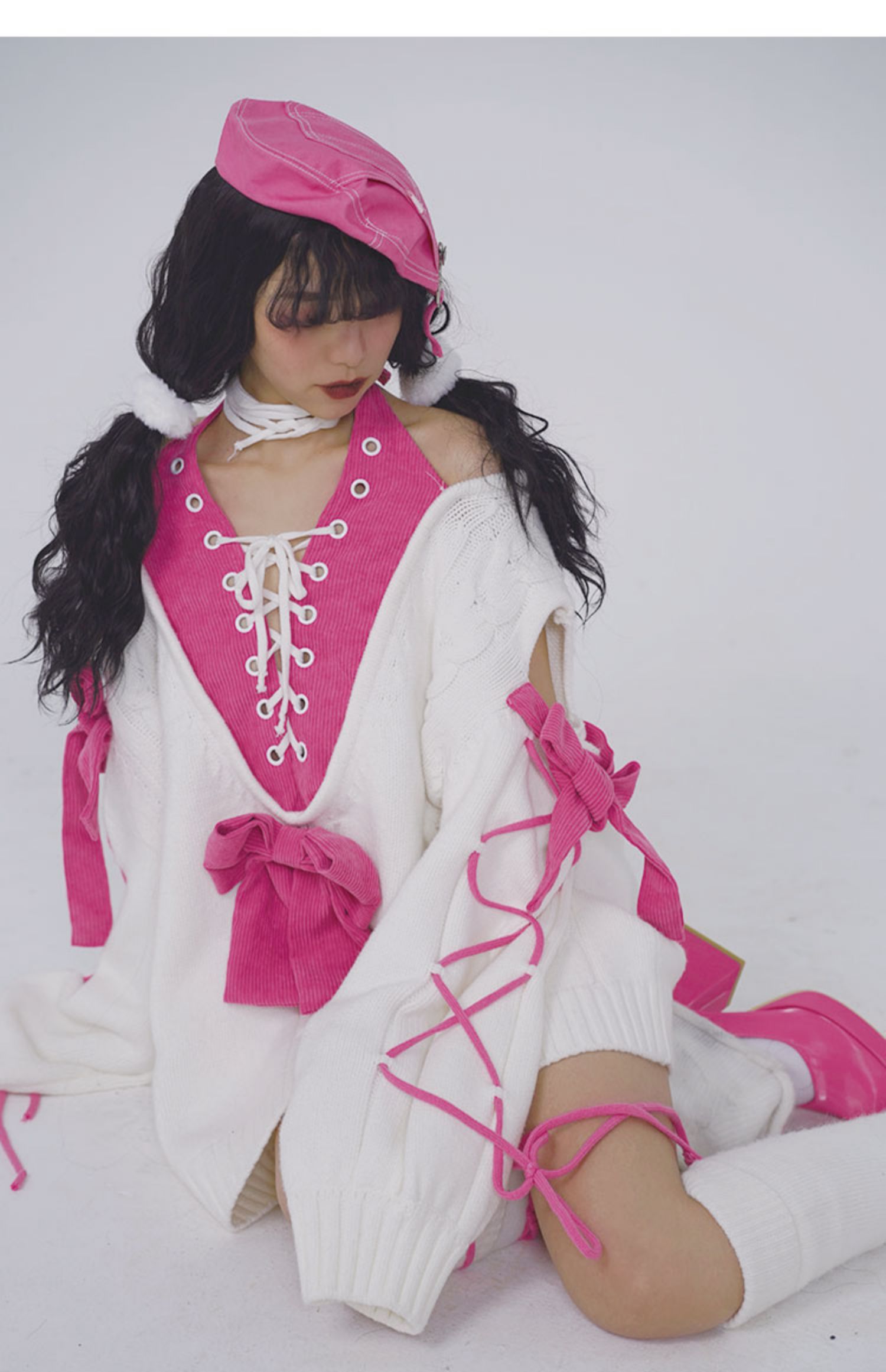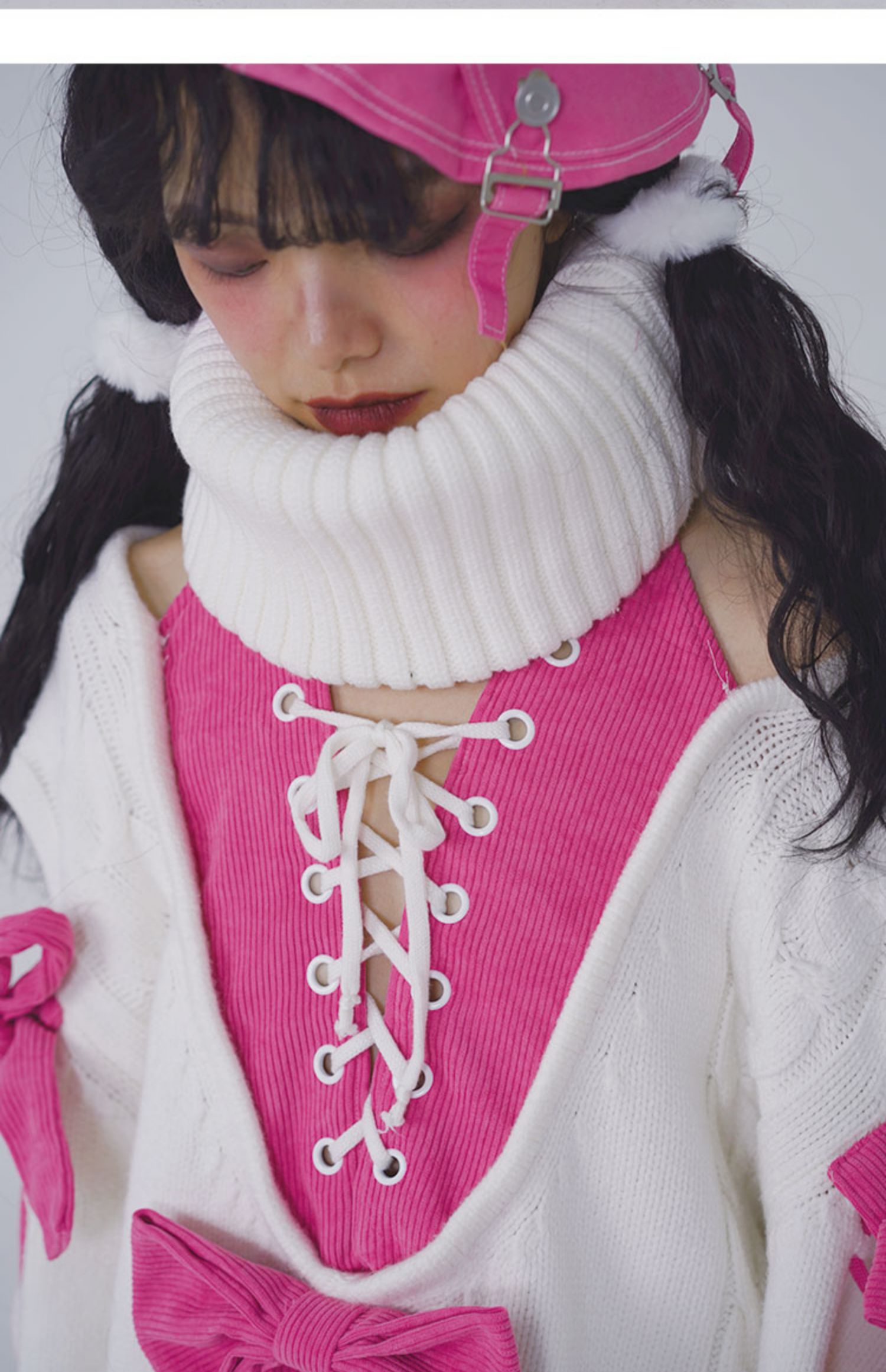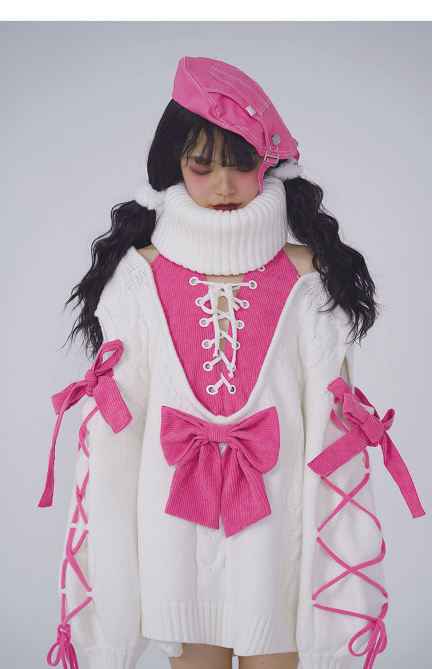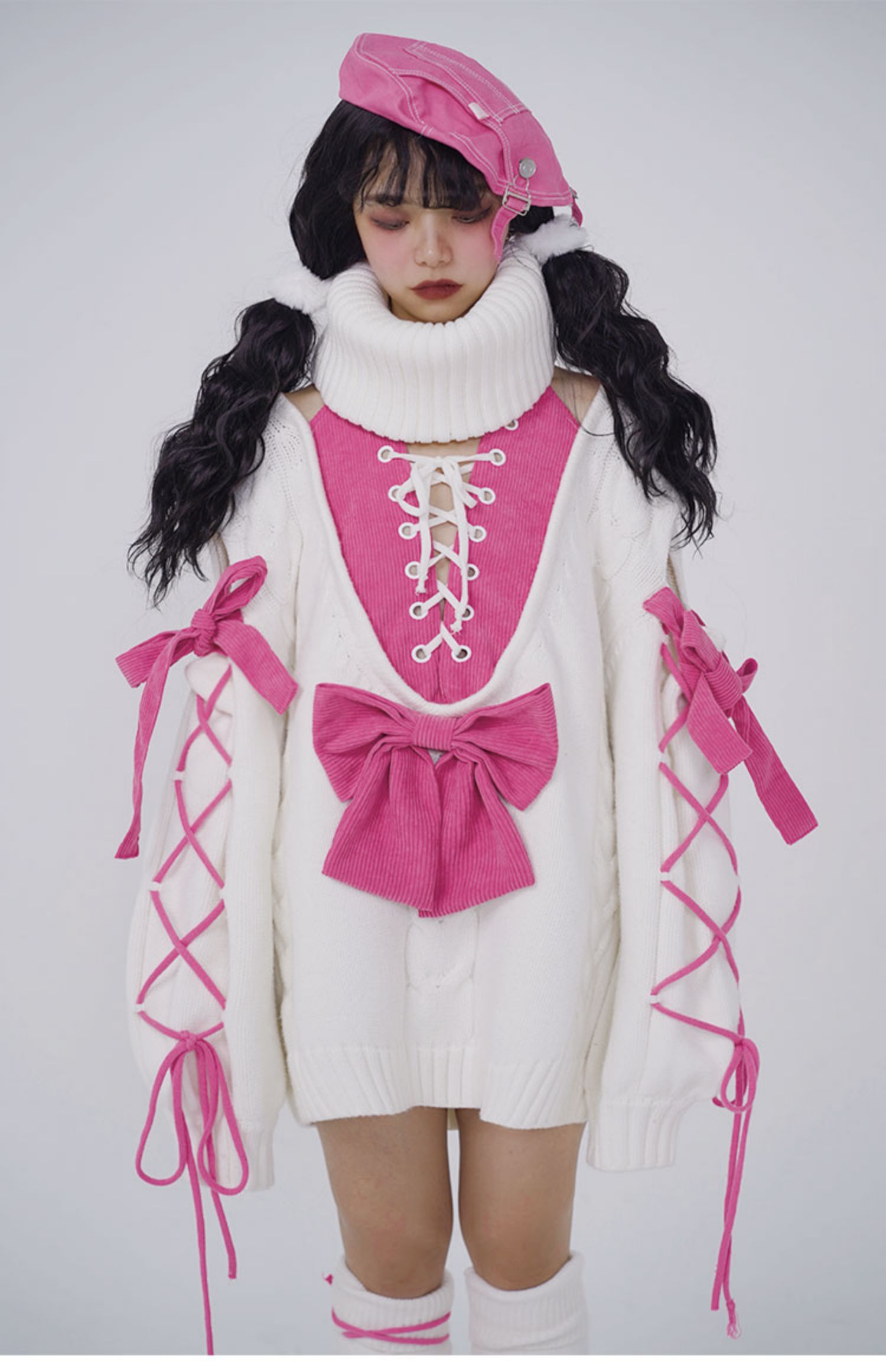 Oversize Fake Layered Bow Knit Sweater NA7708