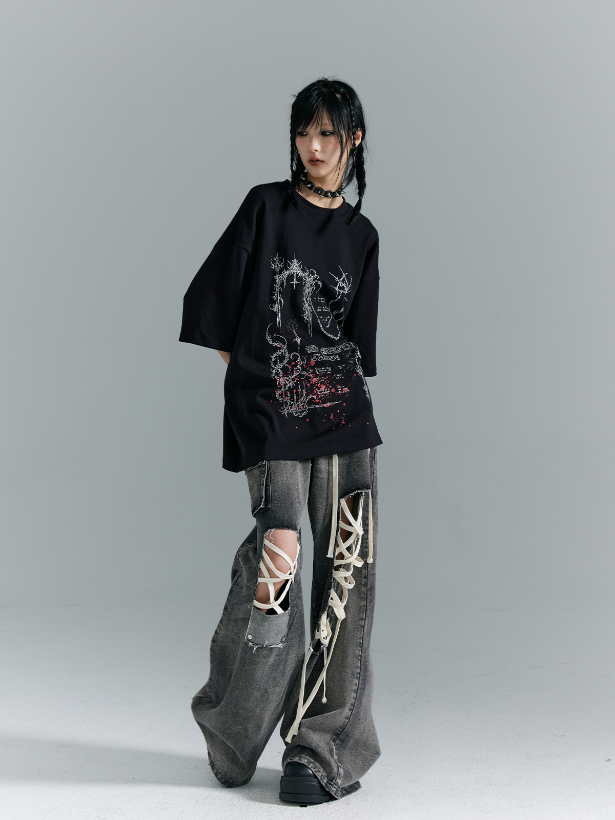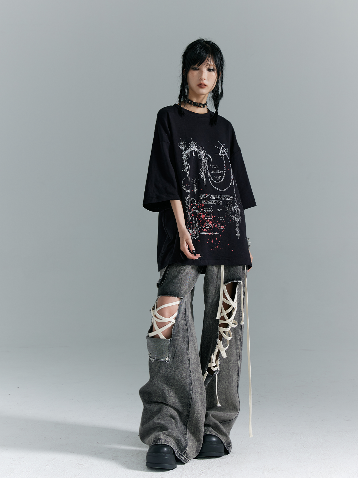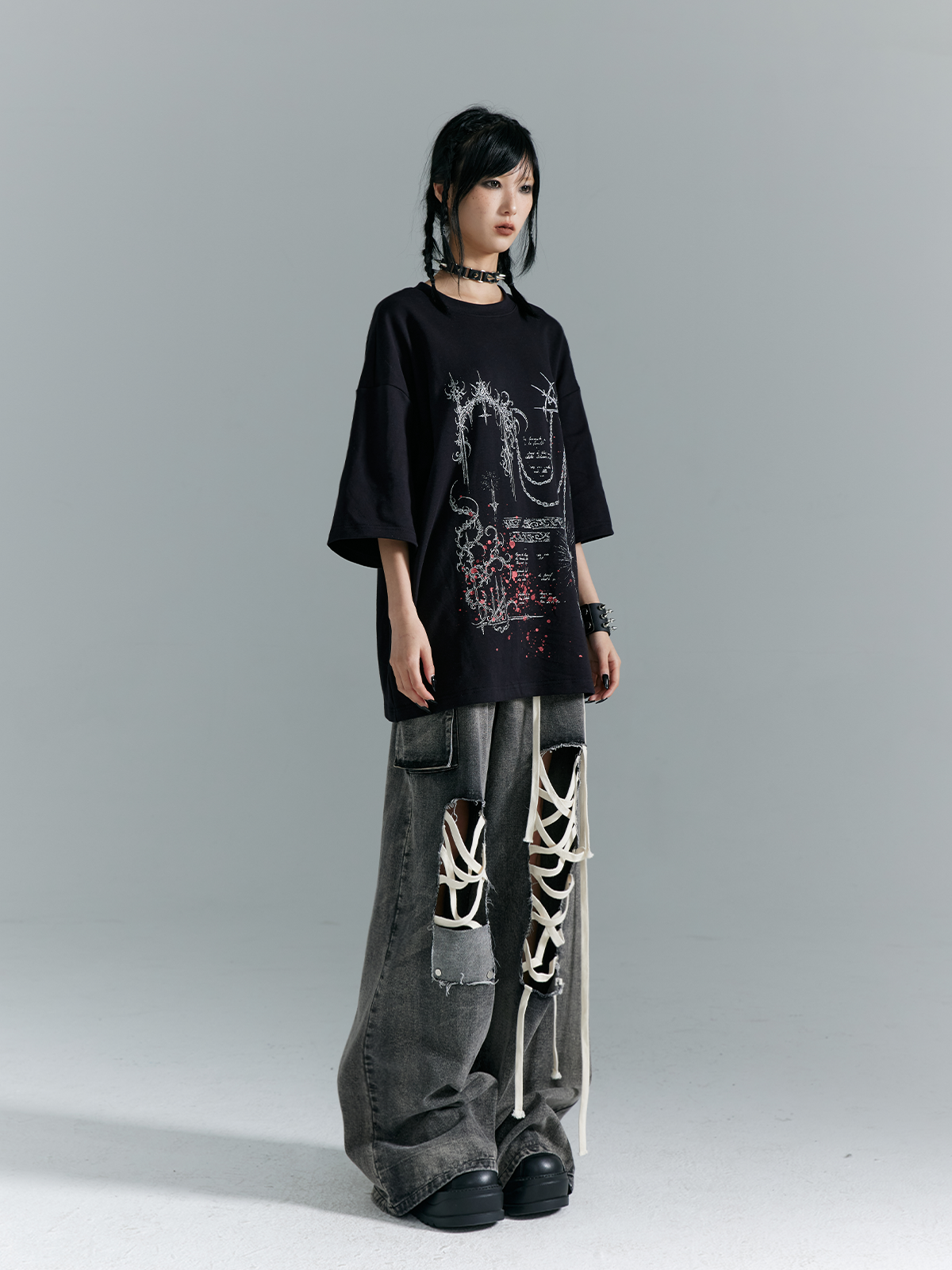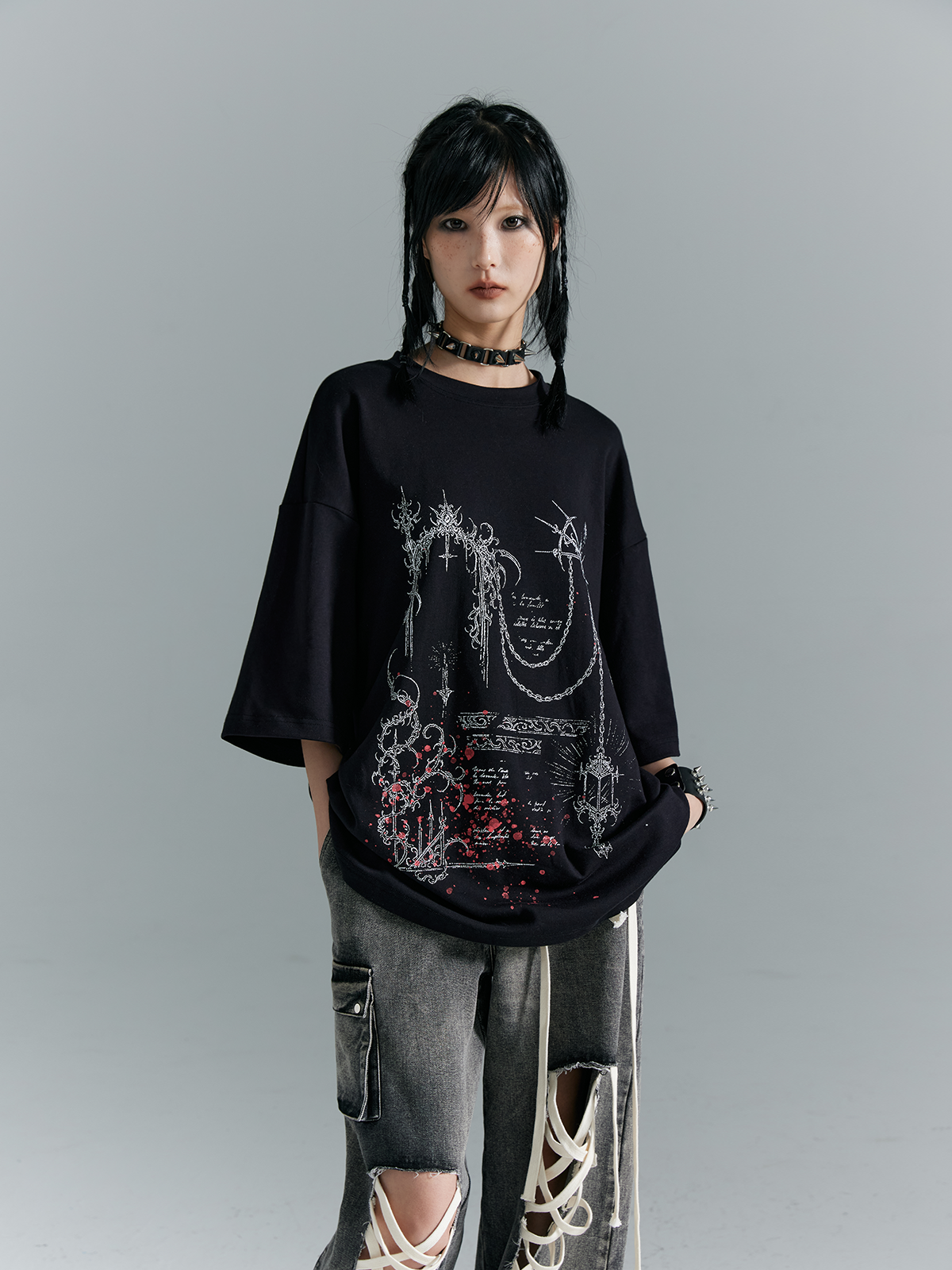 Graphic Design Oversize Short Sleeve T-Shirt NA8175