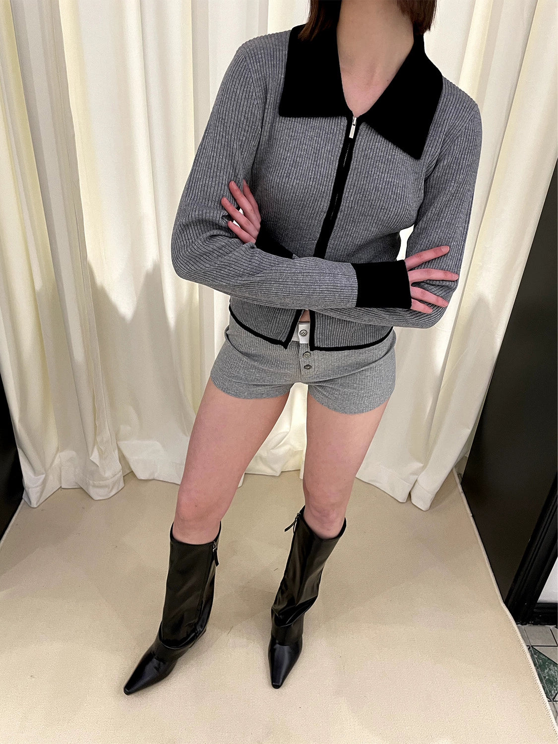 Polo Collar Zipper Knit Cardigan NA5982