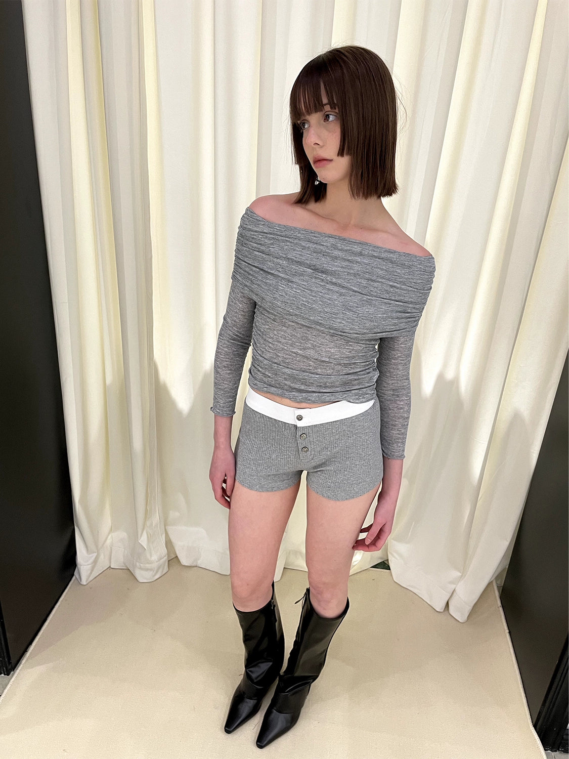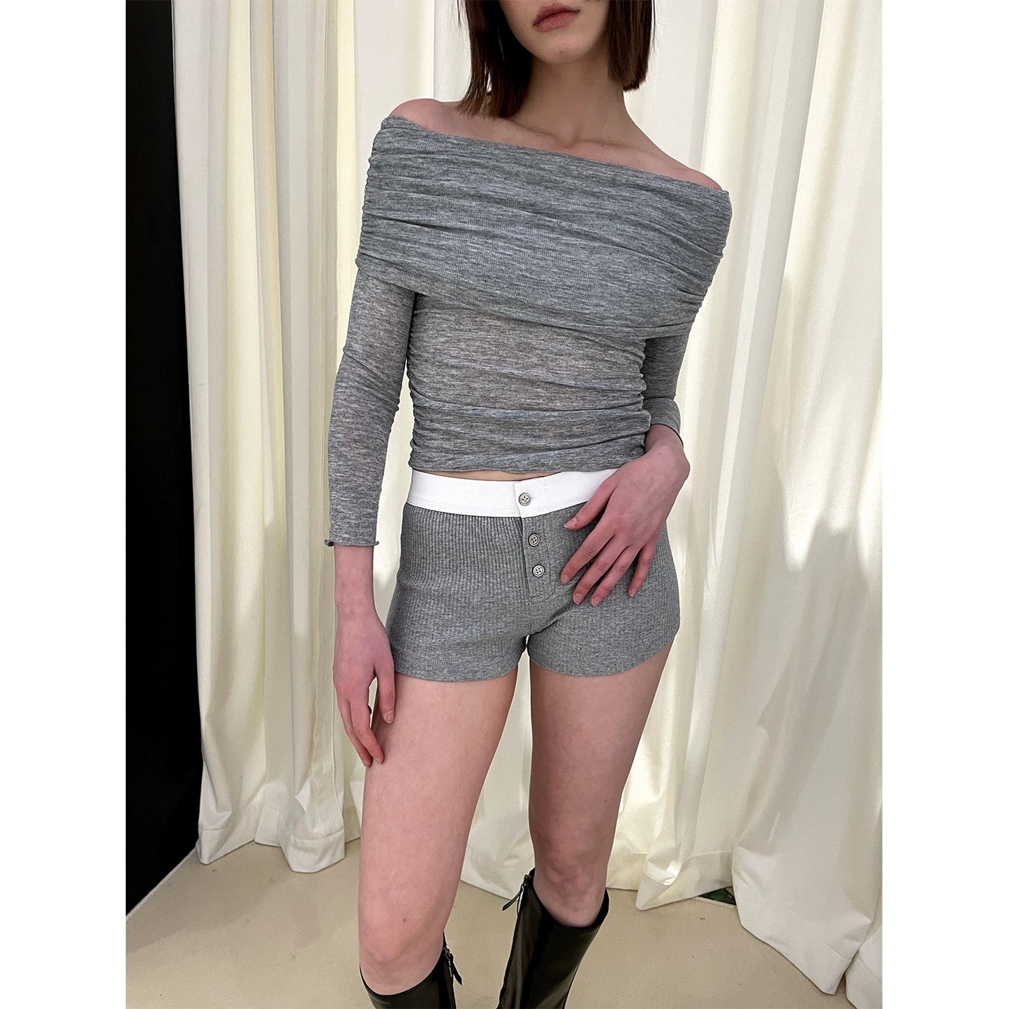 Off Shoulder Long Sleeve Knit Sweater NA5984
