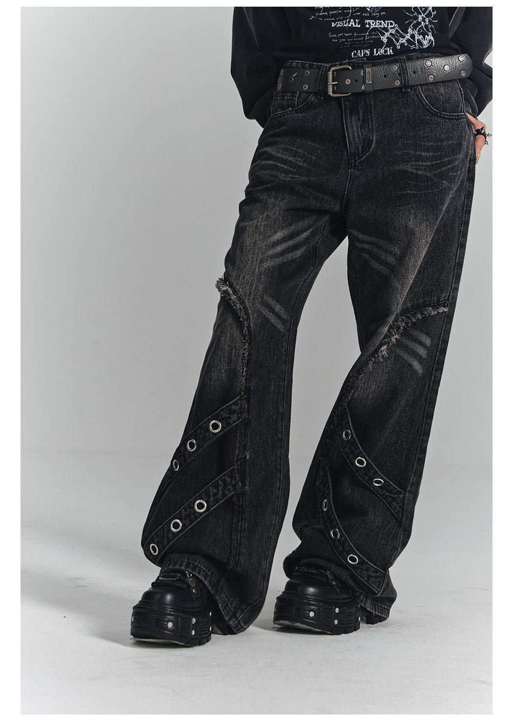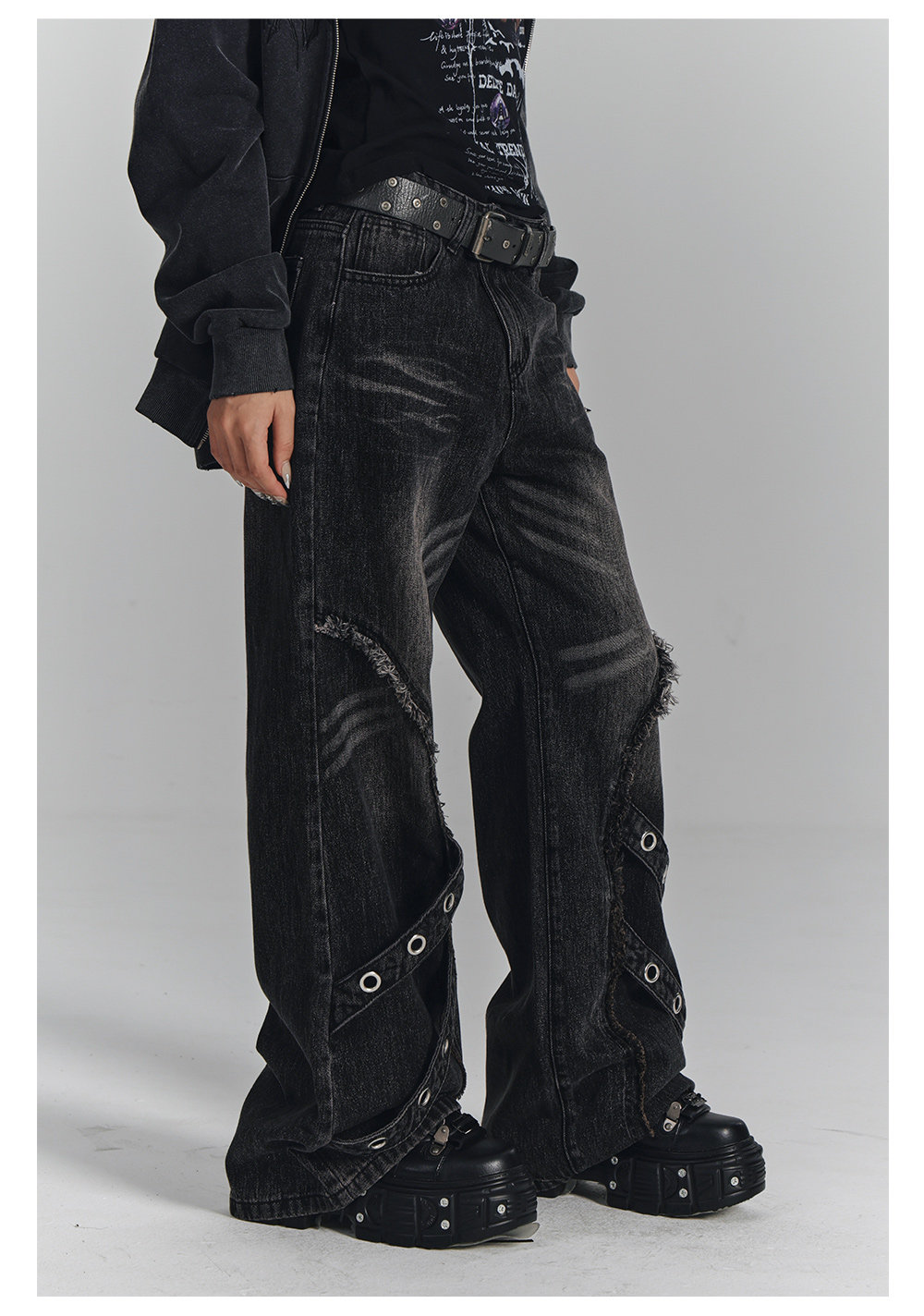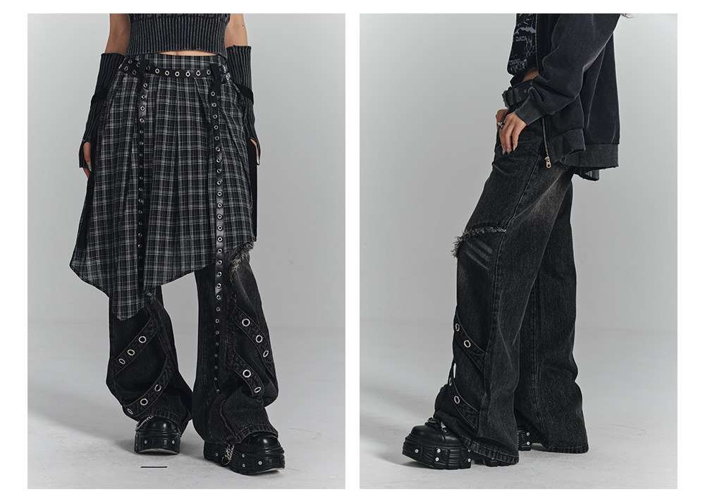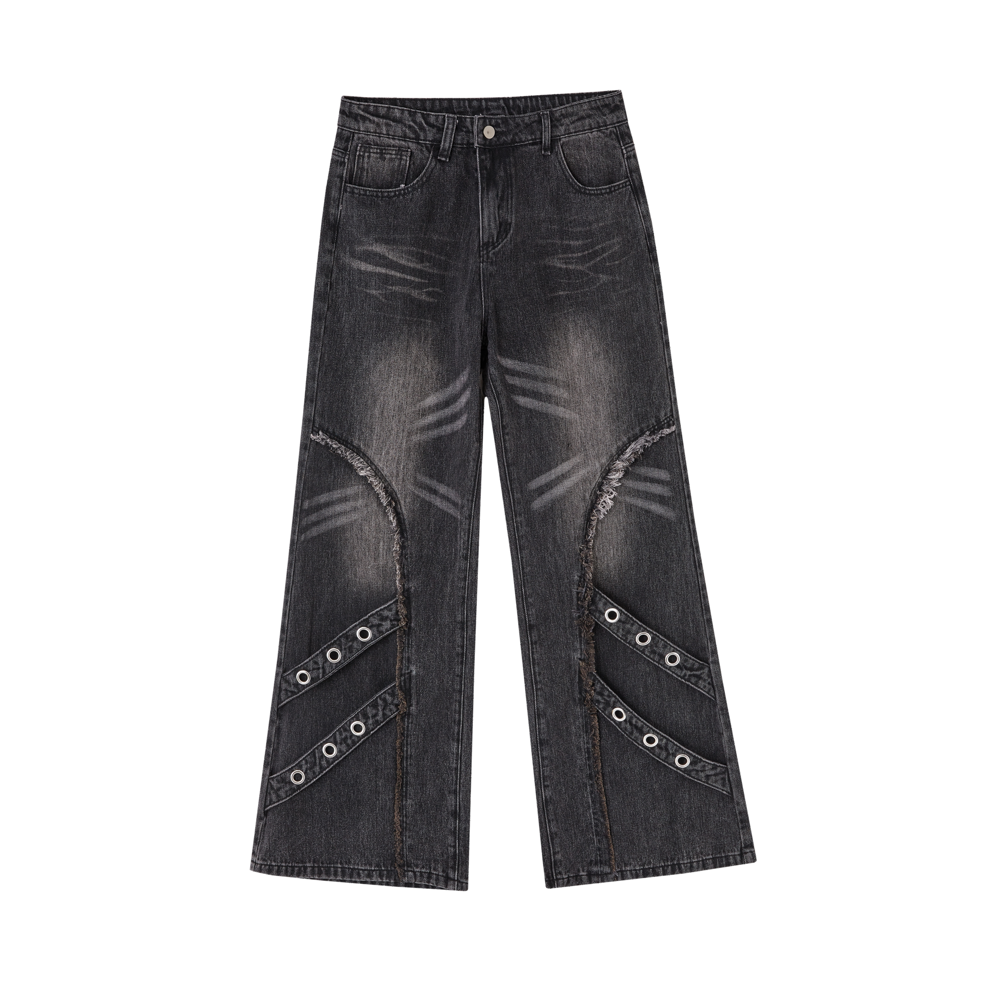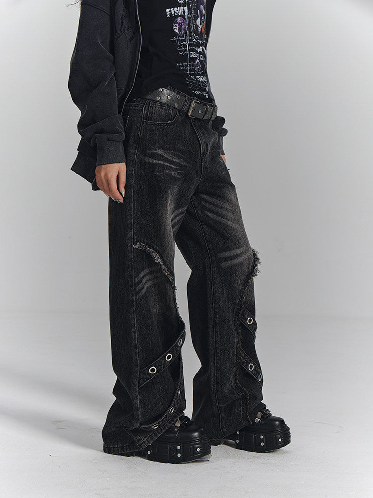 Washed Frayed Wide-Leg Straight Denim Jeans NA8903