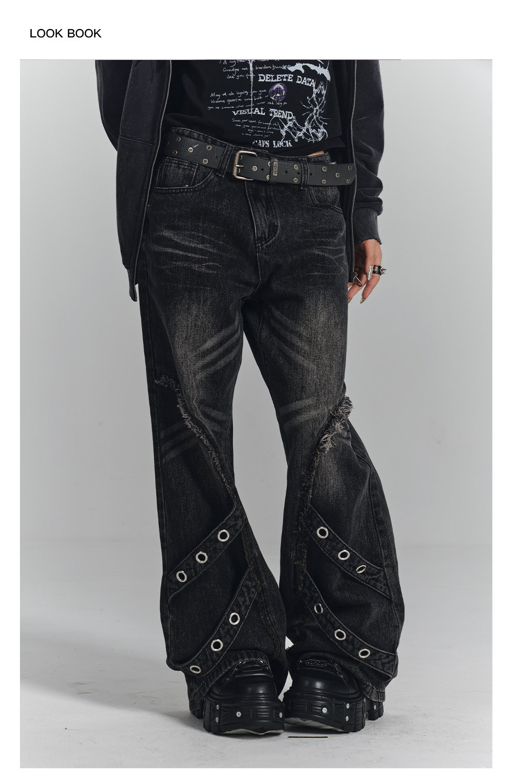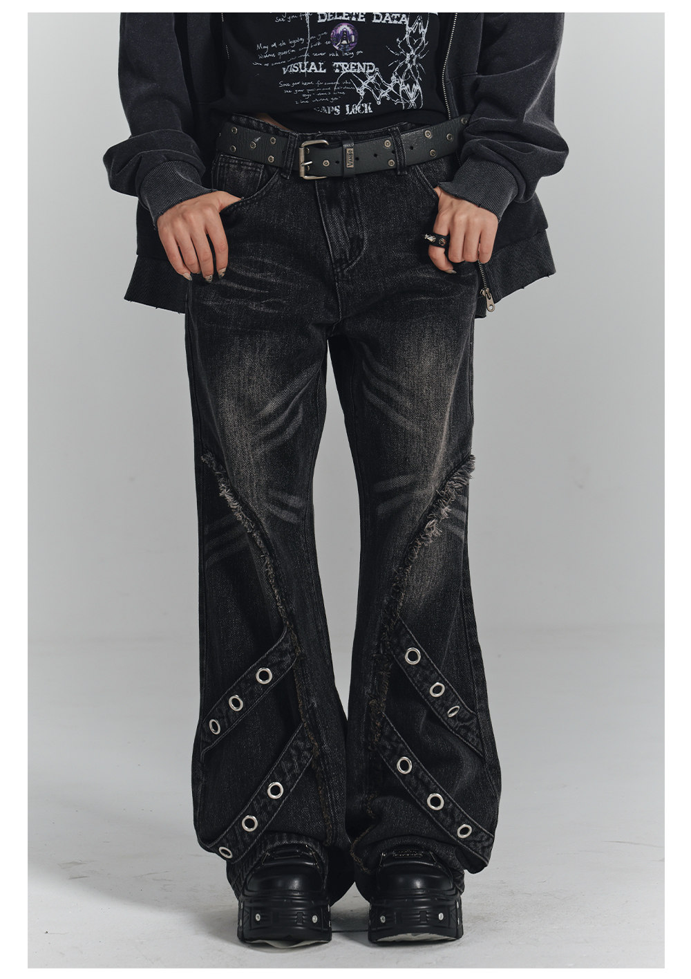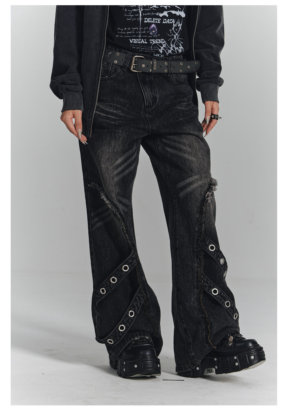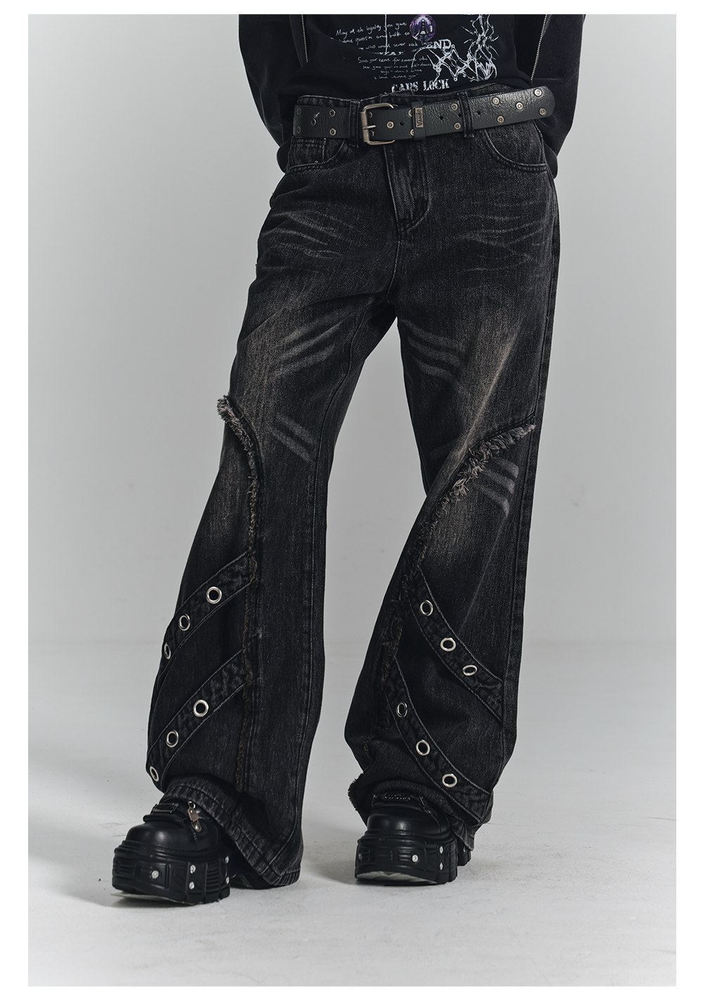 Washed Frayed Wide-Leg Straight Denim Jeans NA8903