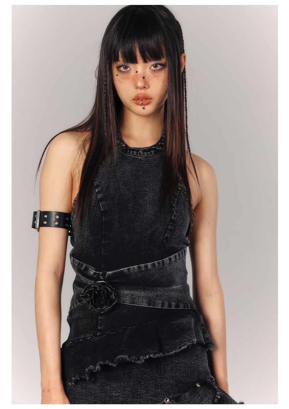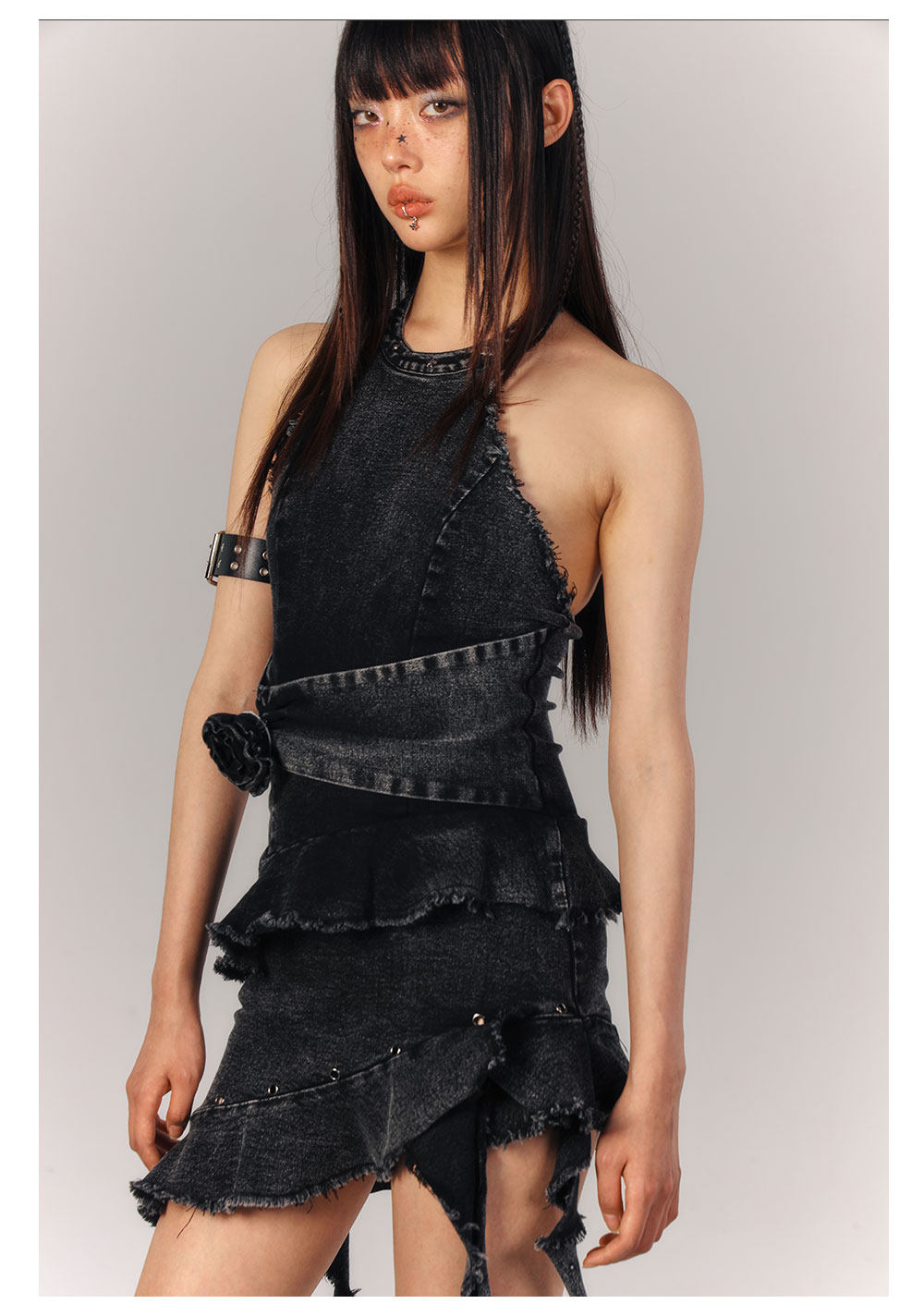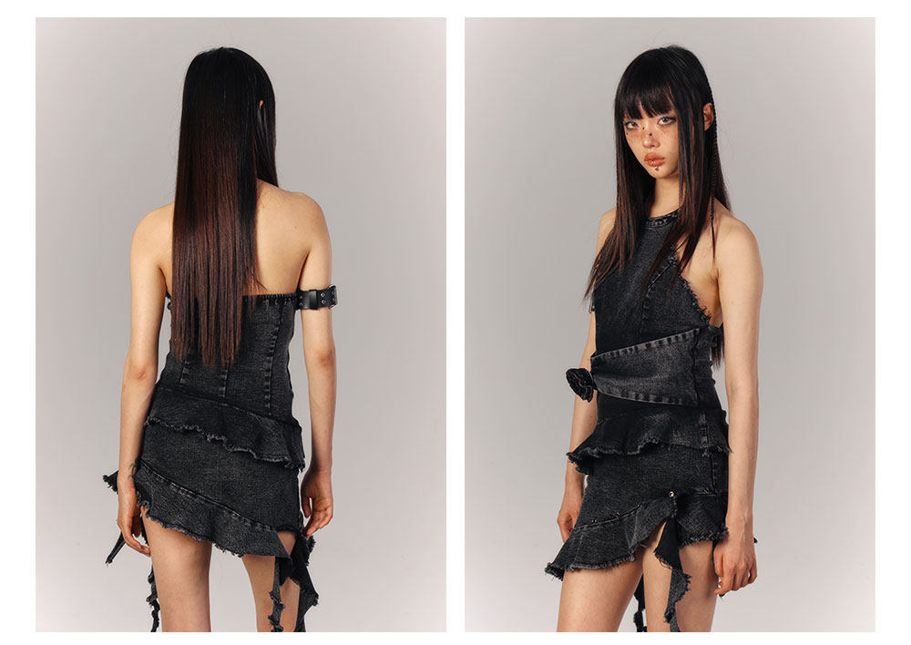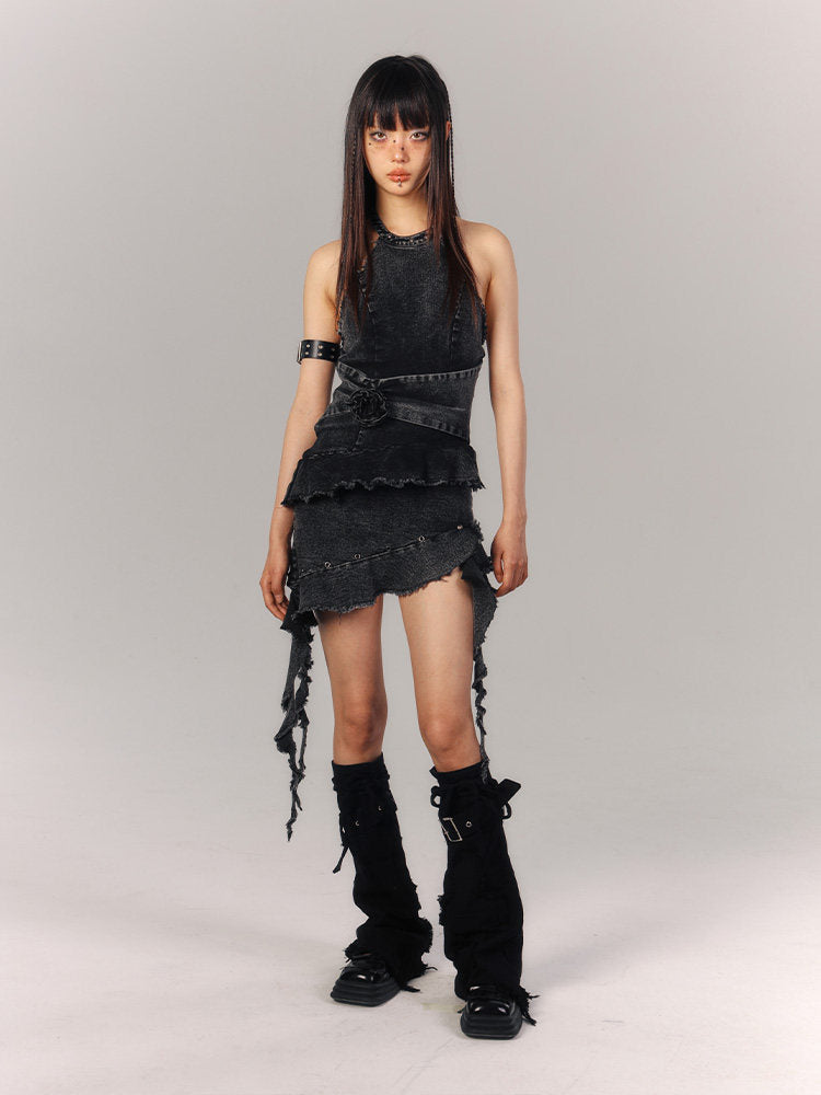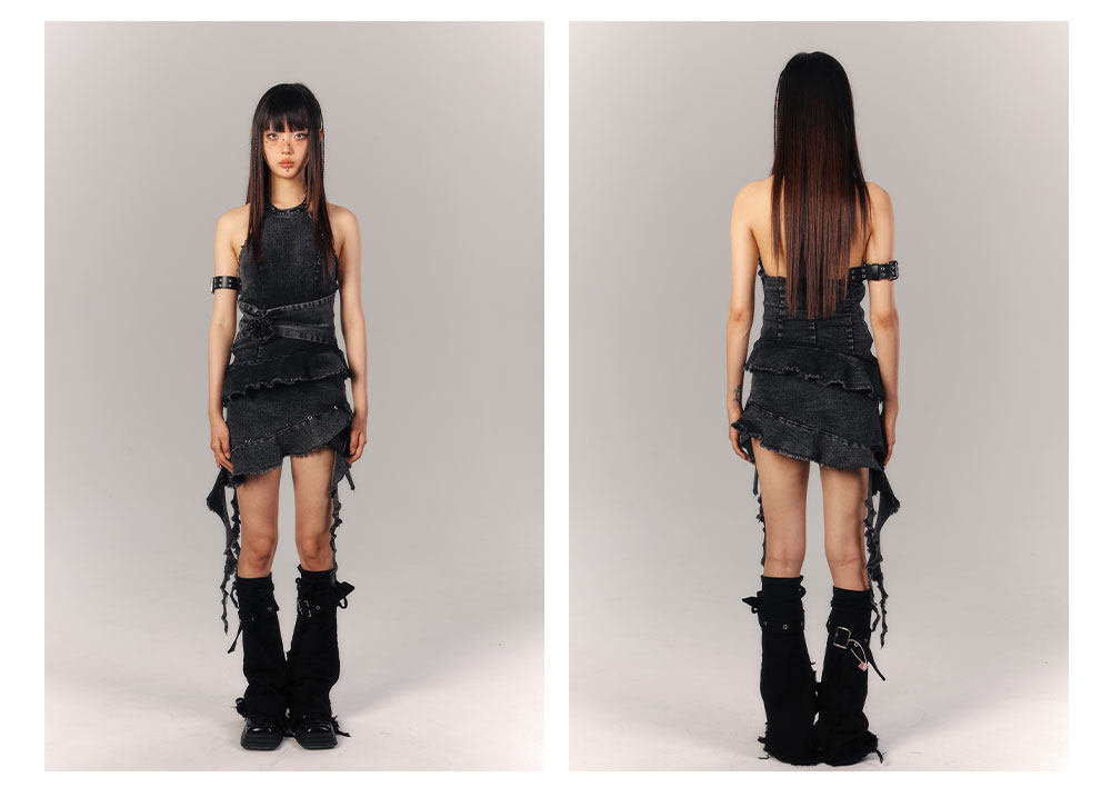 Asymmetrical Halter Denim Sleeveless Dress NA9216