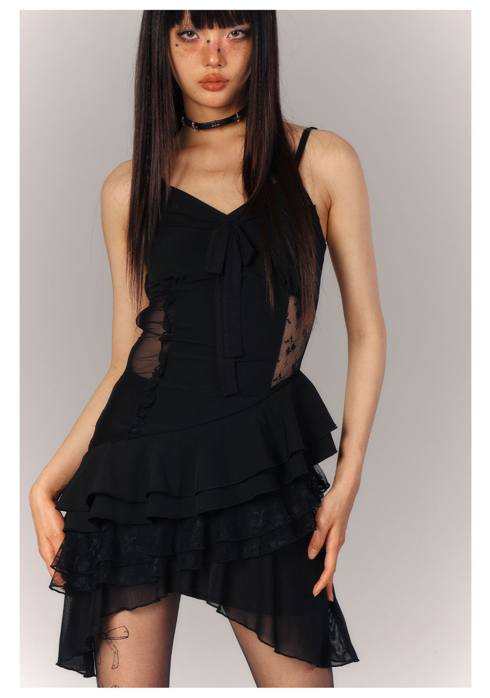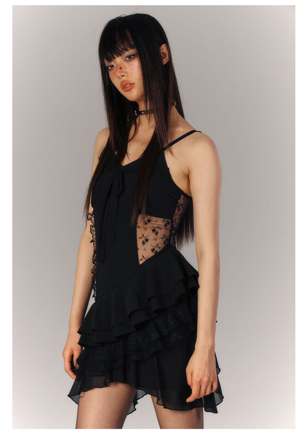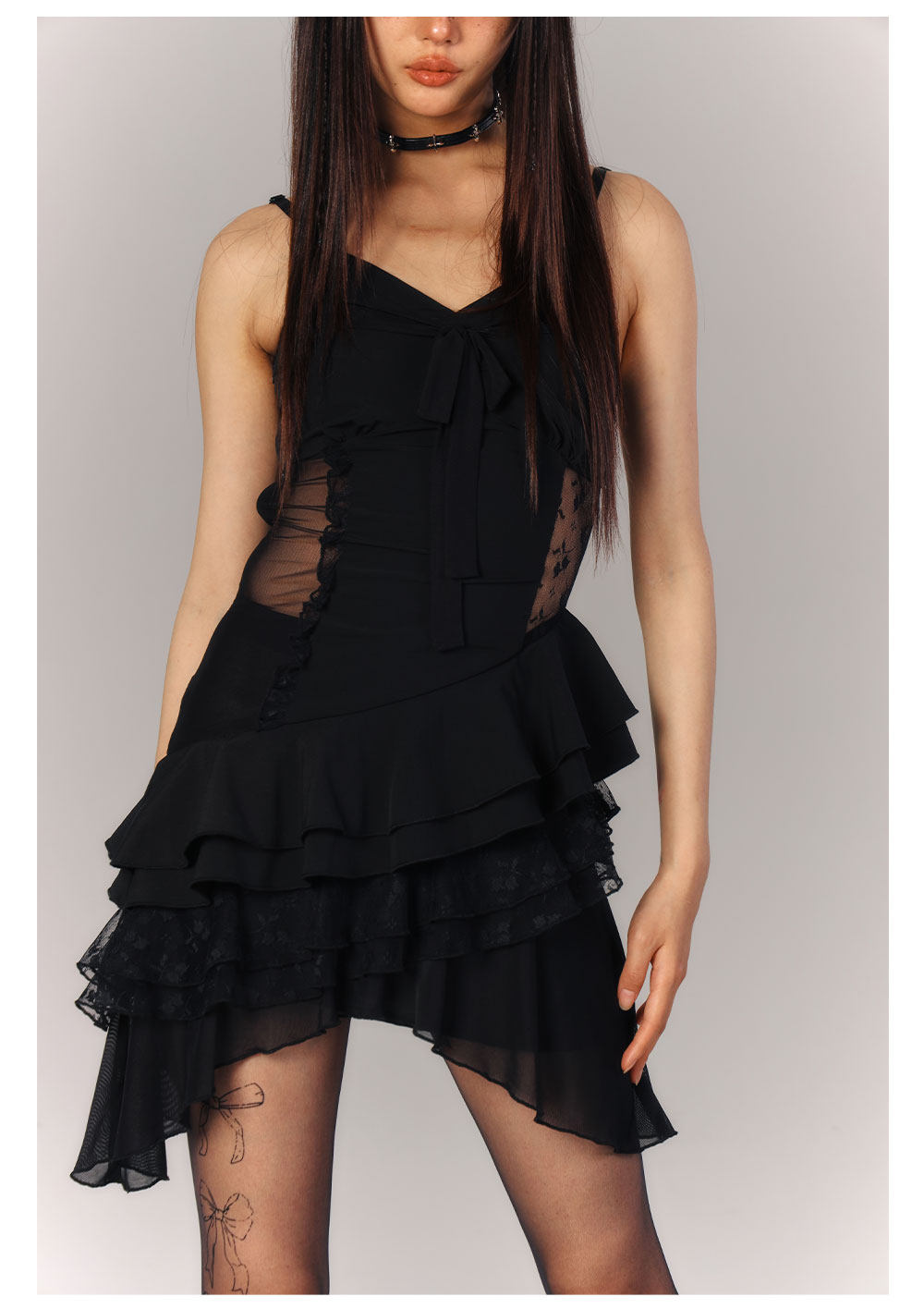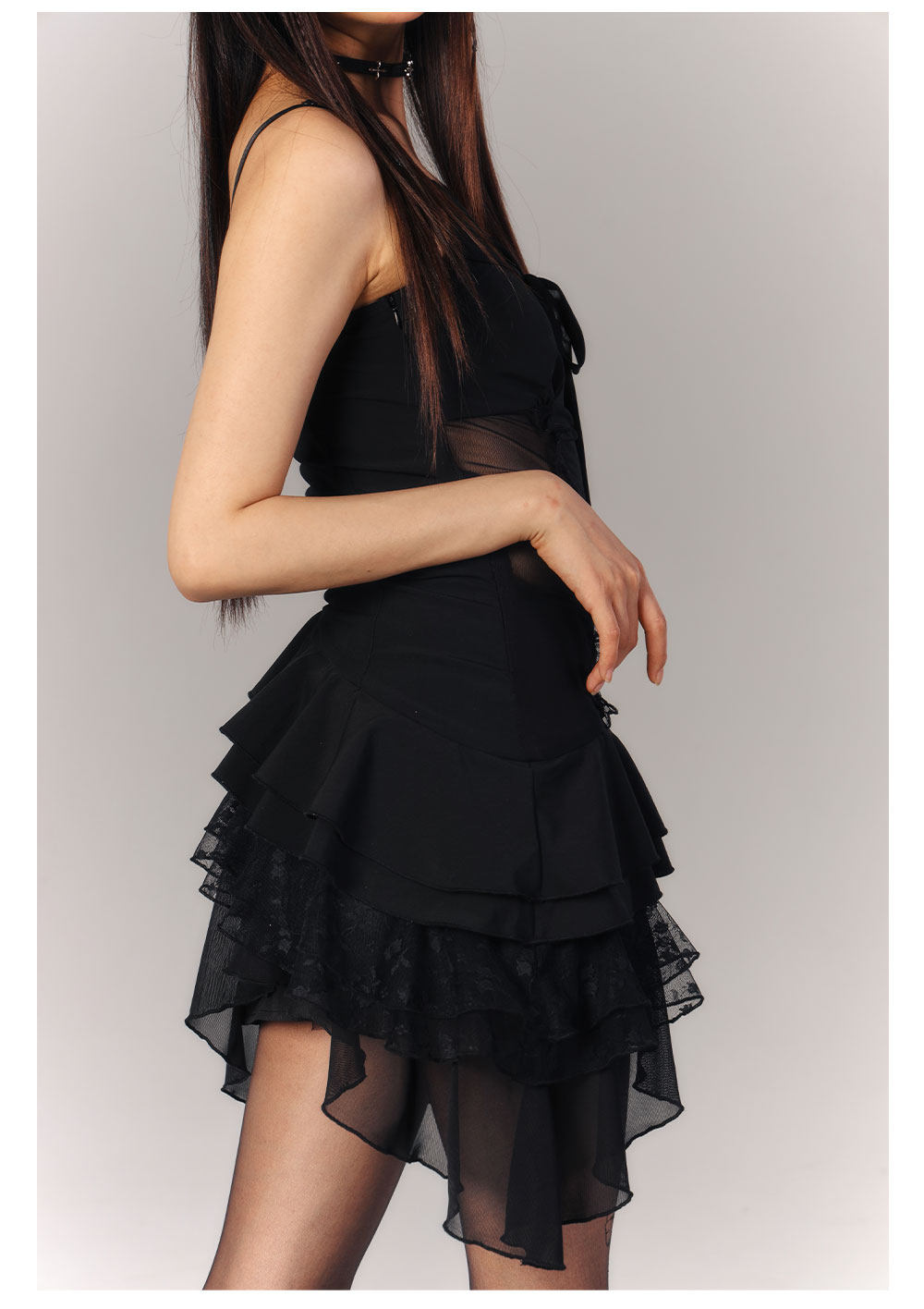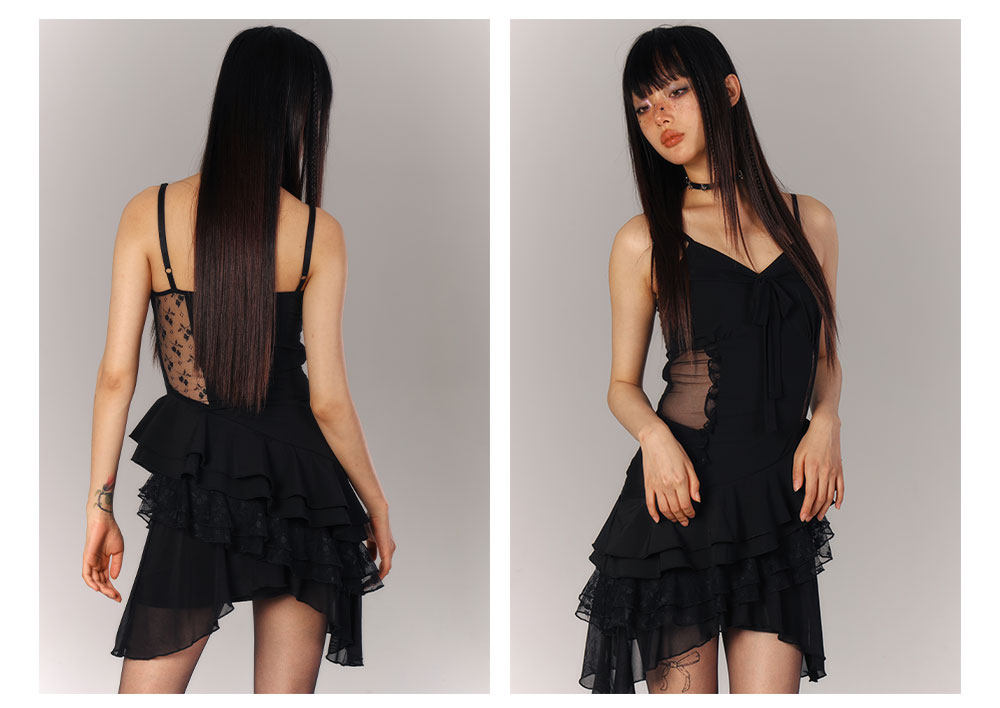 Lace Asymmetrical Layered Fitted Dress NA9218