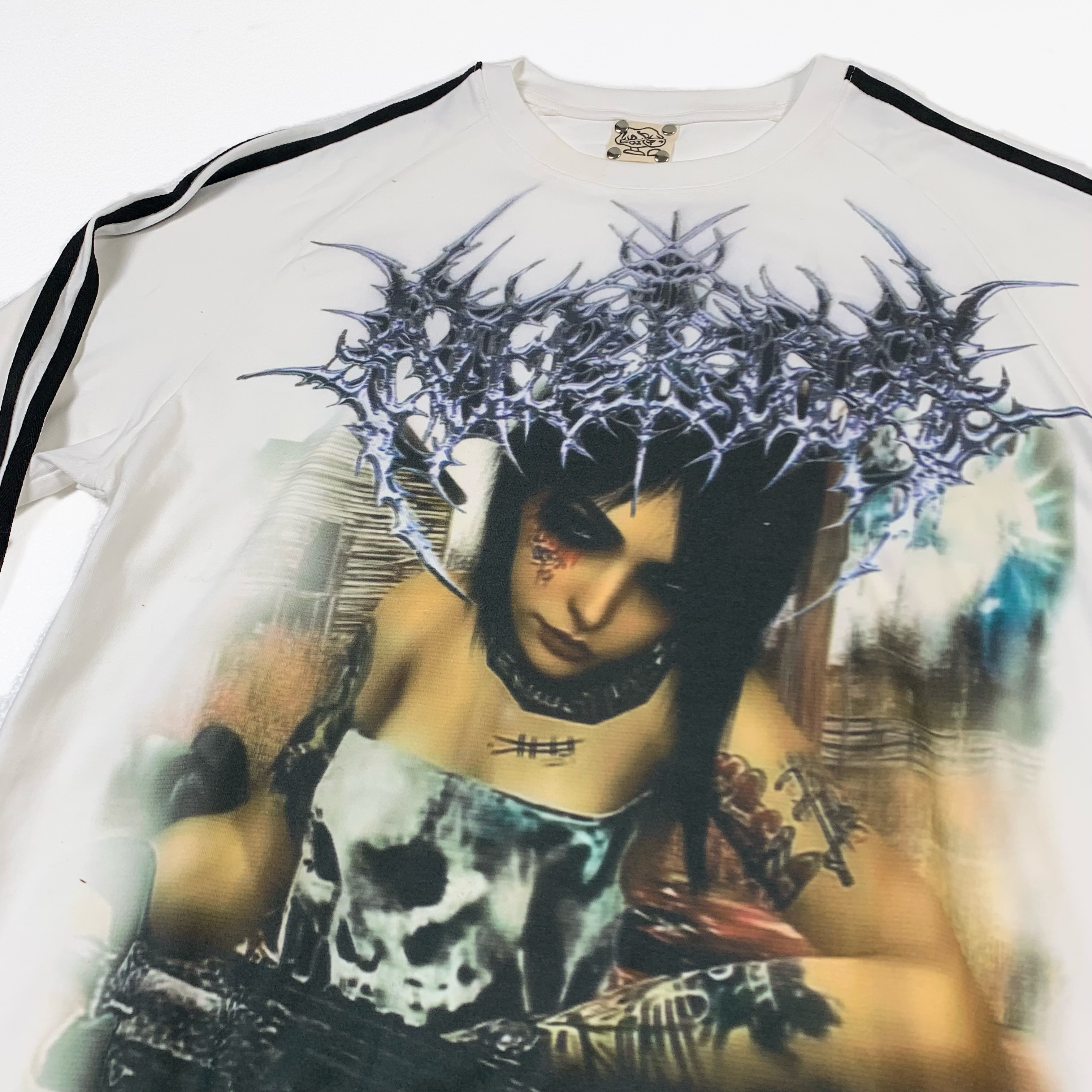 Y2K Liquid Acid Metal 3D Girl Oversize Long Sleeve T-Shirt NA7636