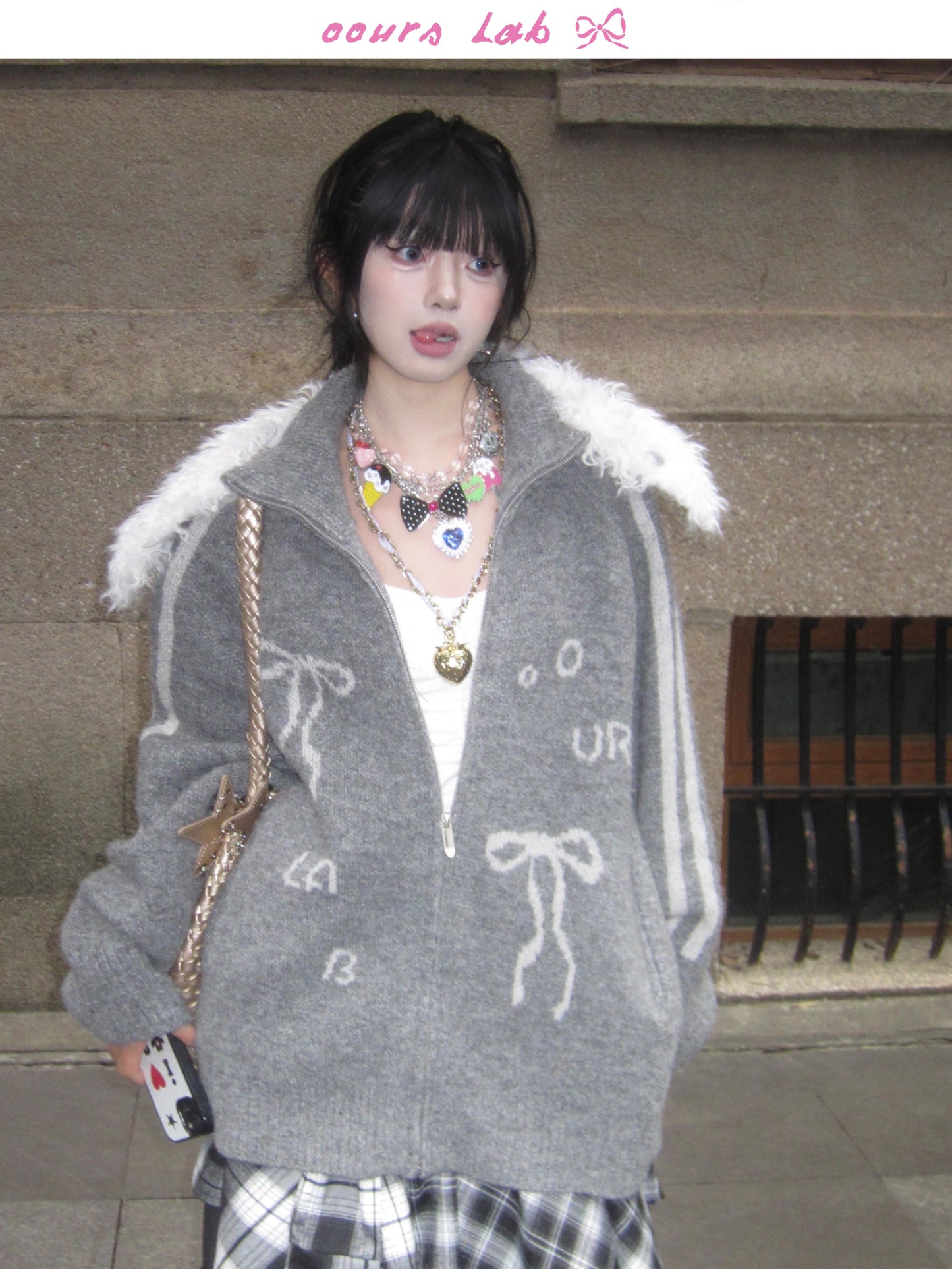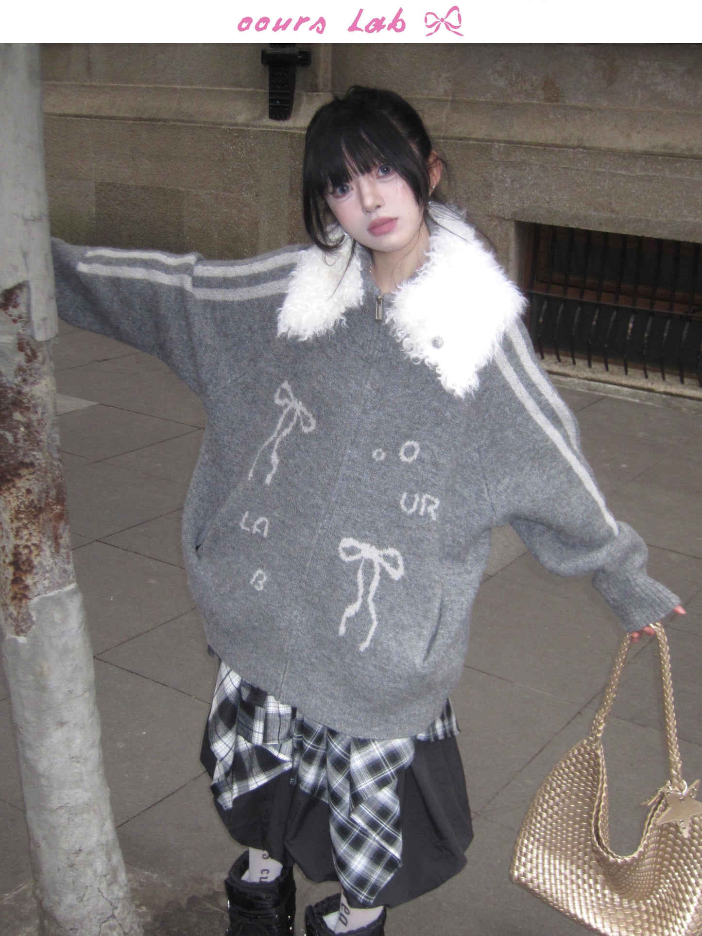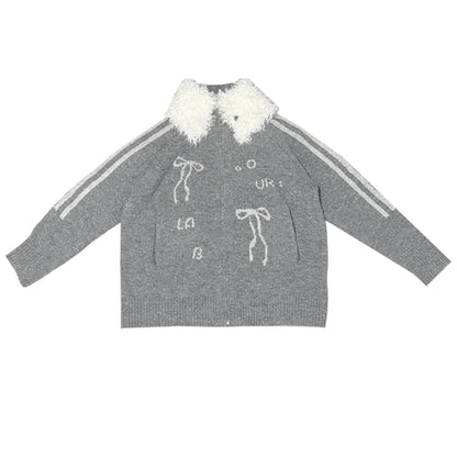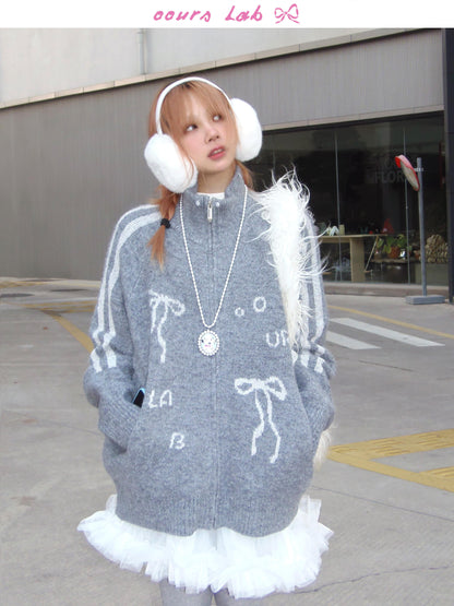 Bow Jacquard Zipper Knit Cardigan NA8244